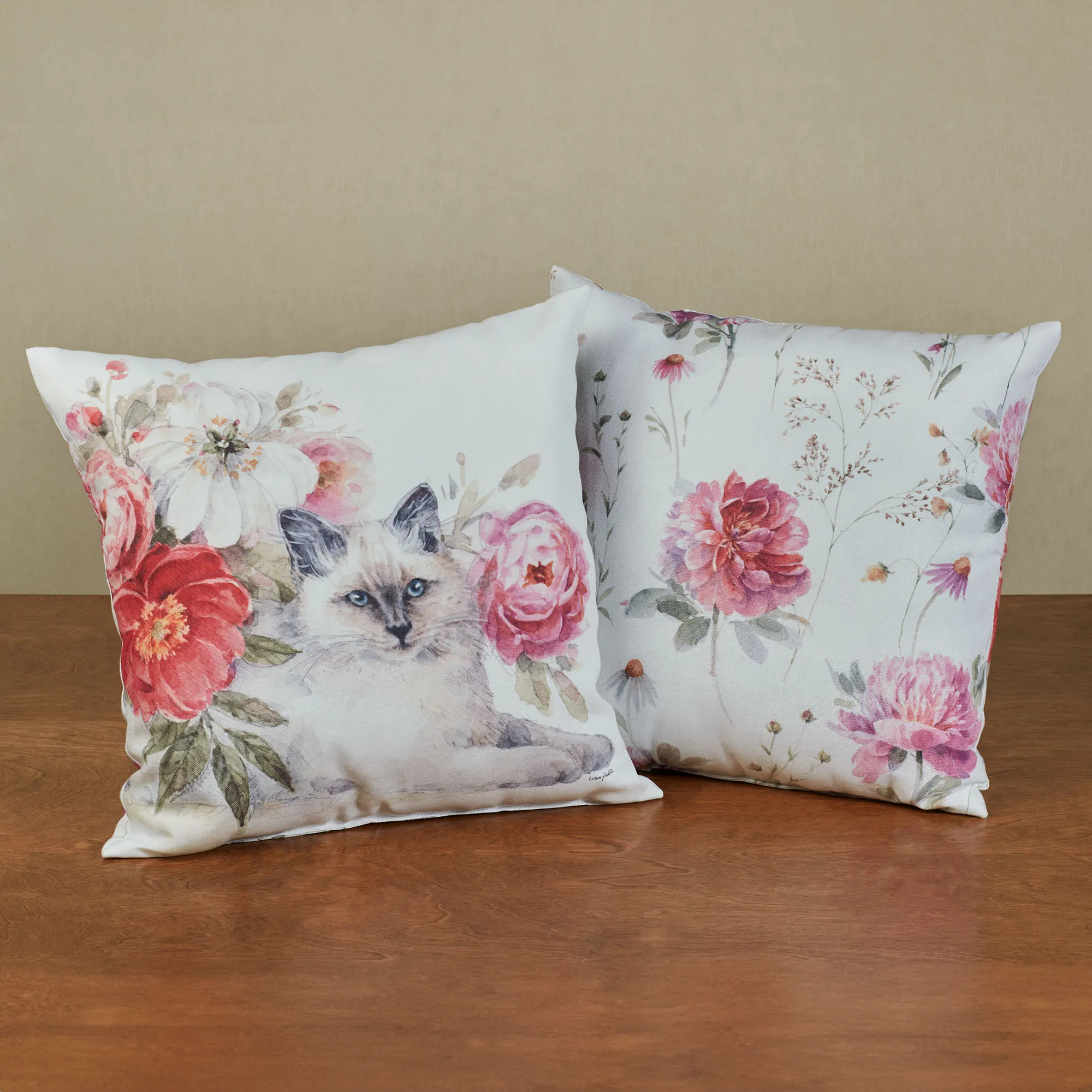 Climaweave Obviously Pink Floral Cat Reversible Indoor Outdoor Decorative Pillow
