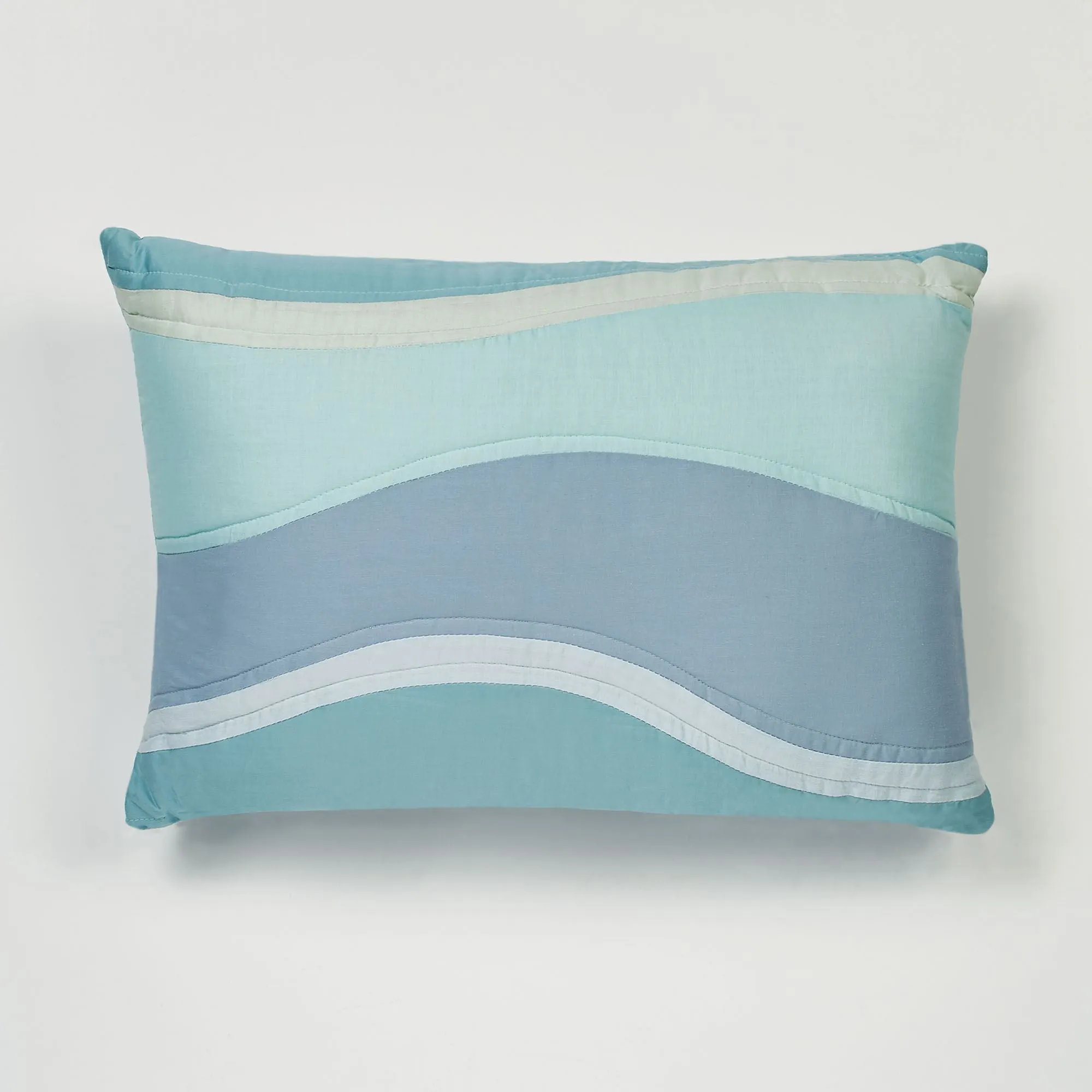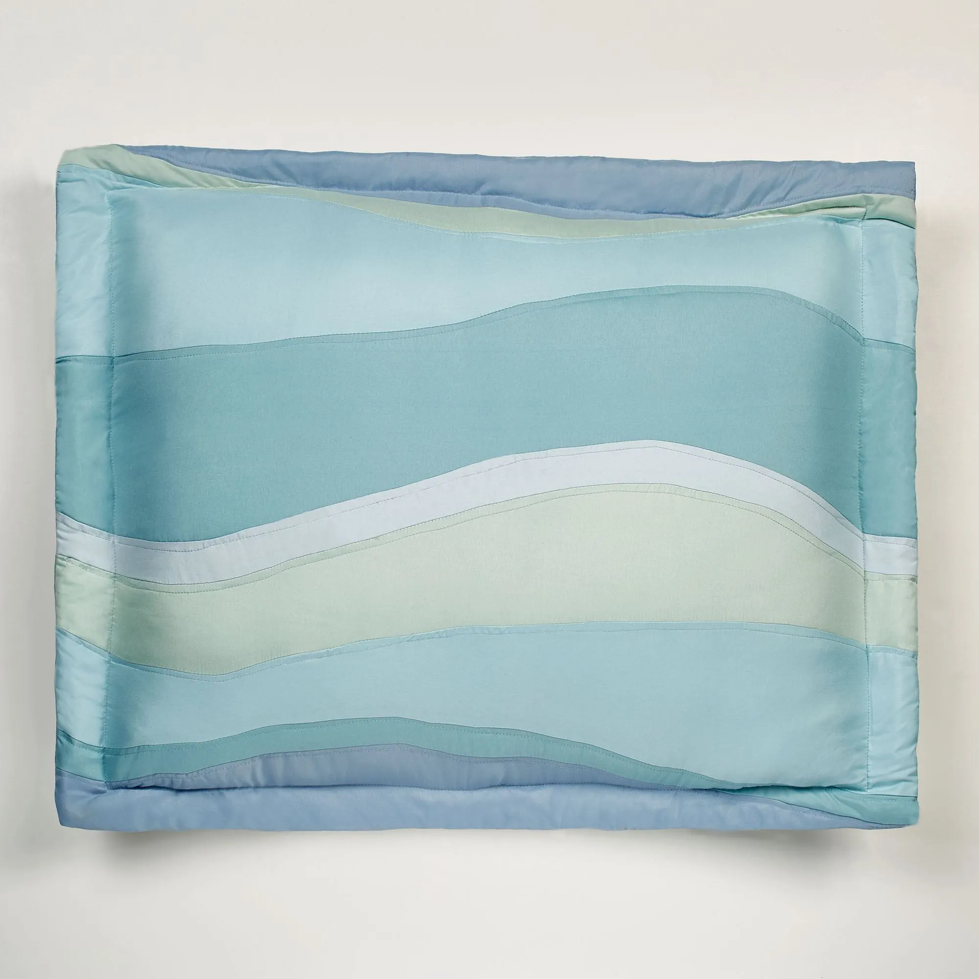 On the shores of your dreams, the Ocean Tides II are sure to lull you into a peaceful night's sleep. This polyester microfiber bedding has an effortless coastal vibe with wavy bands of cerulean blue, light blue, celadon, aqua, and light steel blue.