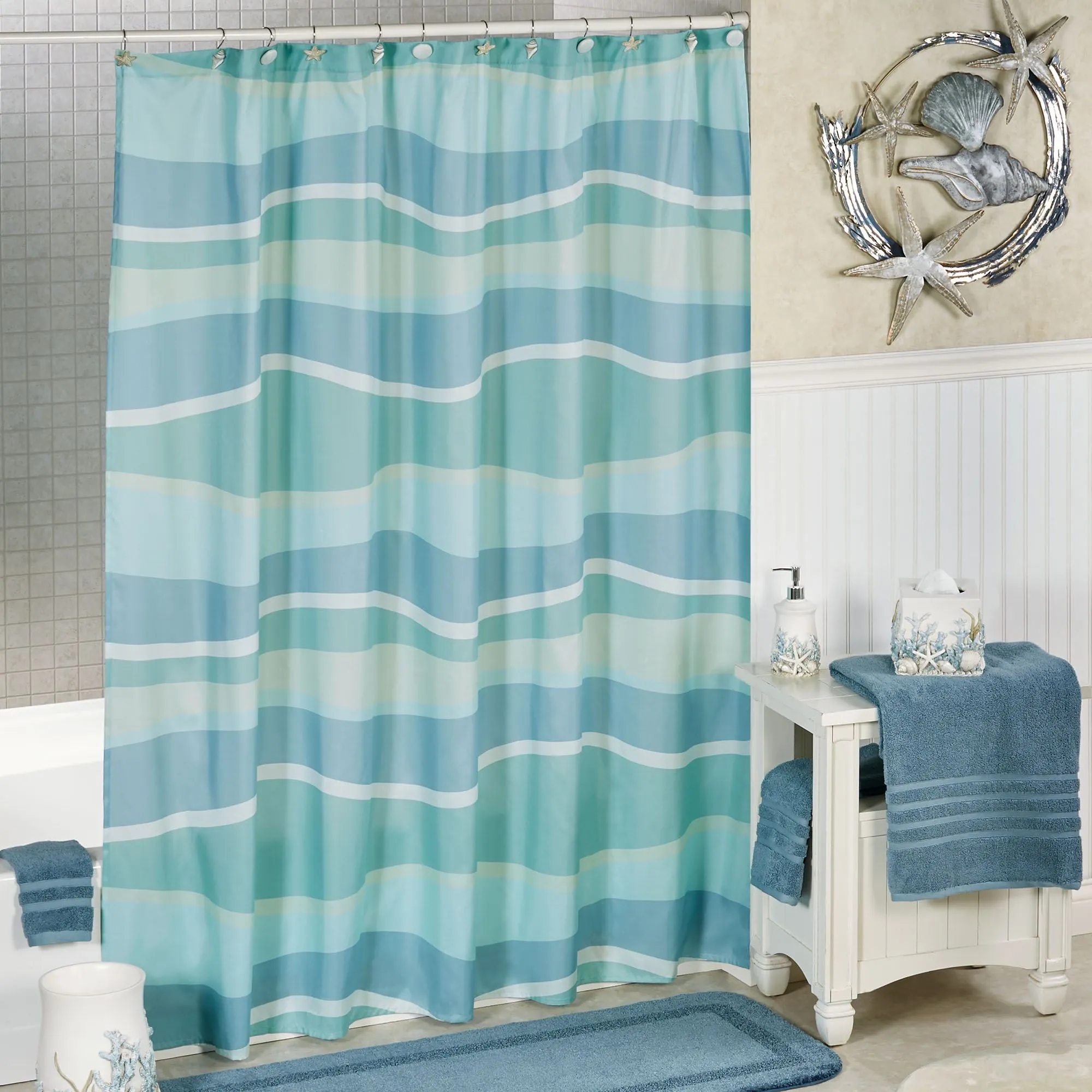 • Ocean-inspired shower curtain
