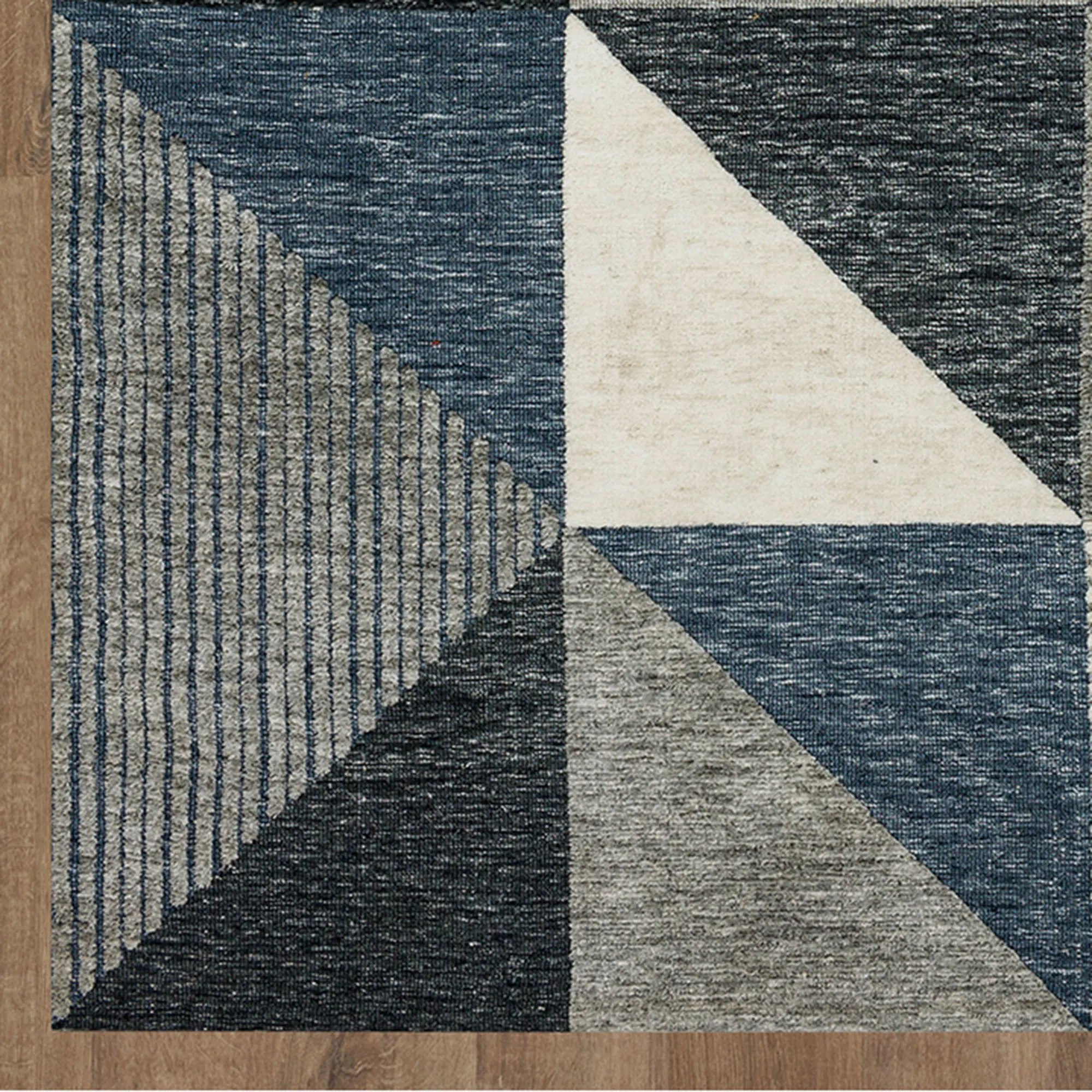 The Octavio Geometric Rug is polyester with a cotton canvas backing. Imported.