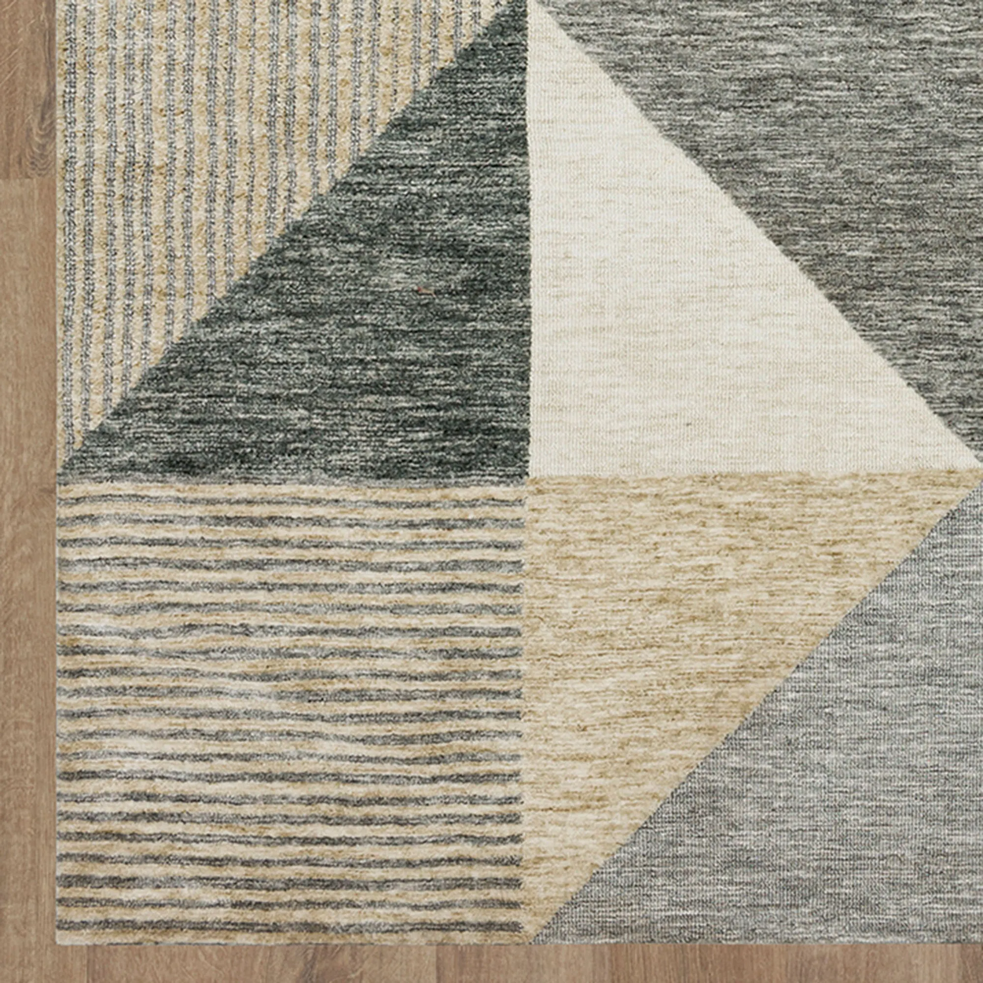 The Octavio Geometric Rug is polyester with a cotton canvas backing. Imported.