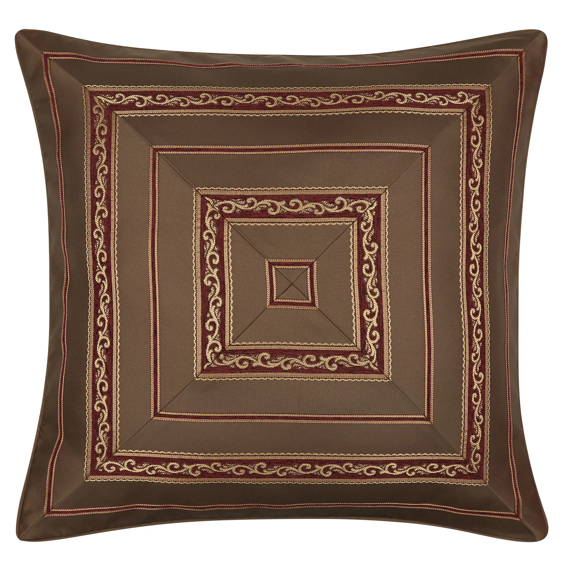 Classic finery embellishes the Odette Bedding with a timeless air. By Five Queens Court, the jacquard-woven polyester ensemble features stately damask in a rich color palette of light gold, dark gold, chocolate, and crimson. Coordinating elegant scroll stripe designs lend a defining complement throughout the grand bedding.