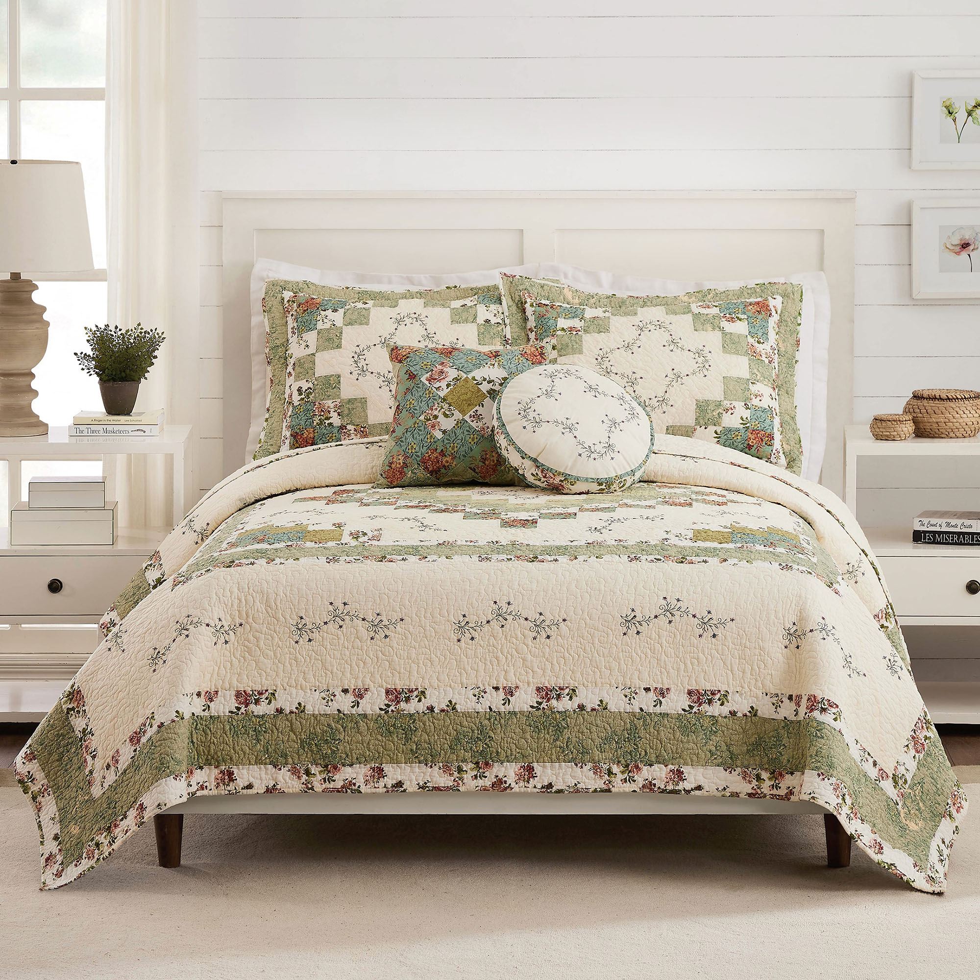 Modern Heirloom Olivia Quilted Embroidered Floral Patchwork Mini Quilt Set Bedding