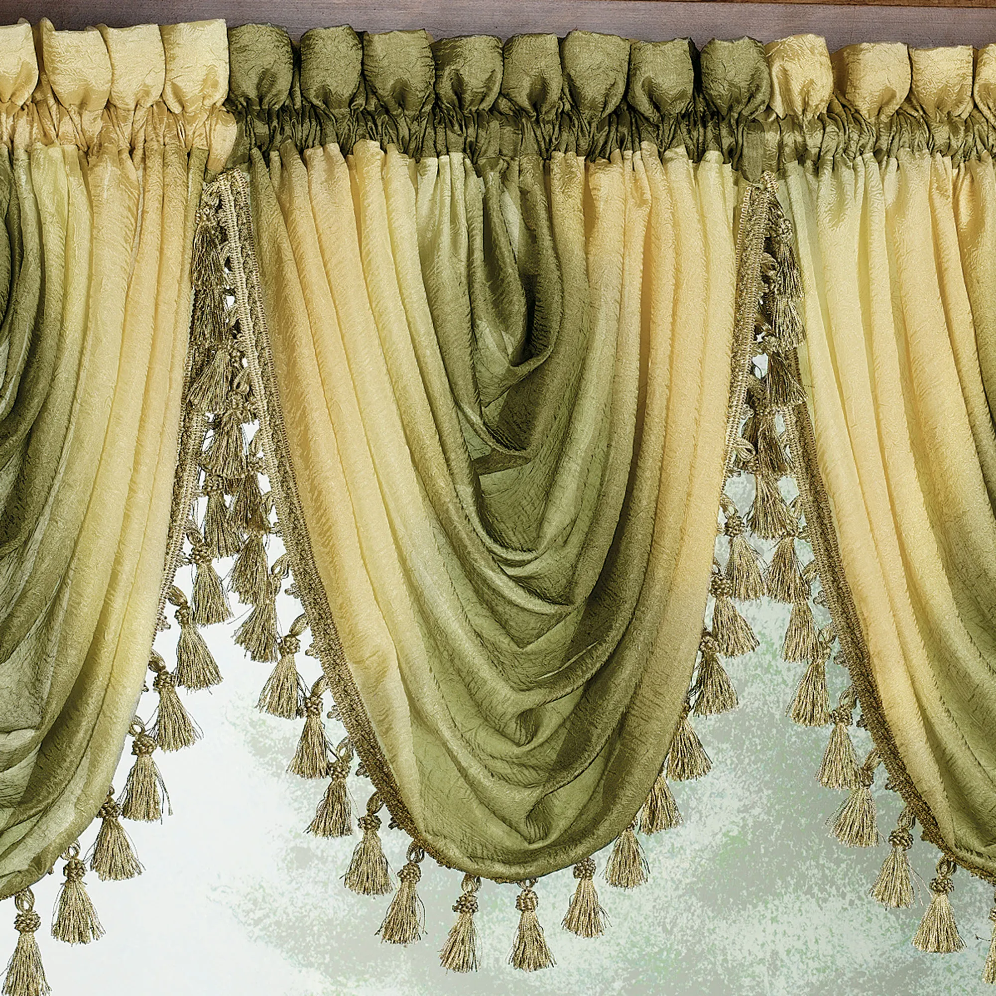 • Waterfall Valance has tassels
