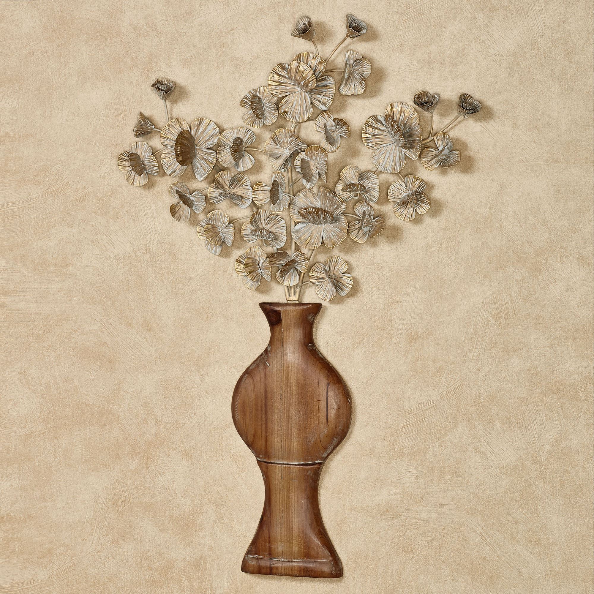 The Oralie Orchids in Vase bloom with golden and whitewashed hues within this charming floral wall art. With dimensional designs, the metal blossoms feature textured petals and grow in a natural fir wood vase. Floral wall art measures 20"Wx2"Dx29"H.