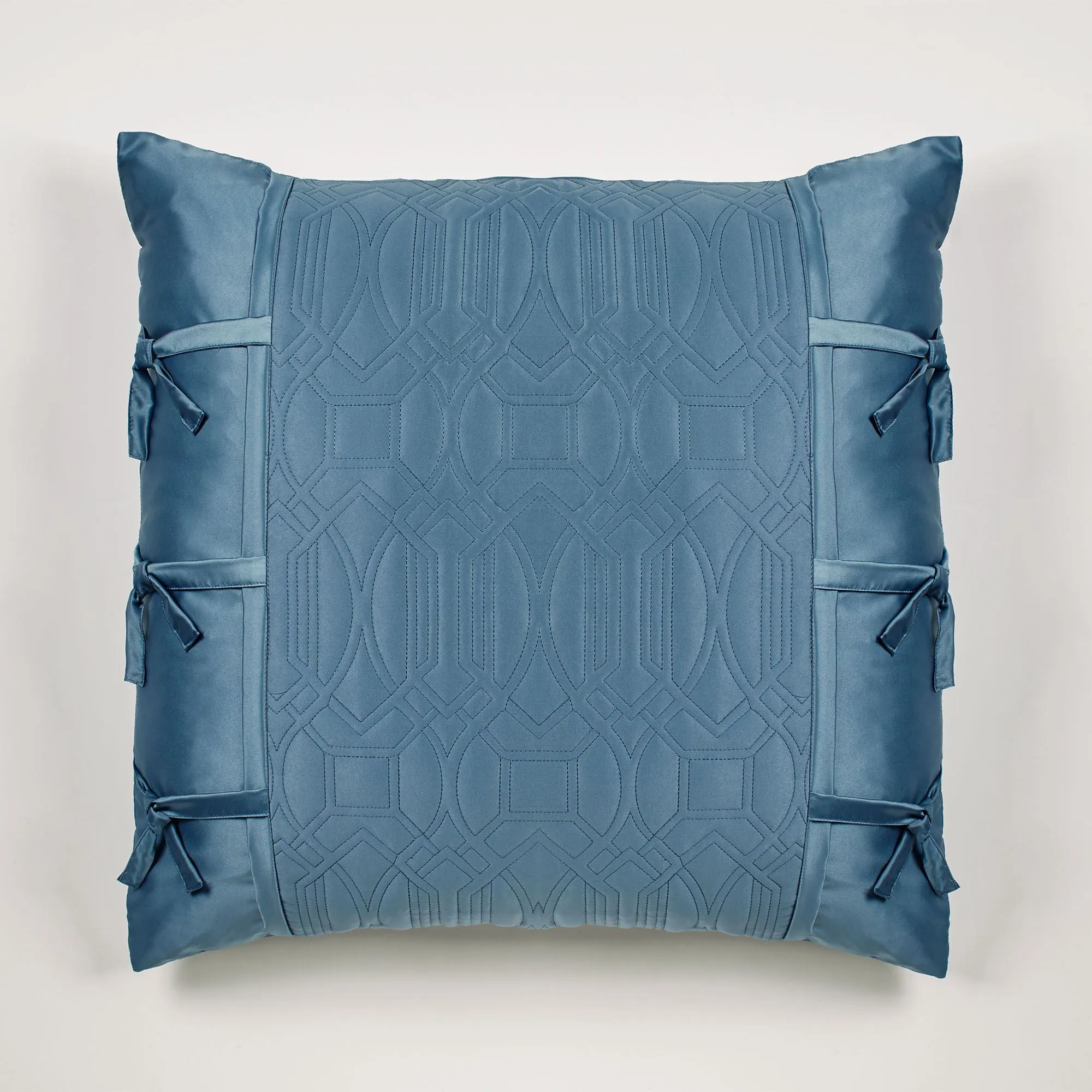 The tailored European Sham is pieced with geometric quilting, solid sides, and ties; French back closure.