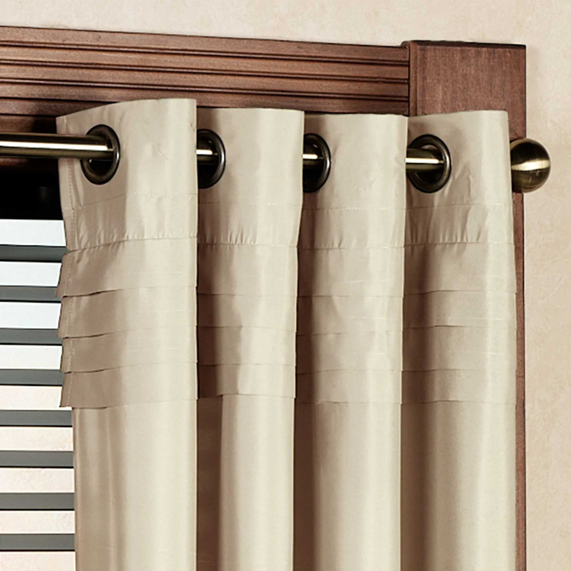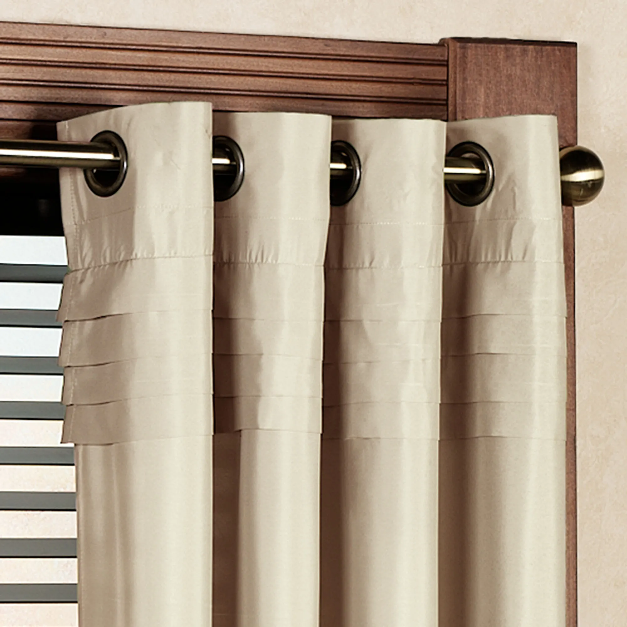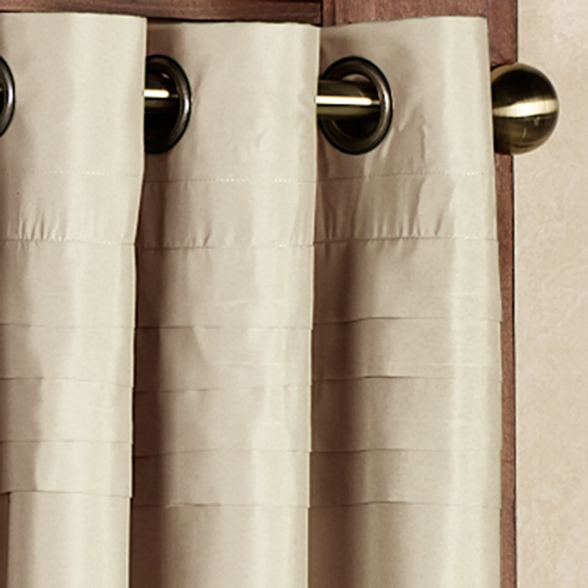 The versatile Oxford Pleat Grommet Curtain Panel is a welcome addition in any setting. Easy-care, polyester curtain panel has distinctive tuxedo pleats at the top. Grommets, with an antique bronze finish, are 1.5" dia. Bottom has a 3" hem. Panels are sold individually; each is 54"W. Machine wash. Imported.