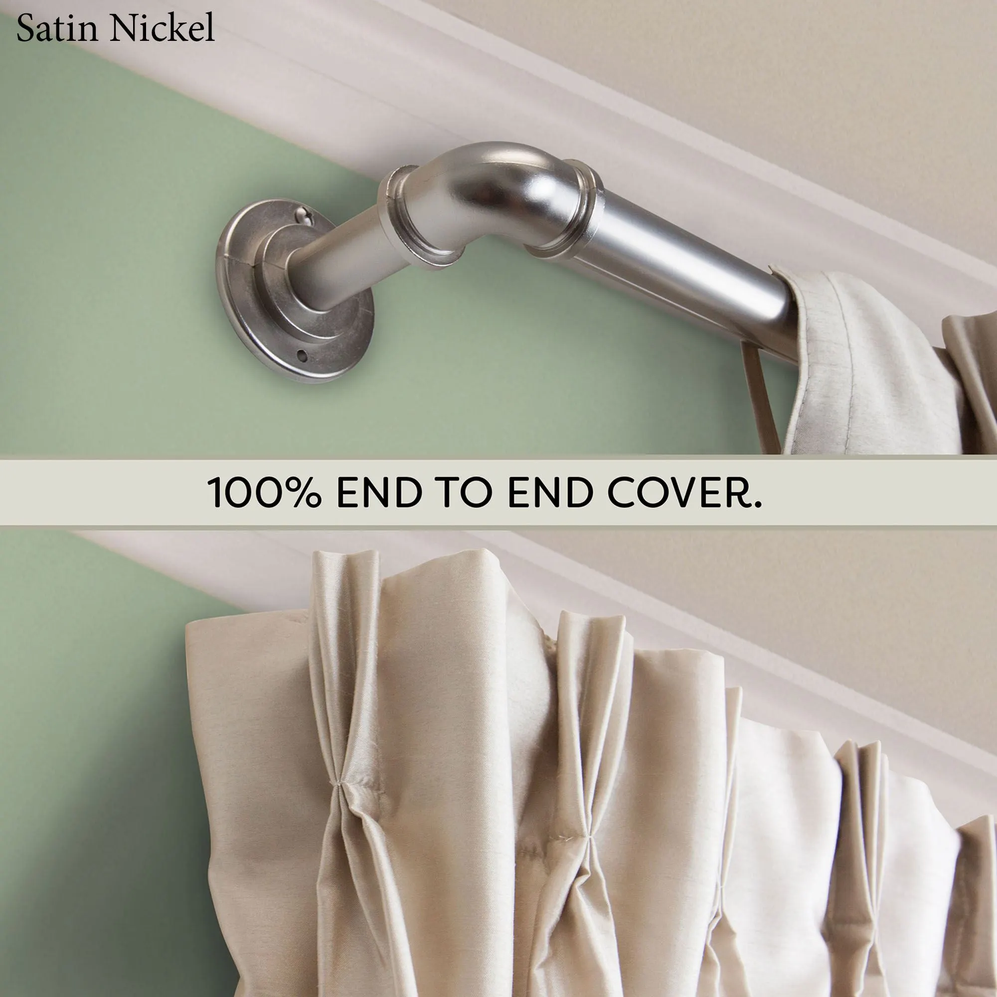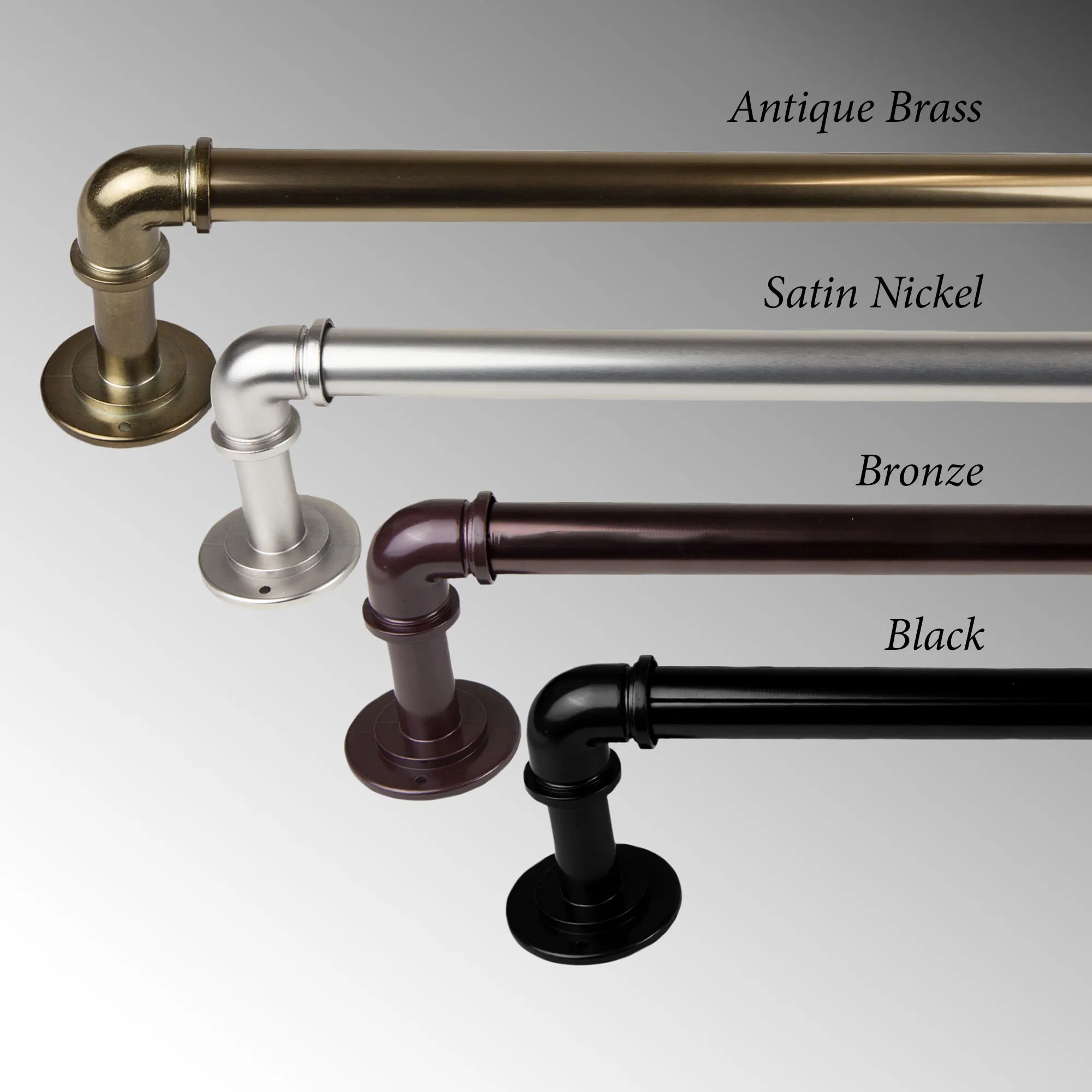 The industrial style of the Oxford Curtain Rod and Finial Set makes your window treatments look stunning. This metal set features a telescoping rod and two wraparound finials. If you desire privacy or simply wish to block out light and drafts, simply cover the entire rod with your curtains. Set includes a 1" dia. rod, two 4.25"L finials, and mounting bracket(s) with a projection of 4.5". The 28"-48", 48"-84", and 84"-120" sizes come with one bracket. The 120"-170" size comes with two brackets.