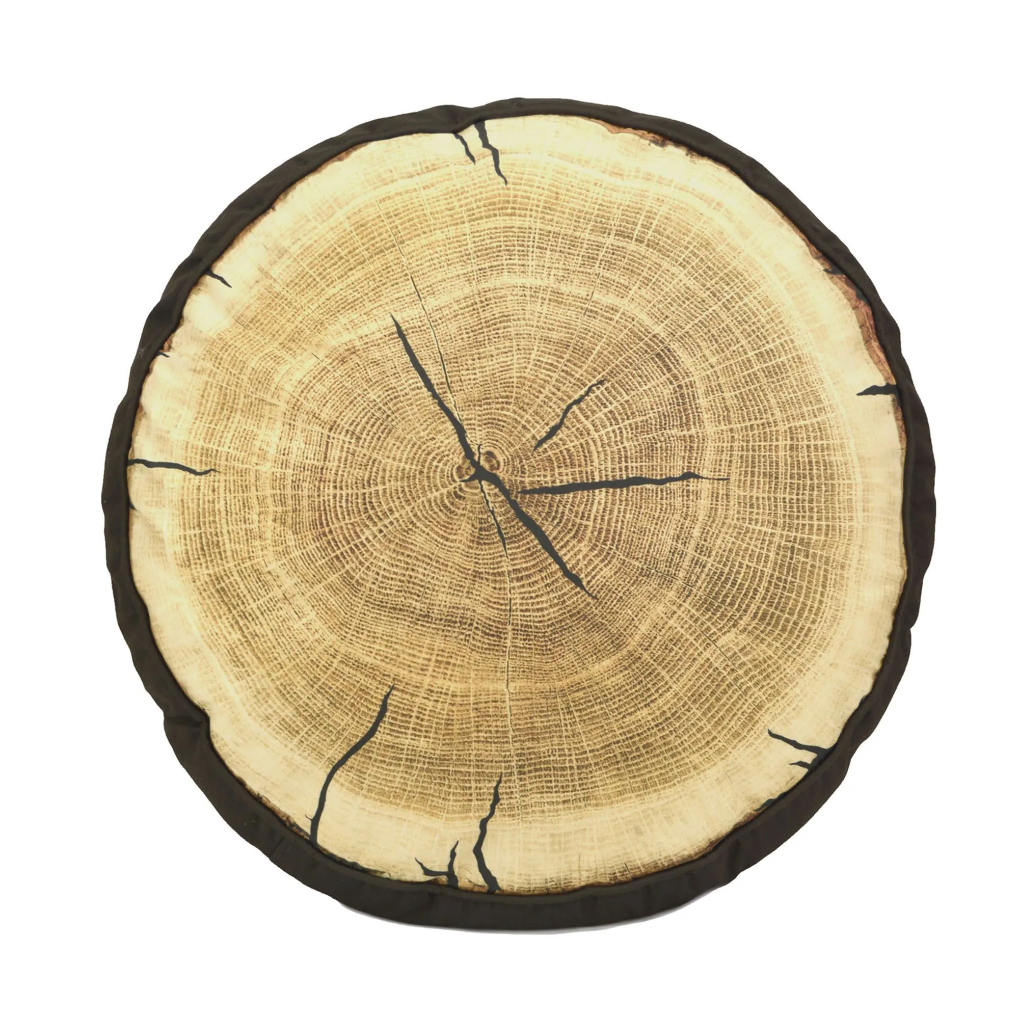 Piped Pillows: Spot clean. Round resembles the rings of a tree, has a 4" side gusset, and is reversible. Rectangle has a printed black bear and pine trees on ivory with a gray crackled look; reverse has a coordinating plaid print. Square has embroidered pine trees and the saying "Mountains Are Calling And I Must Go" on black.