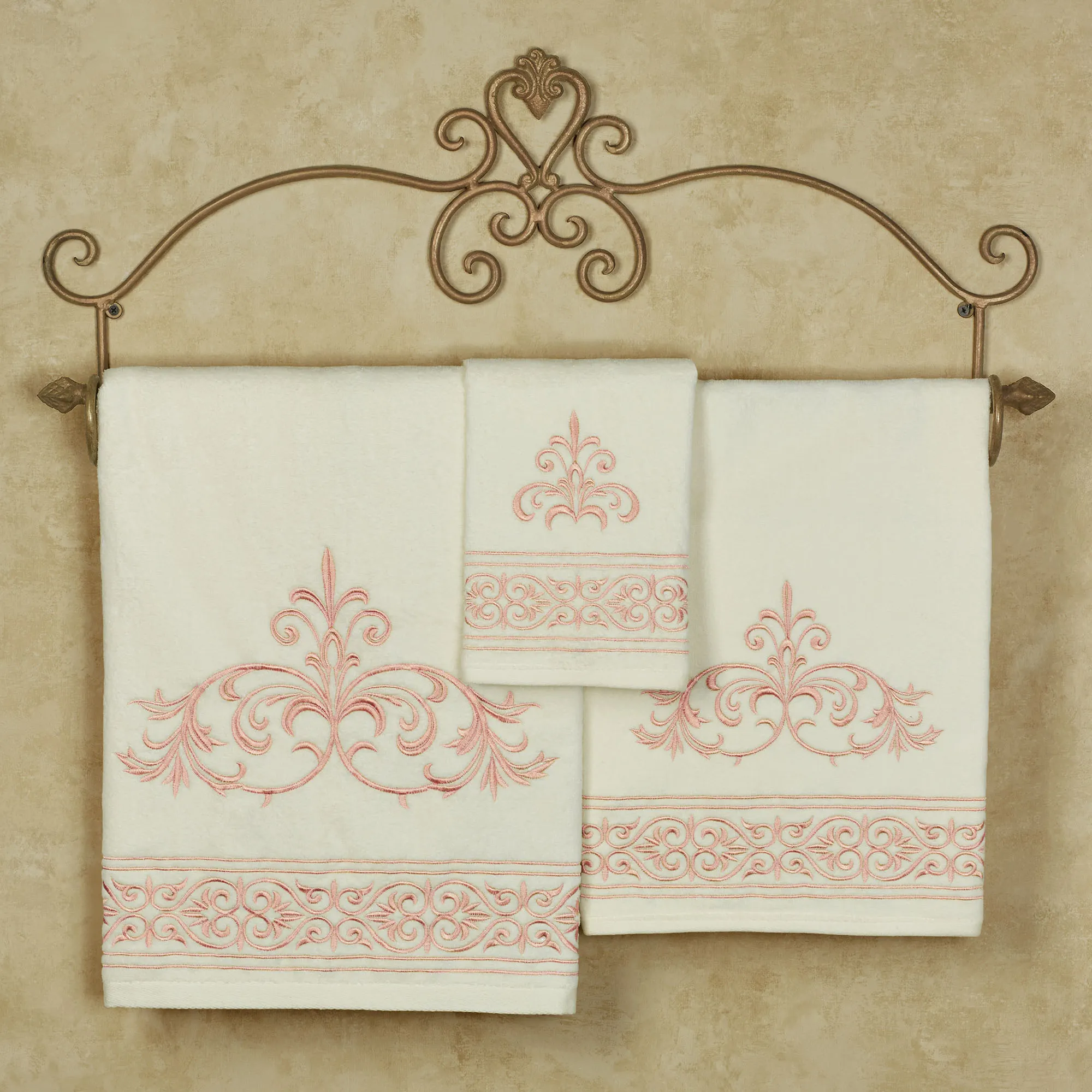 Palace II Light Cream and Pink Cotton Velour Embroidered Bath Towel Set