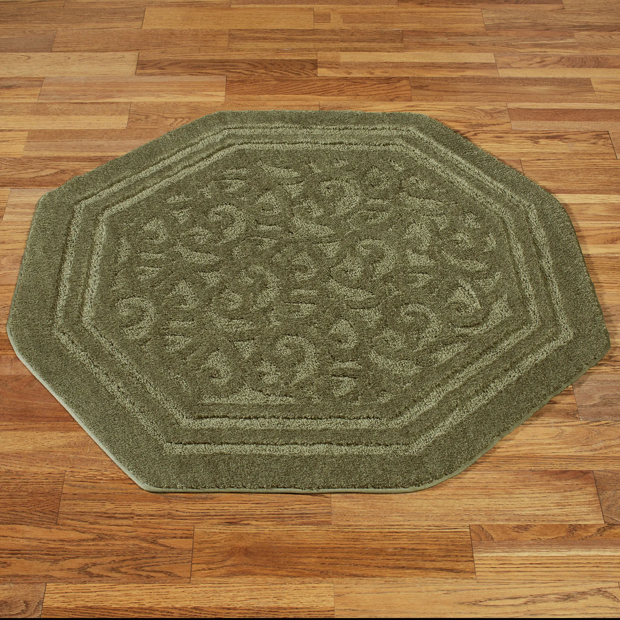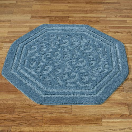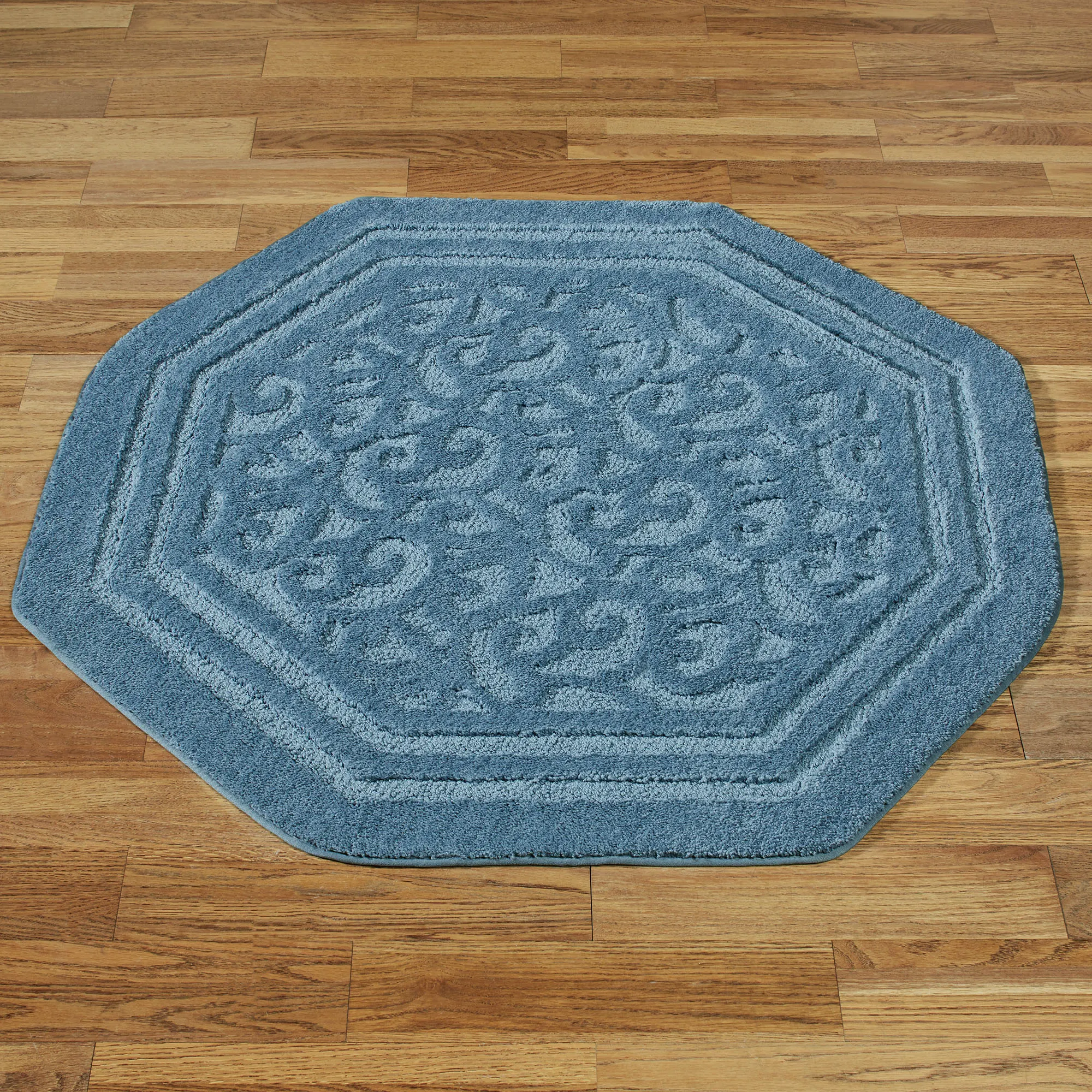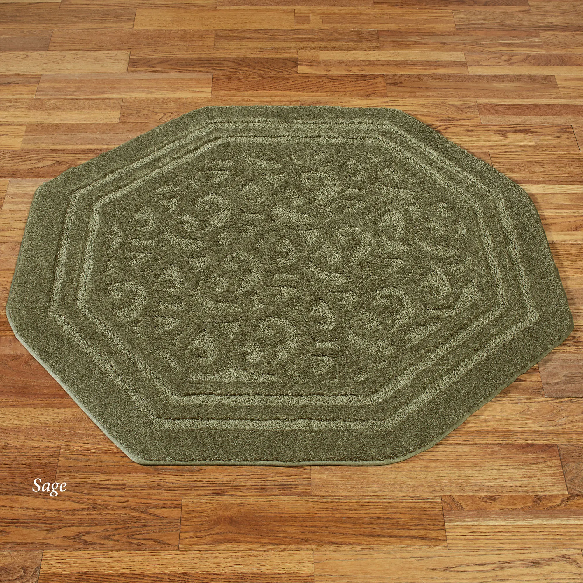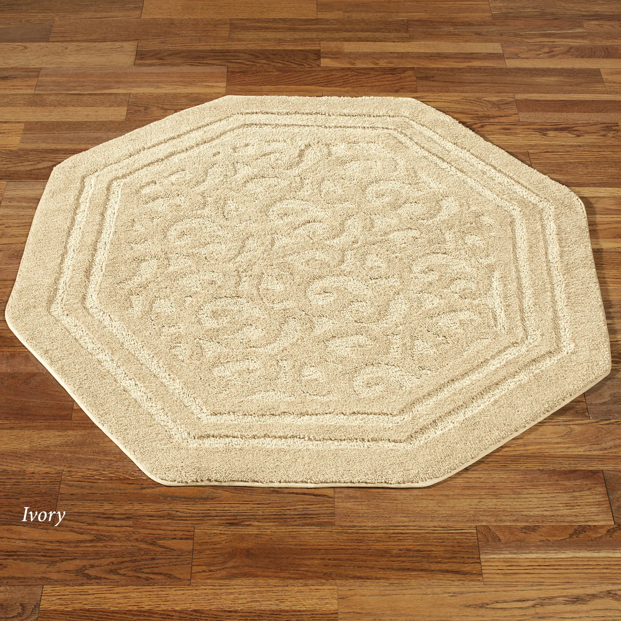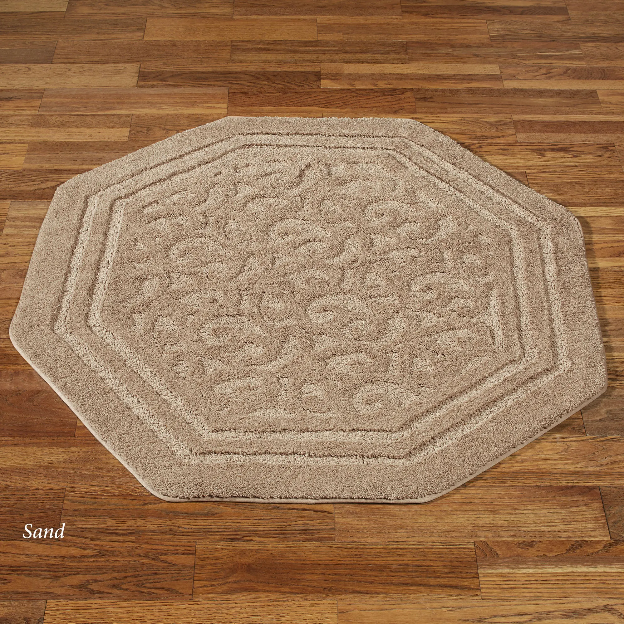 The Palermo Rug adds a charming touch with intriguing tone-on-tone sculpted scrollwork. Crafted from a super-soft micro polyester, the .5" thick, solid color rug features a rich touchable texture, scrolls, and a double frame. Backing is slip-resistant thermoplastic rubber. Machine washable. Do not vacuum. Imported.