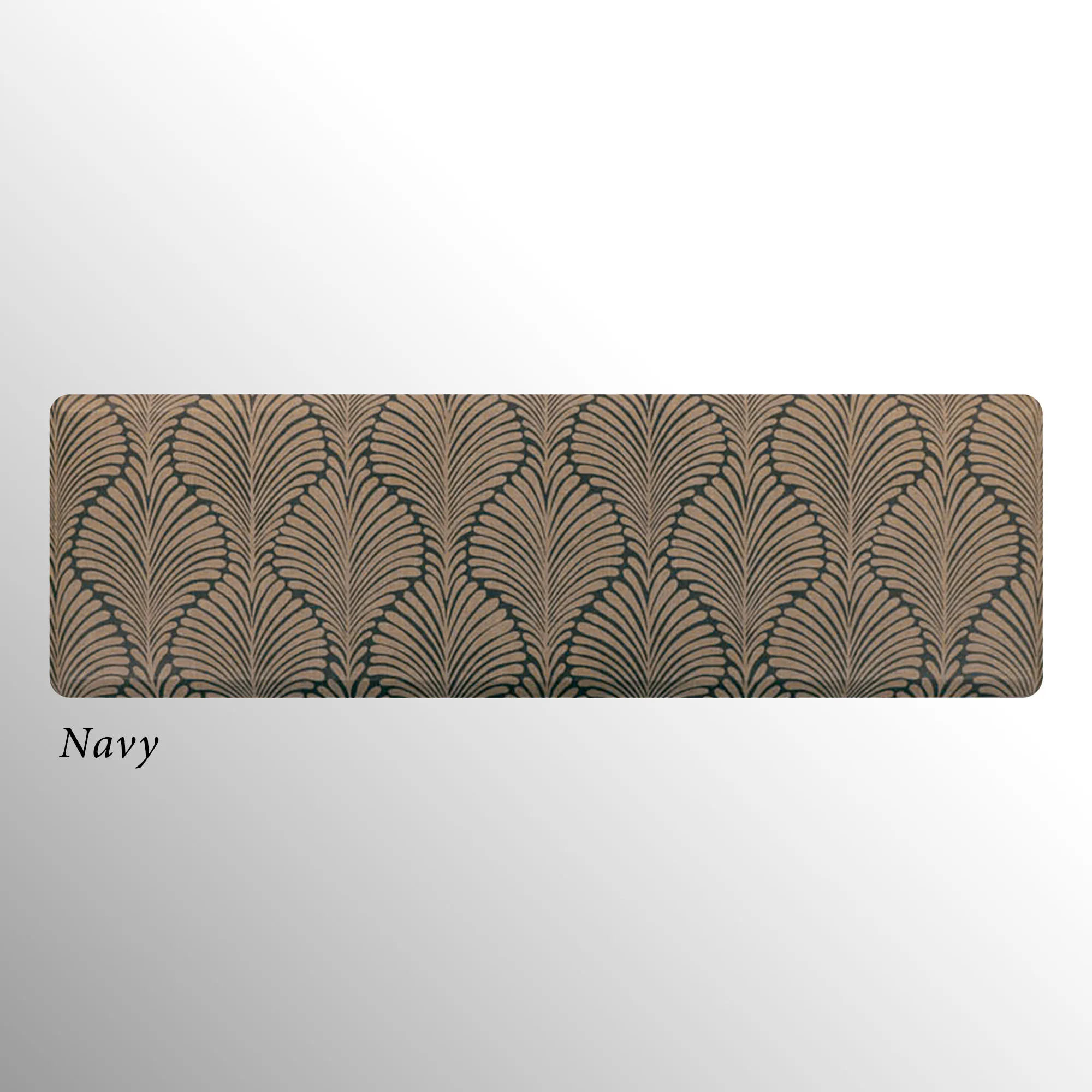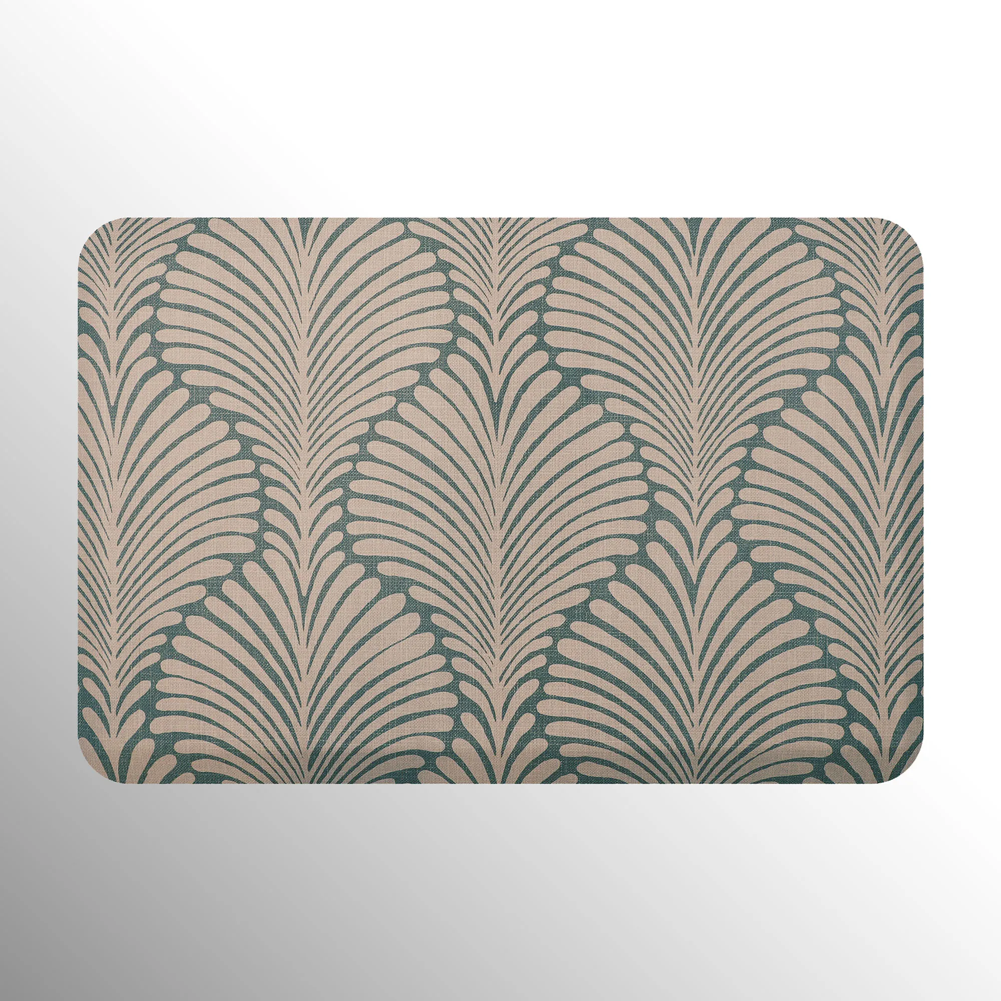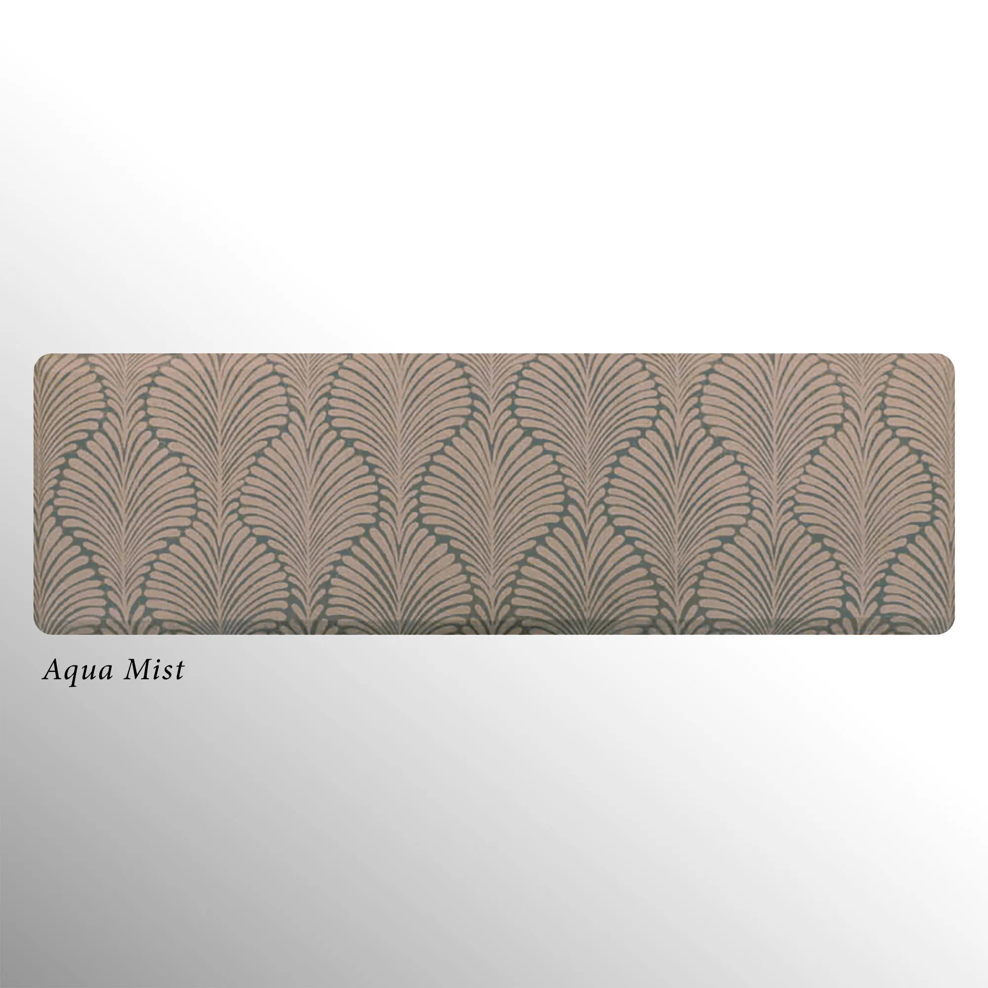 The stylish Palm Fronds Sole Comfort Anti-Fatigue Mat provides a waterproof, stain-resistant, easy-to-clean, and comfortable surface. Proudly made in the USA, the PVC-free polyurethane mat features a .625" thick resilient foam center resistant to crushing for a long-lasting design that reduces aches and pains from prolonged standing. The printed two-tone undulating pattern resembles palm fronds for an exotic modern touch. Rectangle is 32"x22". Runner is 72"x22". Simply wipe to clean.