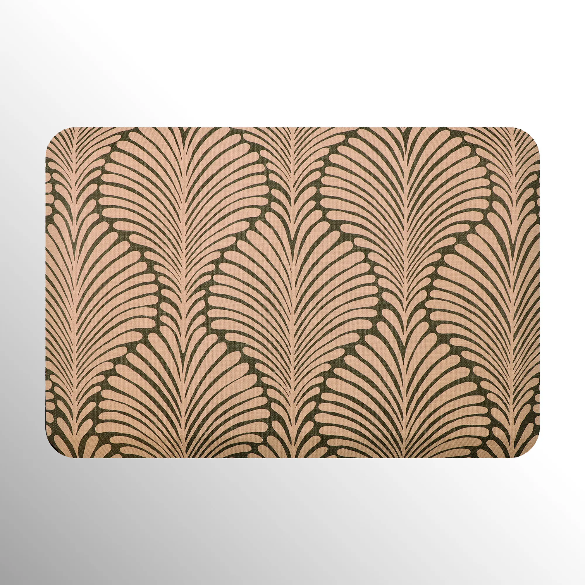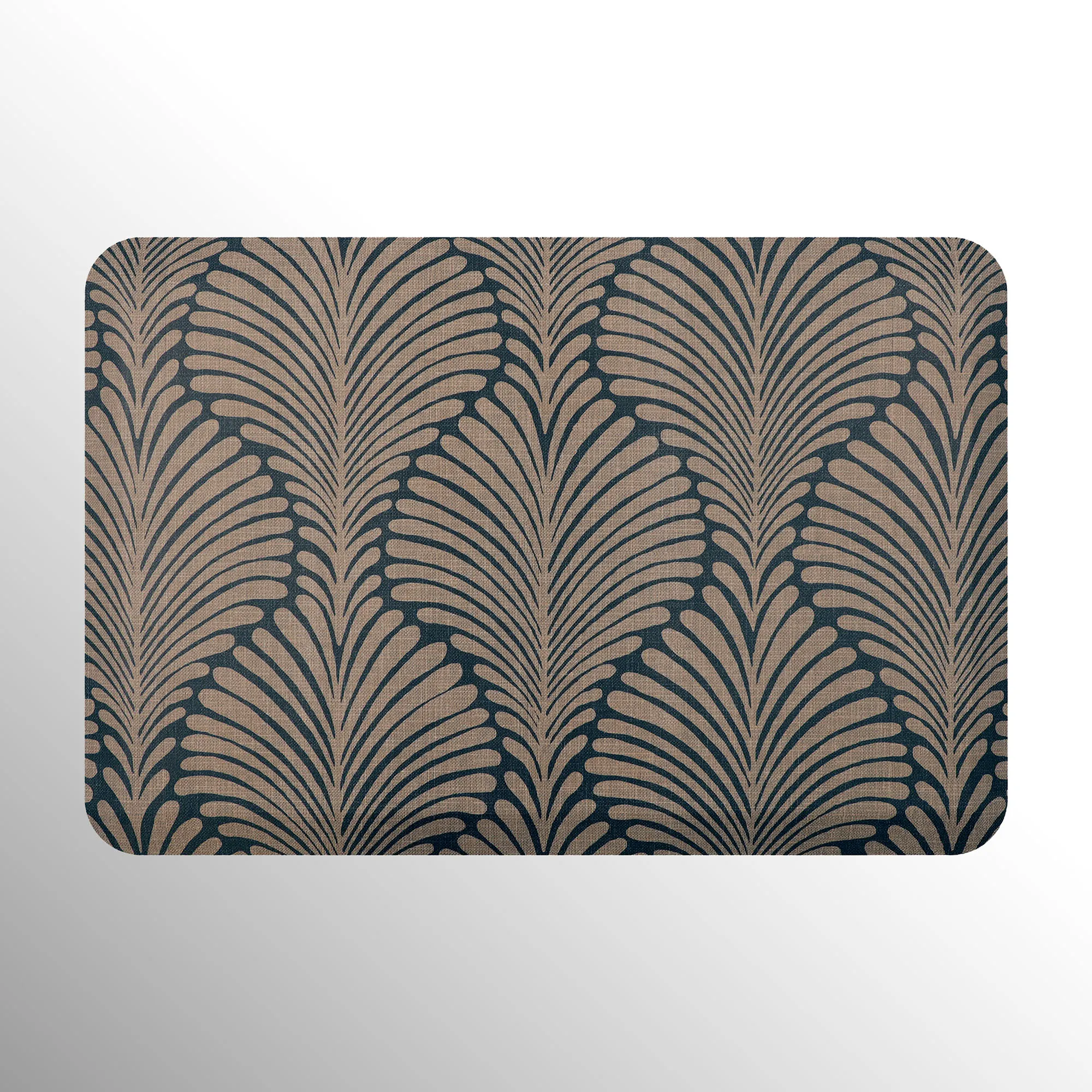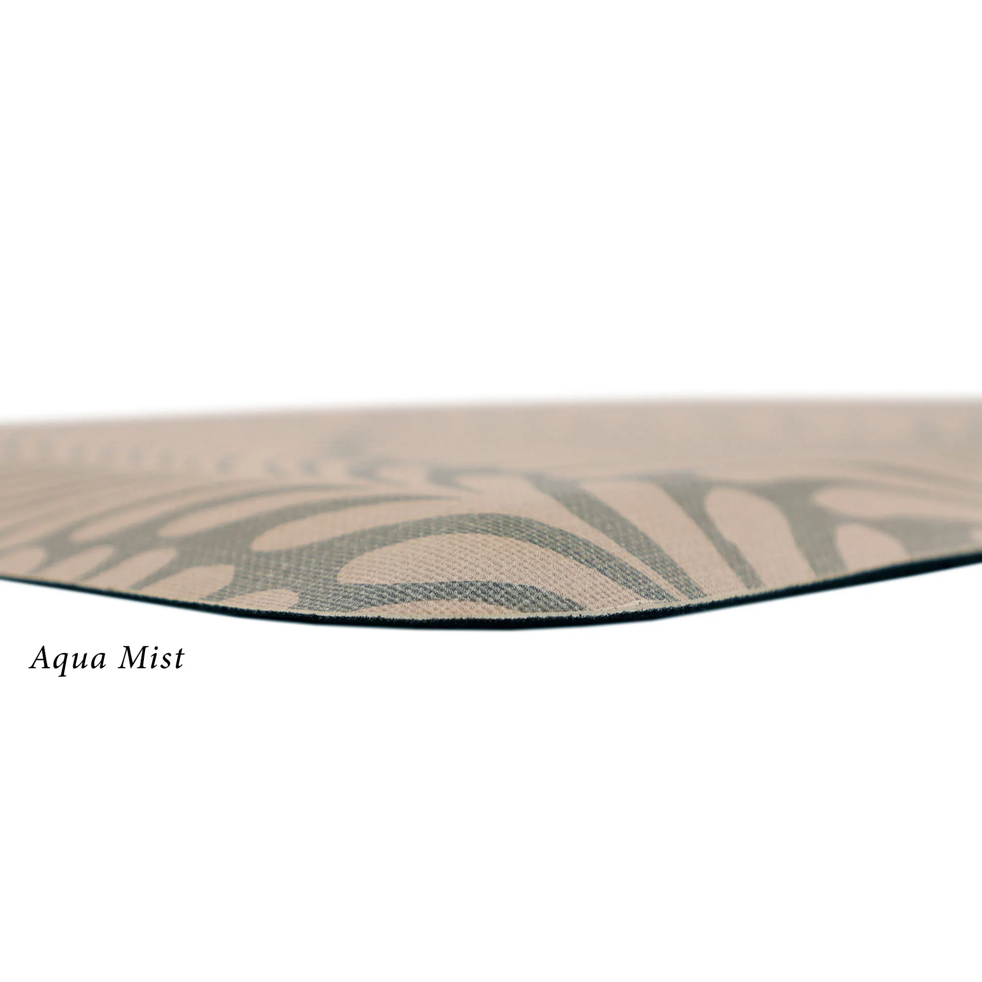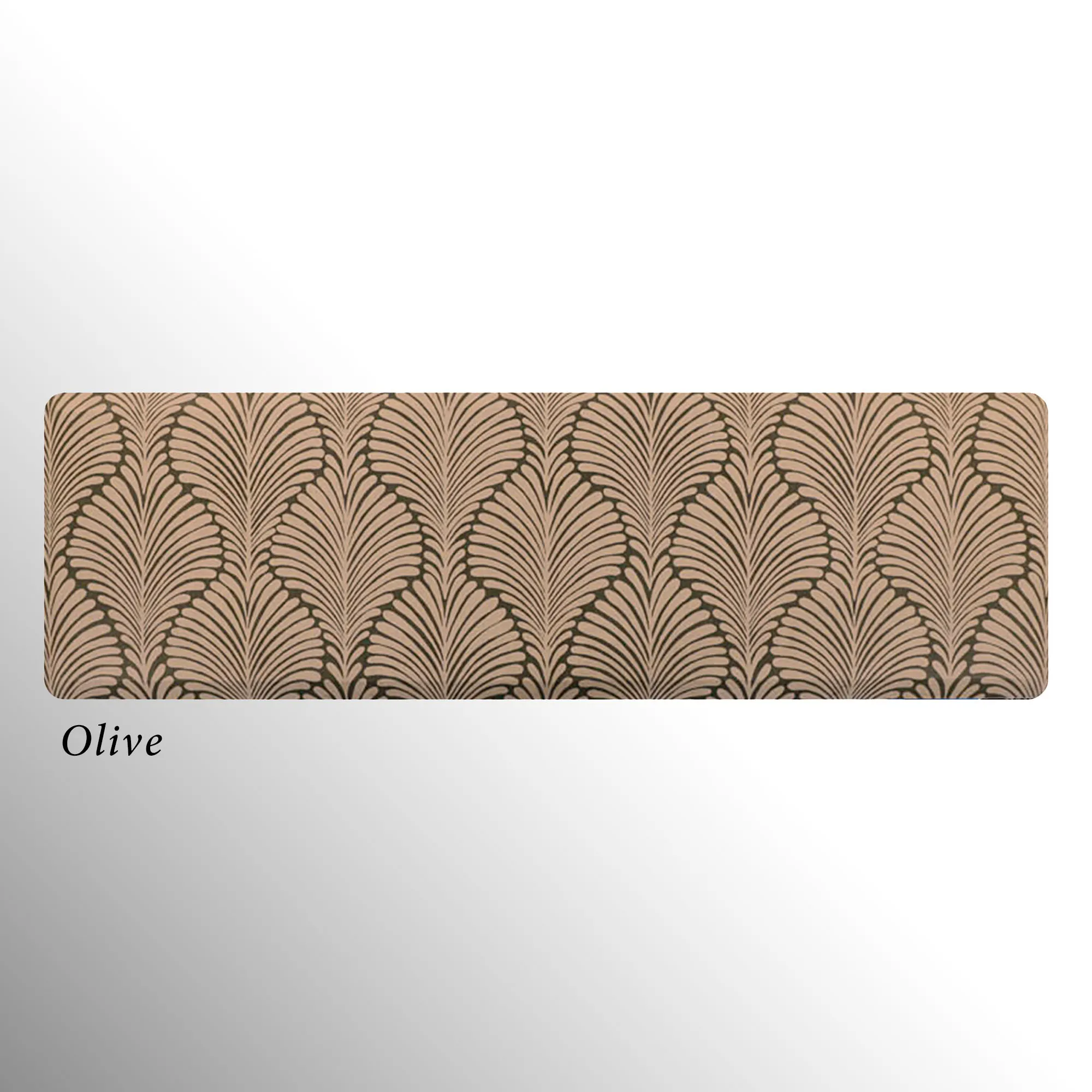 The stylish Palm Fronds Sole Comfort Anti-Fatigue Mat provides a waterproof, stain-resistant, easy-to-clean, and comfortable surface. Proudly made in the USA, the PVC-free polyurethane mat features a .625" thick resilient foam center resistant to crushing for a long-lasting design that reduces aches and pains from prolonged standing. The printed two-tone undulating pattern resembles palm fronds for an exotic modern touch. Rectangle is 32"x22". Runner is 72"x22". Simply wipe to clean.