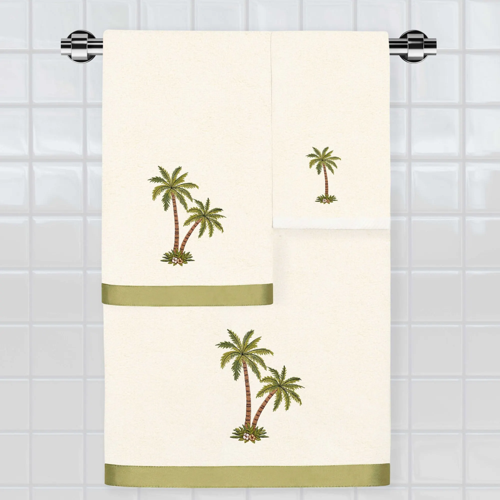 500 GSM Palmera Embroidered Tropical Palm Tree Turkish Cotton Bath Towel Set