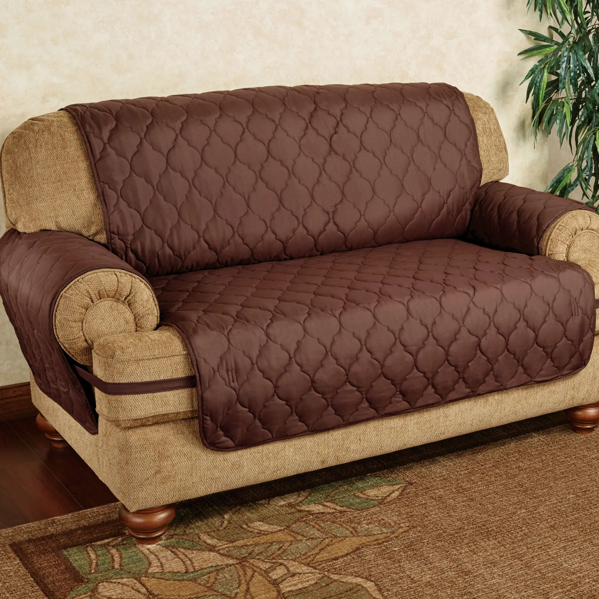 Transport yourself to a beautiful retreat with the Paramount Solid Color Furniture Protectors, while protecting your furnishings from pets, stains, and dirt. Water-repellent, snag-resistant, and soil-resistant microfiber polyester furniture protectors have a quilted ogee pattern and cover more than 90% of your furnishing! Each strap has hidden D-rings on the ends to keep it secure; Recliner/Wing Chair cover does not have straps and D-rings. Cover is easy to use and to install. Specify Recliner/Wing Chair Cover, Loveseat Cover, Sofa Cover, or Extra-Long Sofa Cover. Choose Slate Blue, Burgundy, Chocolate, Harvest Gold, Natural, or Sage. Fill is polyester. Machine washable. Imported.