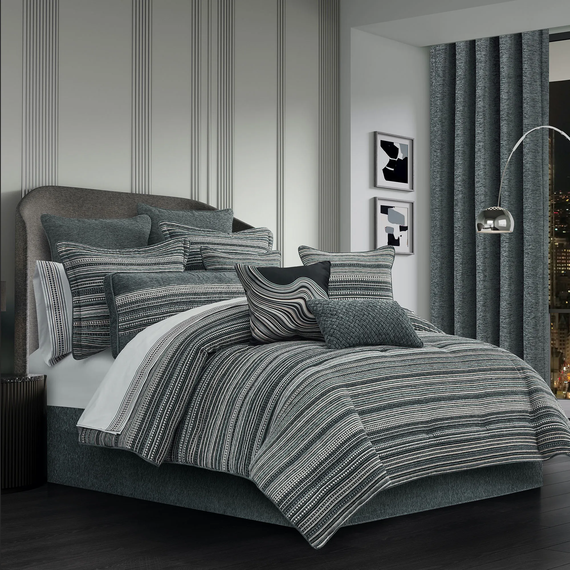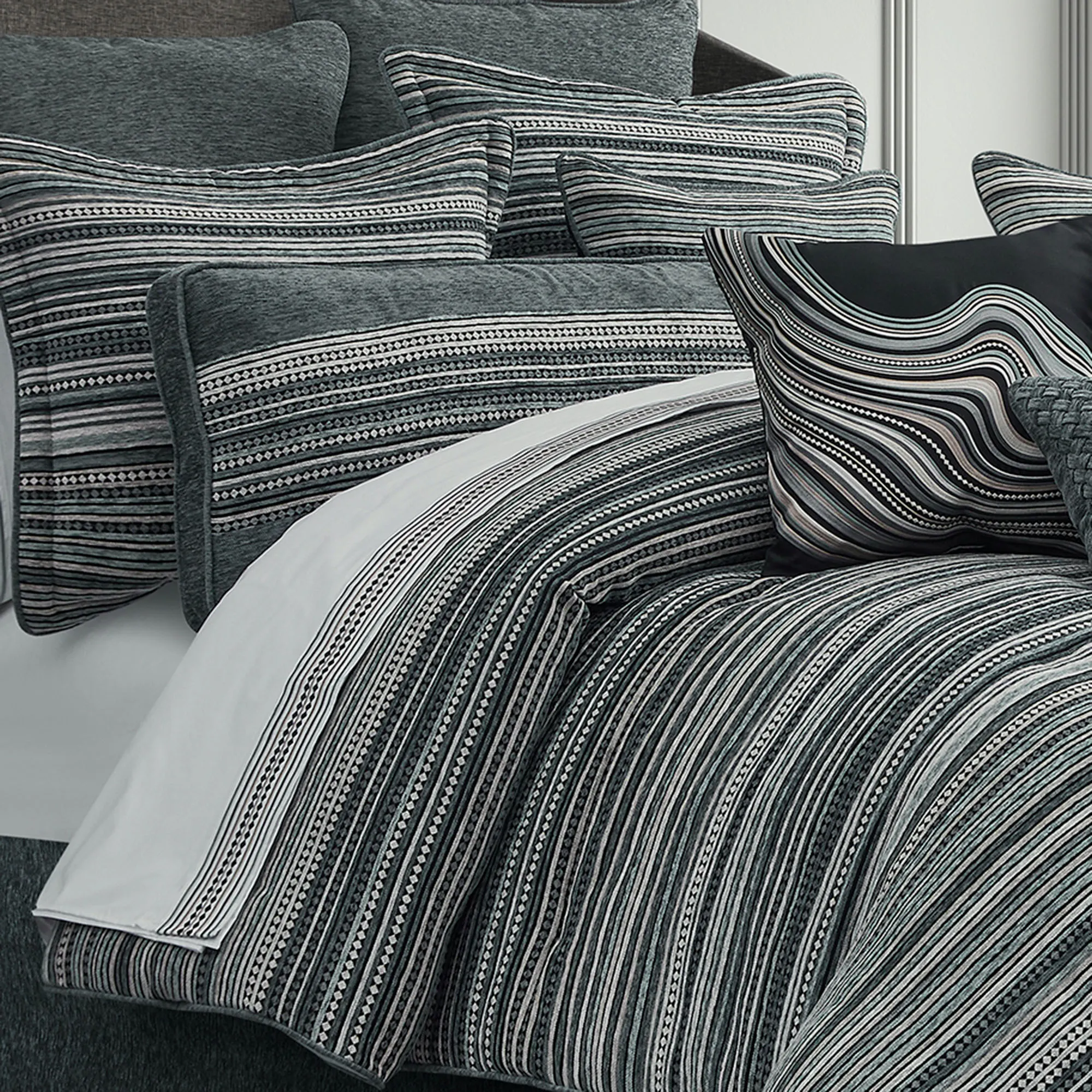 Parallel Slate Gray Striped Comforter Set Luxury Bedding by J Queen New York