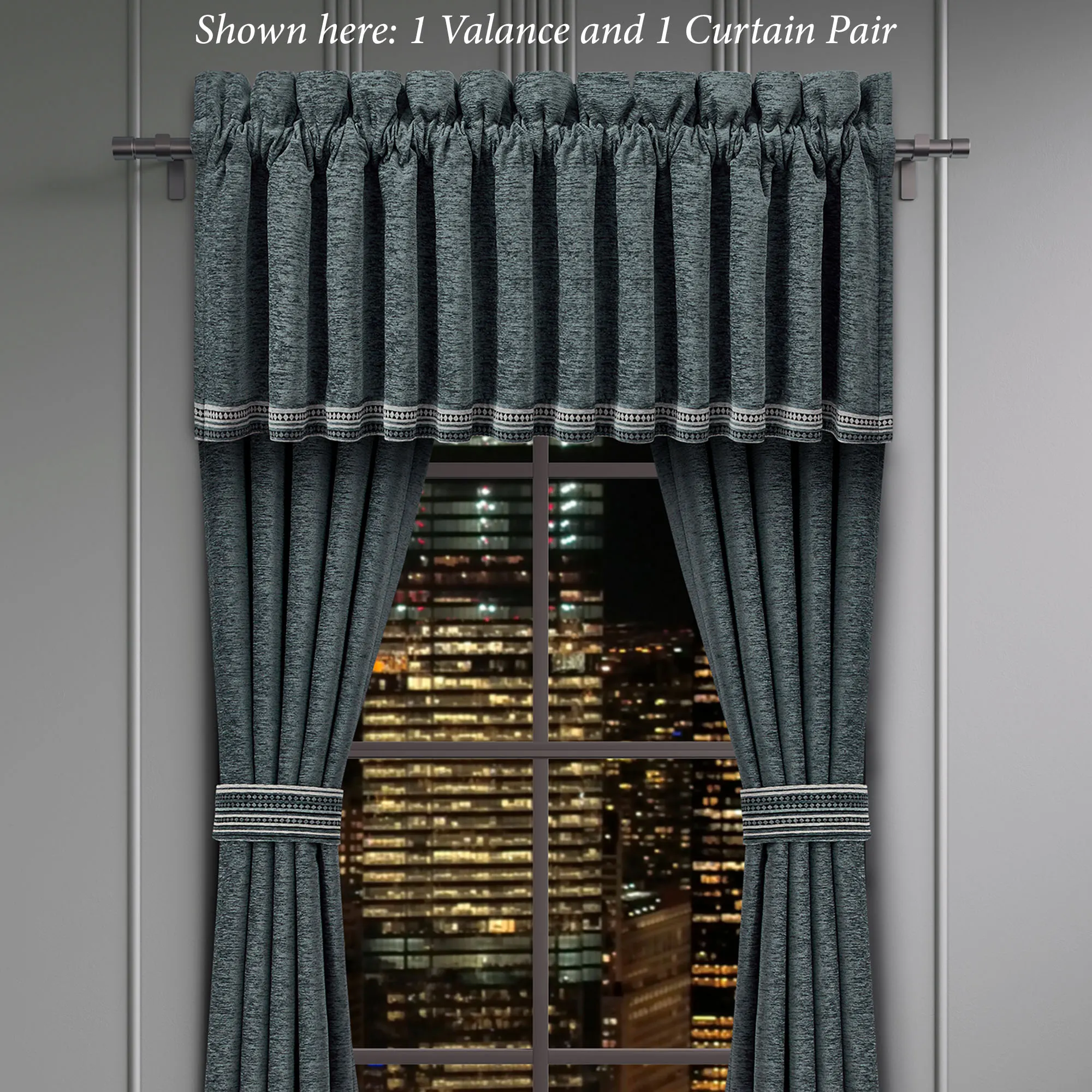 Window Treatment: Curtain Pair has a 3" rod pocket and is 100"W; choose 84"L or 95"L. Valance has a 3.25" rod pocket and is 88"Wx18"L.
