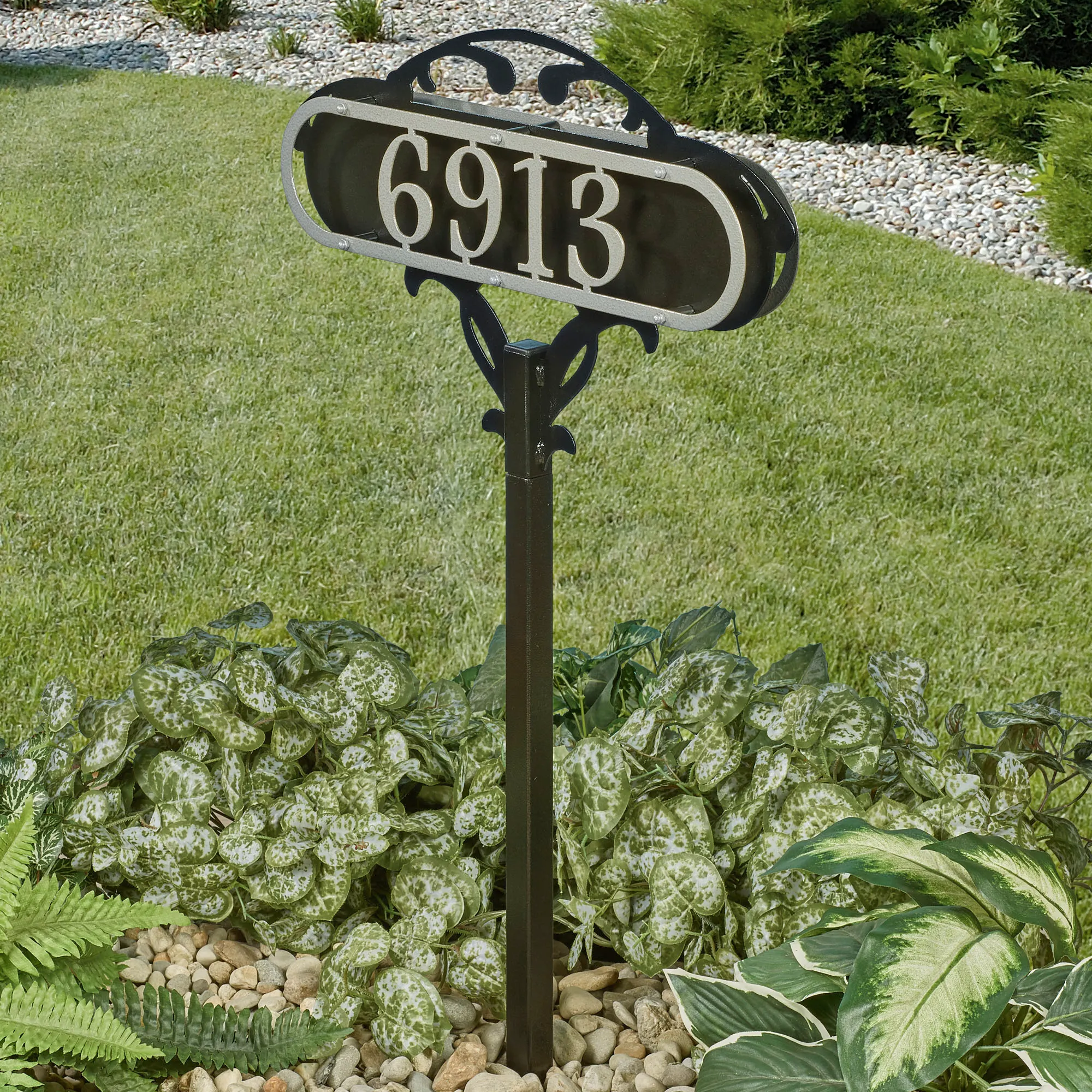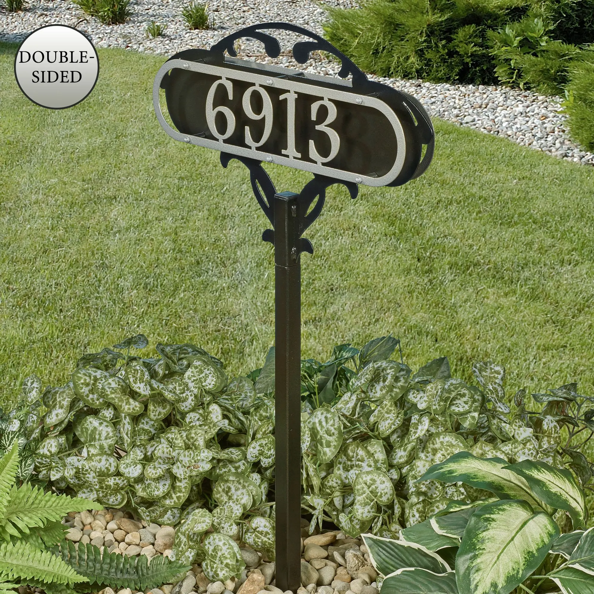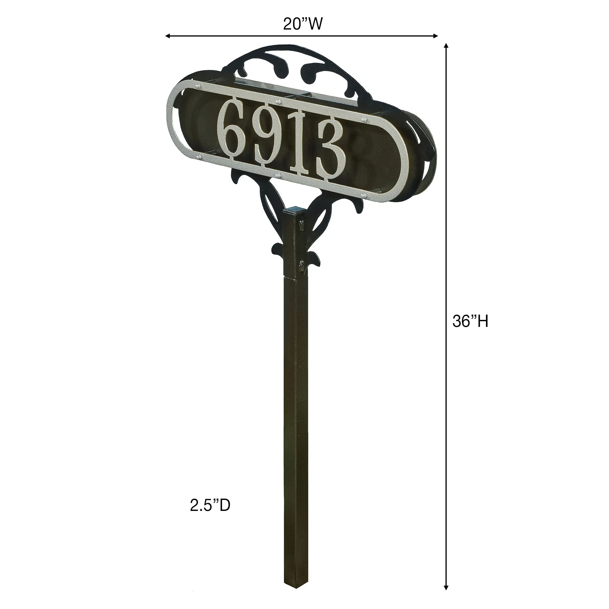 Display the Paris House Number Address Sign Yard Stake so that your address can easily be seen. Handcrafted of precision-cut, 14-gauge steel, this yard stake has a UV-, weather-, and tarnish-resistant powder-coat finish. The arched backplate, scrolls, and stake have a black finish; the oval plaque with 4.5"H numbers is beautifully finished in silver. The double-sided yard stake displays your house numbers on both sides. Outdoor year-round use. Measures 20"Wx2.5"Dx36"H.