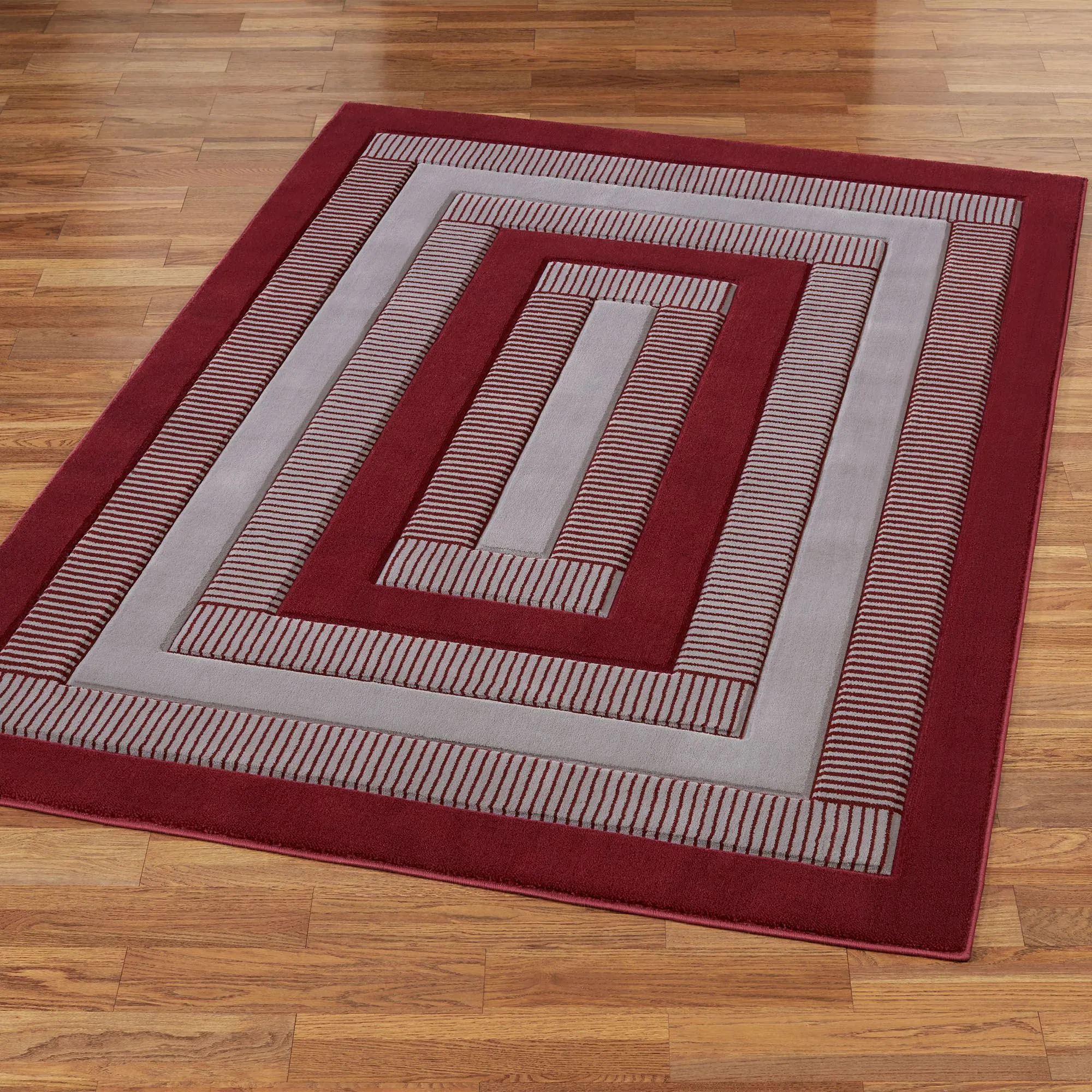 Stake your mark upon Park Place with this luxurious geometric area rug. Power-loomed from heat-set polypropylene, the .375" thick rug features defining alternating striped and solid frames detailed with angular borders. The burgundy coloration also has light gray hues. We recommend professional cleaning by a rug cleaner. Imported.
