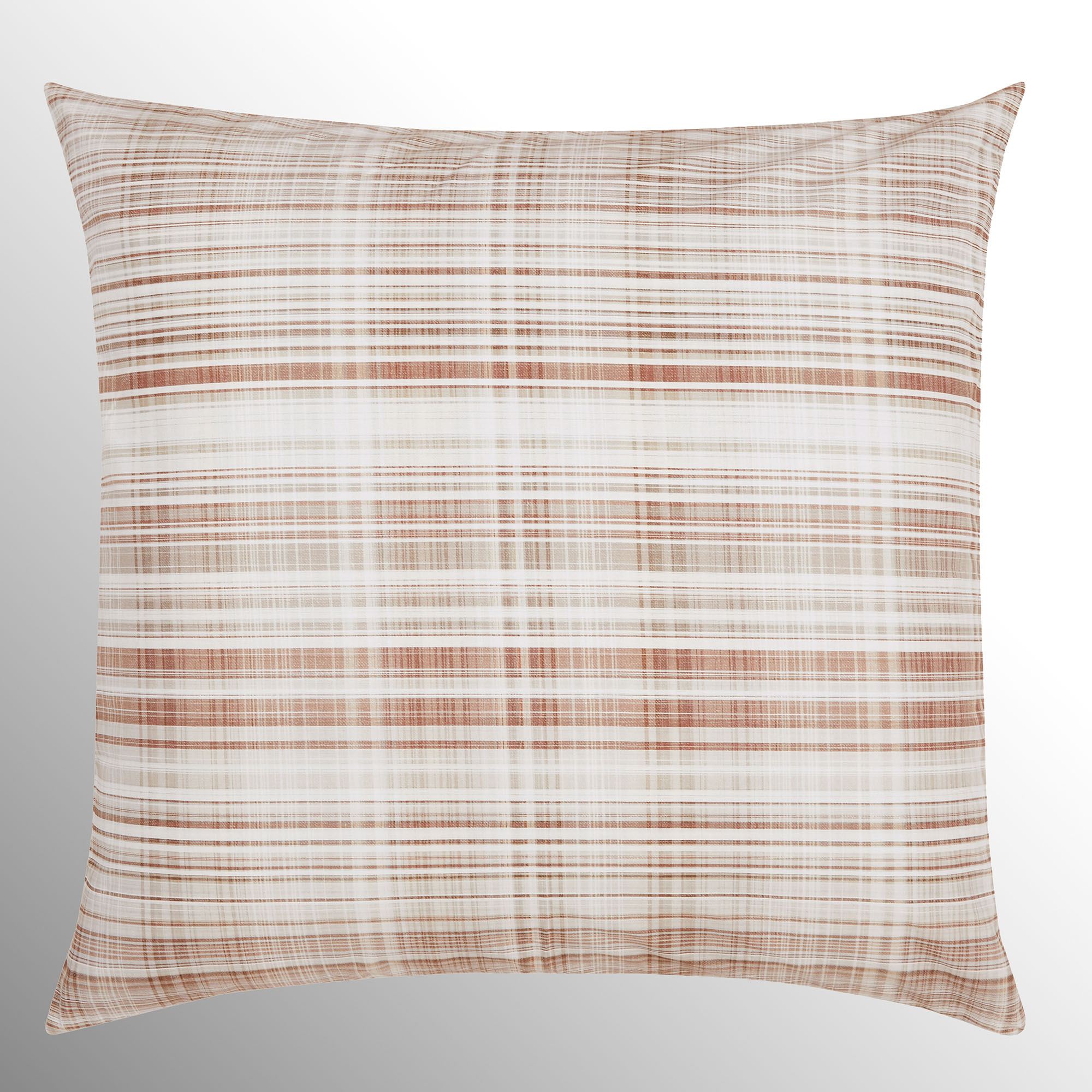 The plaid stylings of the Pascal Bedding exude effortless charm. From Oscar Oliver New York City, the printed cotton ensemble features a modern linear plaid in inviting tones that fill both sides of each reversible element. Colors include shades of cinnamon, beige, and white.