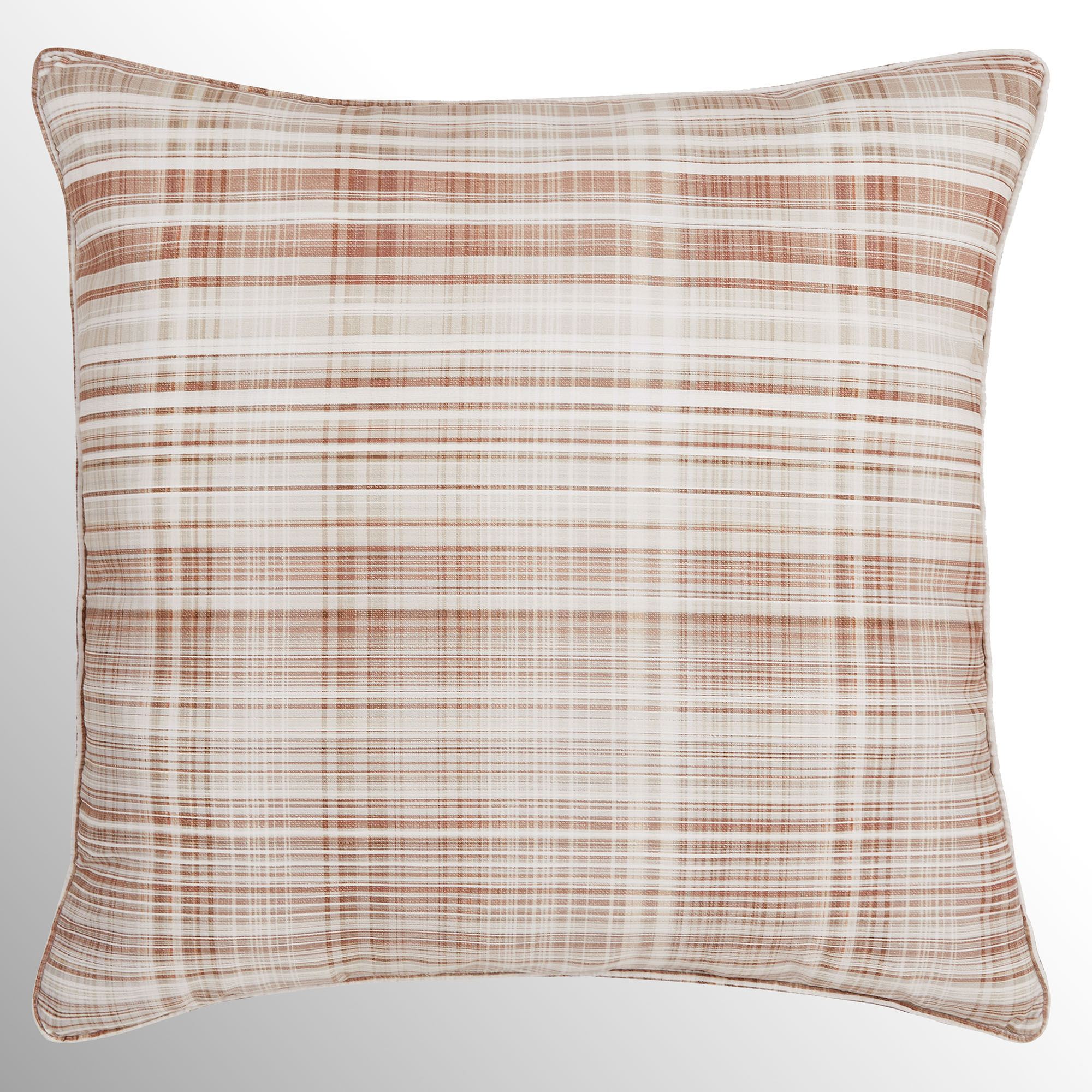 Square Pillow has piped edges; spot clean.