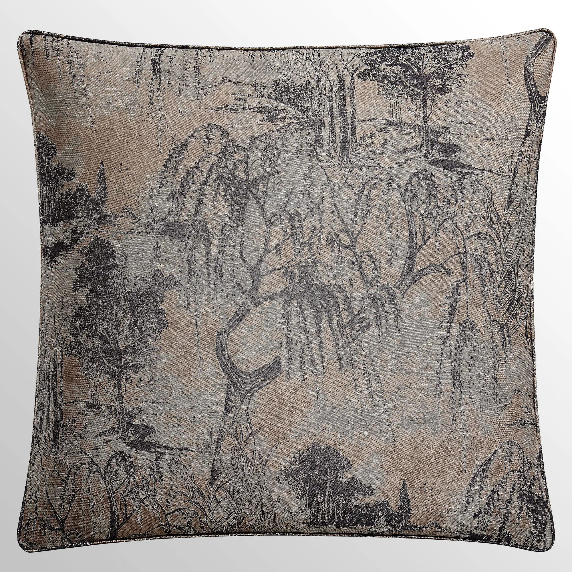 • Jacquard-woven bedding features lush scenery