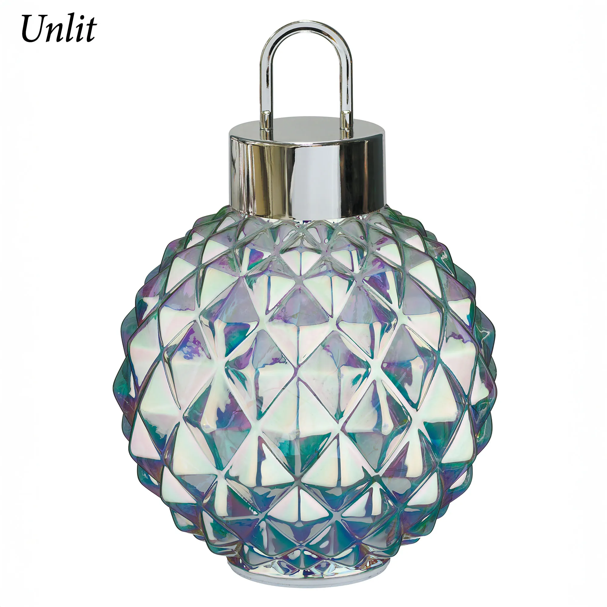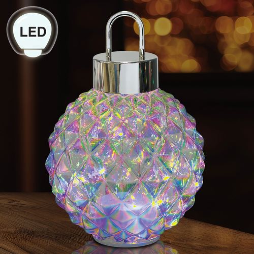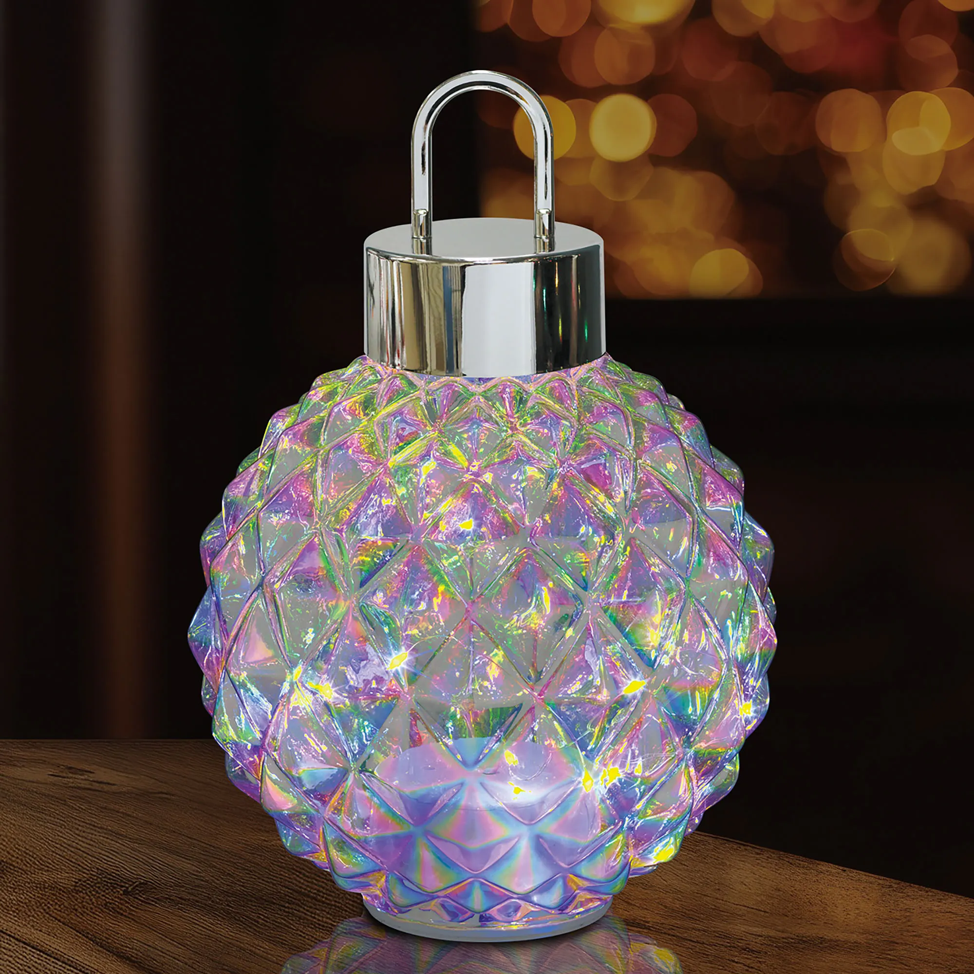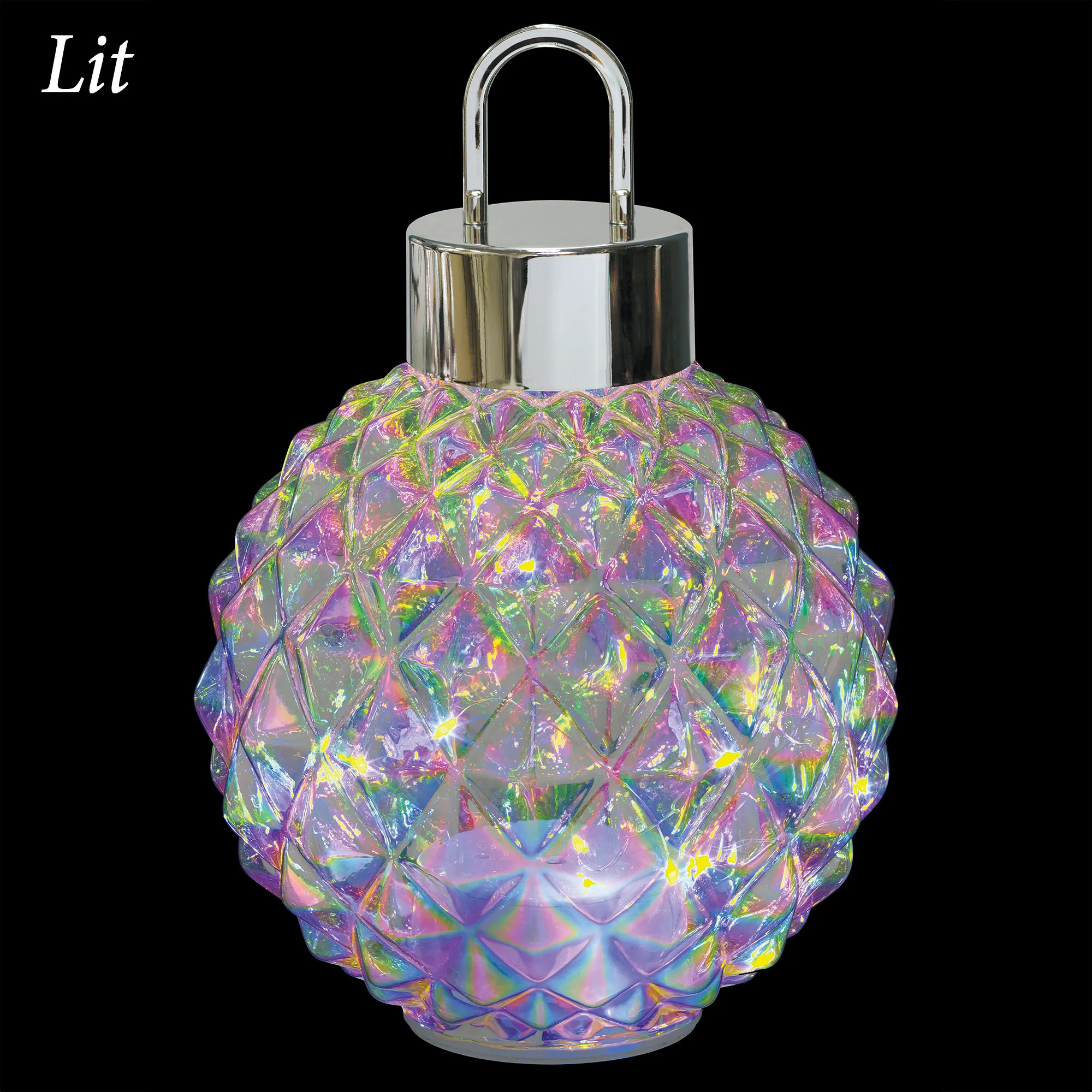 Pearl Diamond Spinning LED Lighted Iridescent Glass Ornament Table Accent