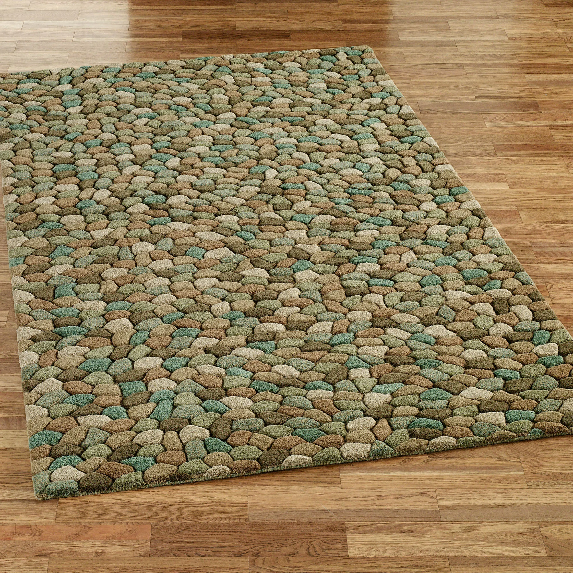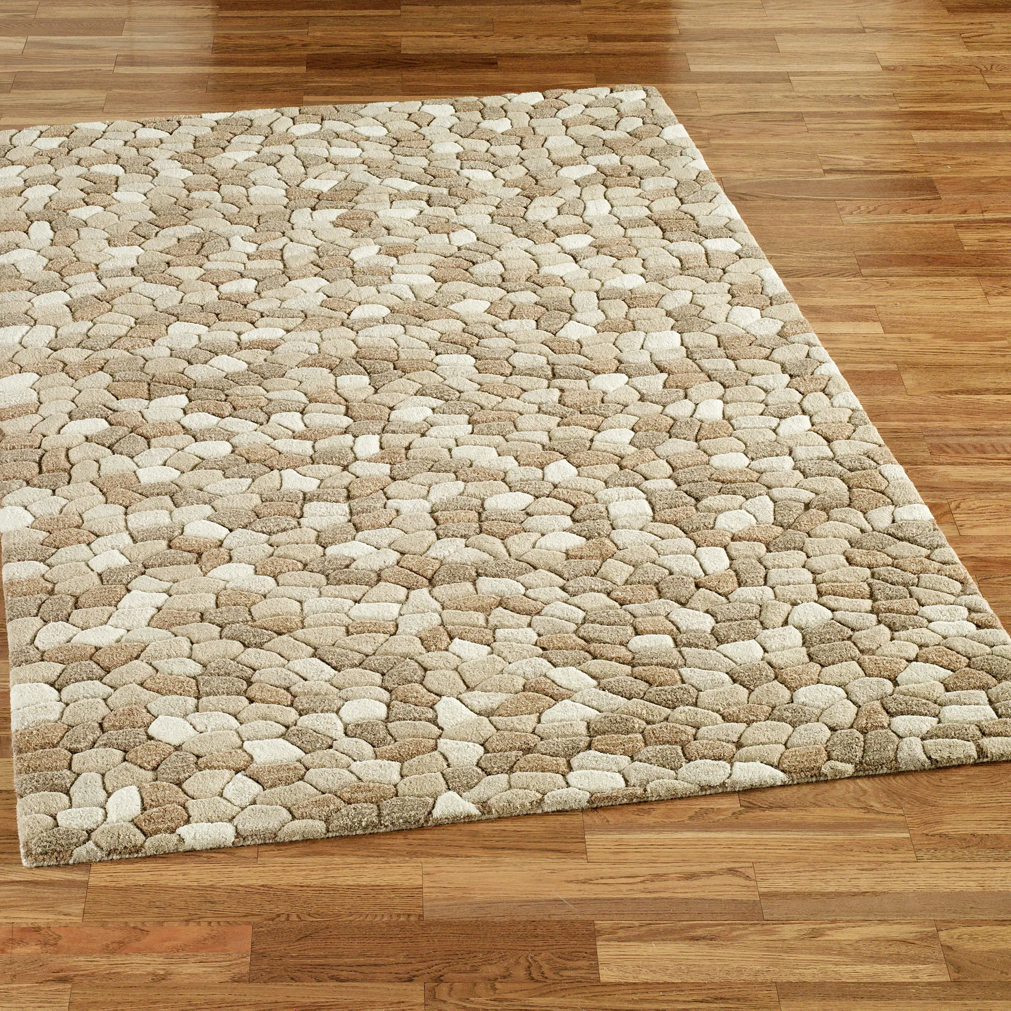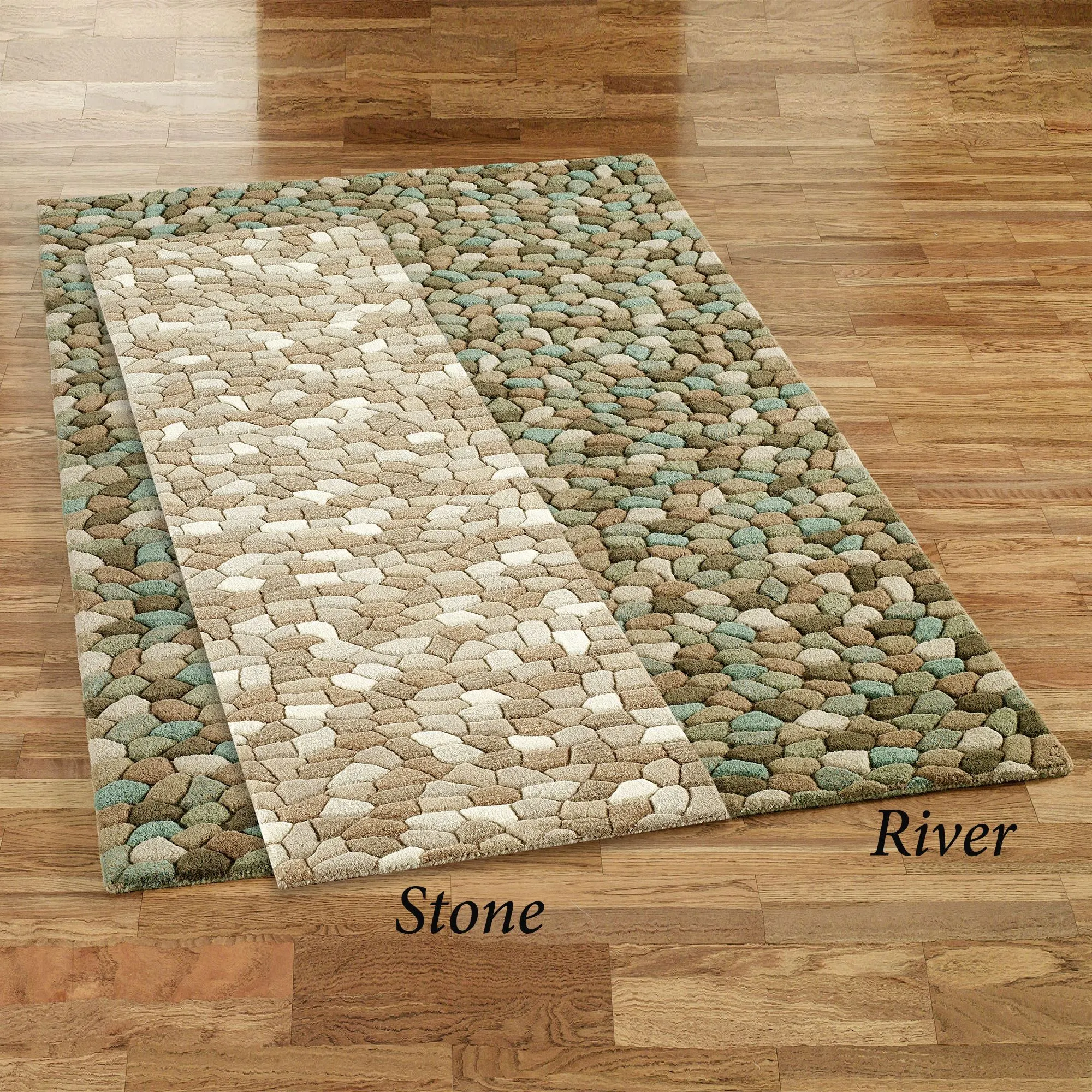 Imagine the gentle sound of trickling water as you enjoy the sight and texture of the Pebble Area Rugs, handcarved to resemble rocky stream beds. Hand-tufted in India from wool, these floorcoverings are .75" thick. River features hues of mossy greens and earthy browns, while Stone has sandy neutral tones. We recommend professional cleaning by a rug cleaner.
