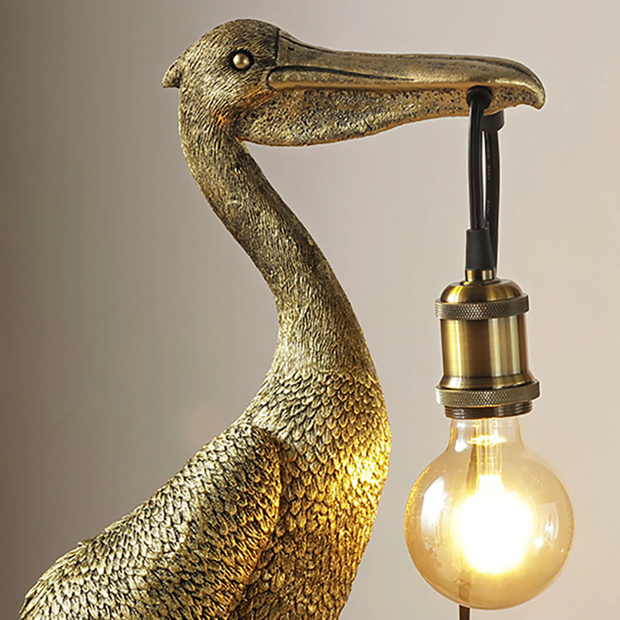 Antique Gold Pelican Shaped Sculptural Desk Lamp