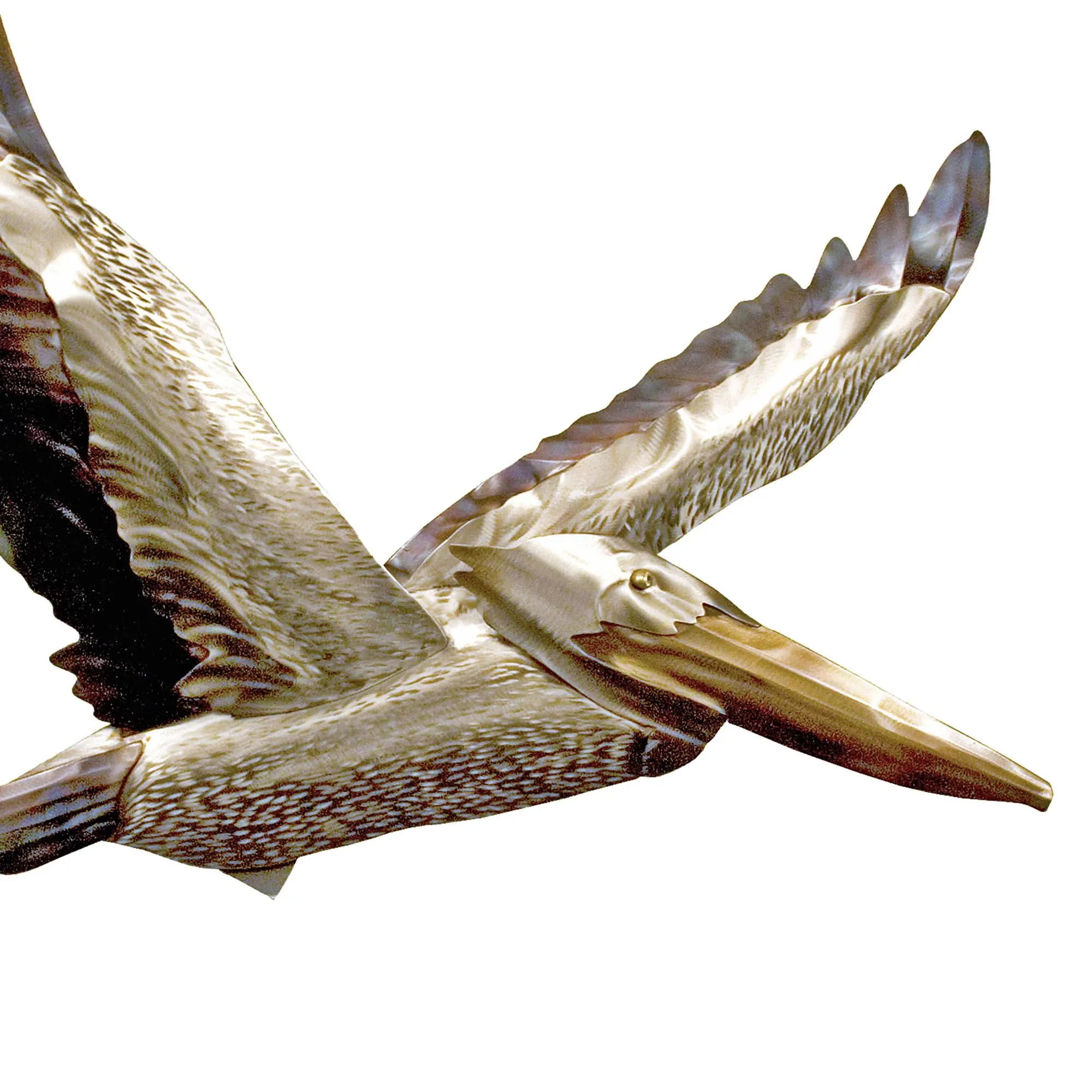 Pelican in Flight Indoor Outdoor Metal Wall Sculpture