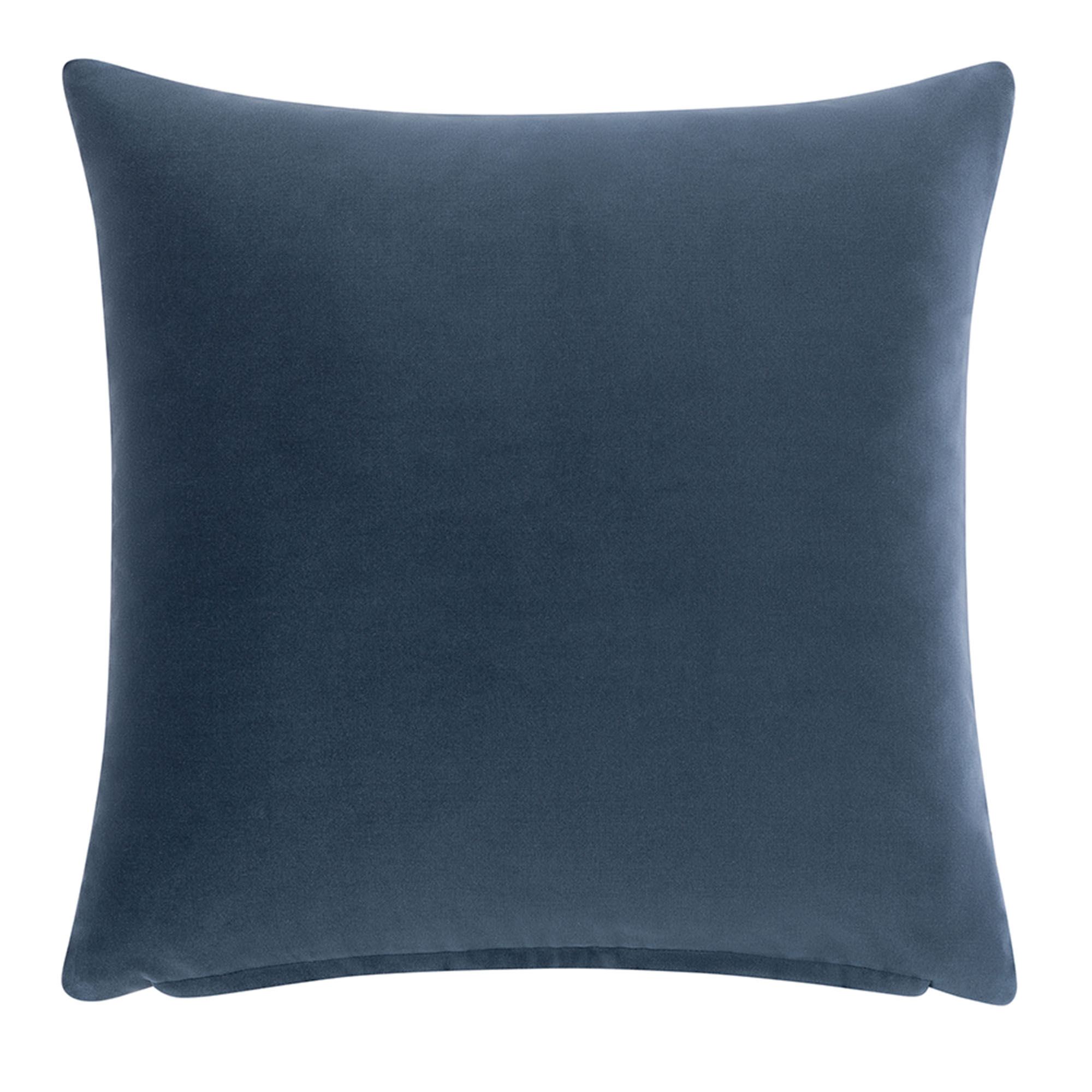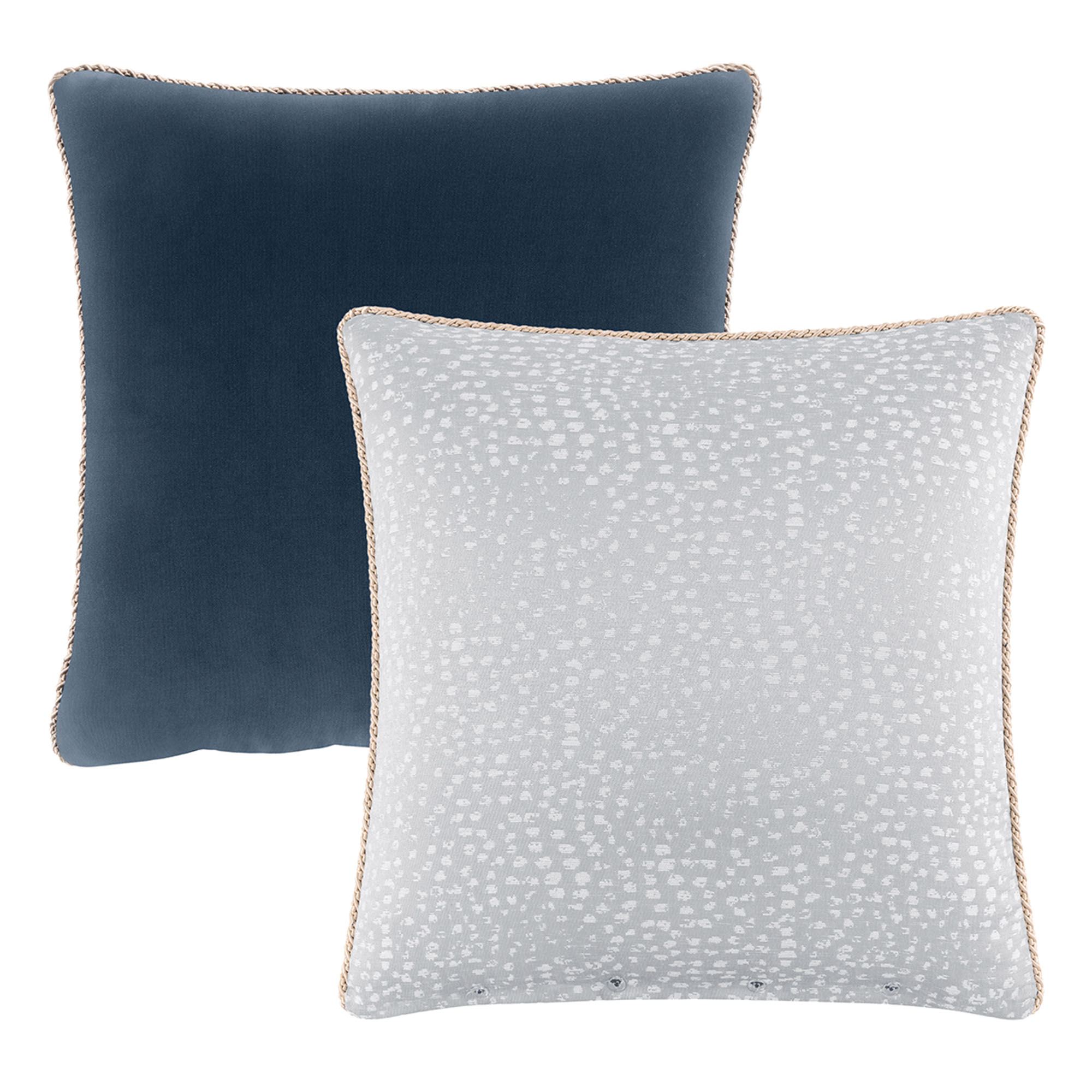 European Sham is woven gray with abstract speckled designs and twist-cording edges; reverses to blue velvet; button closure. Dry clean only.