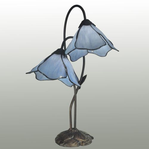 Peolking Twin Blue Lily Accent Lamp is metal with stained art glass shades.
