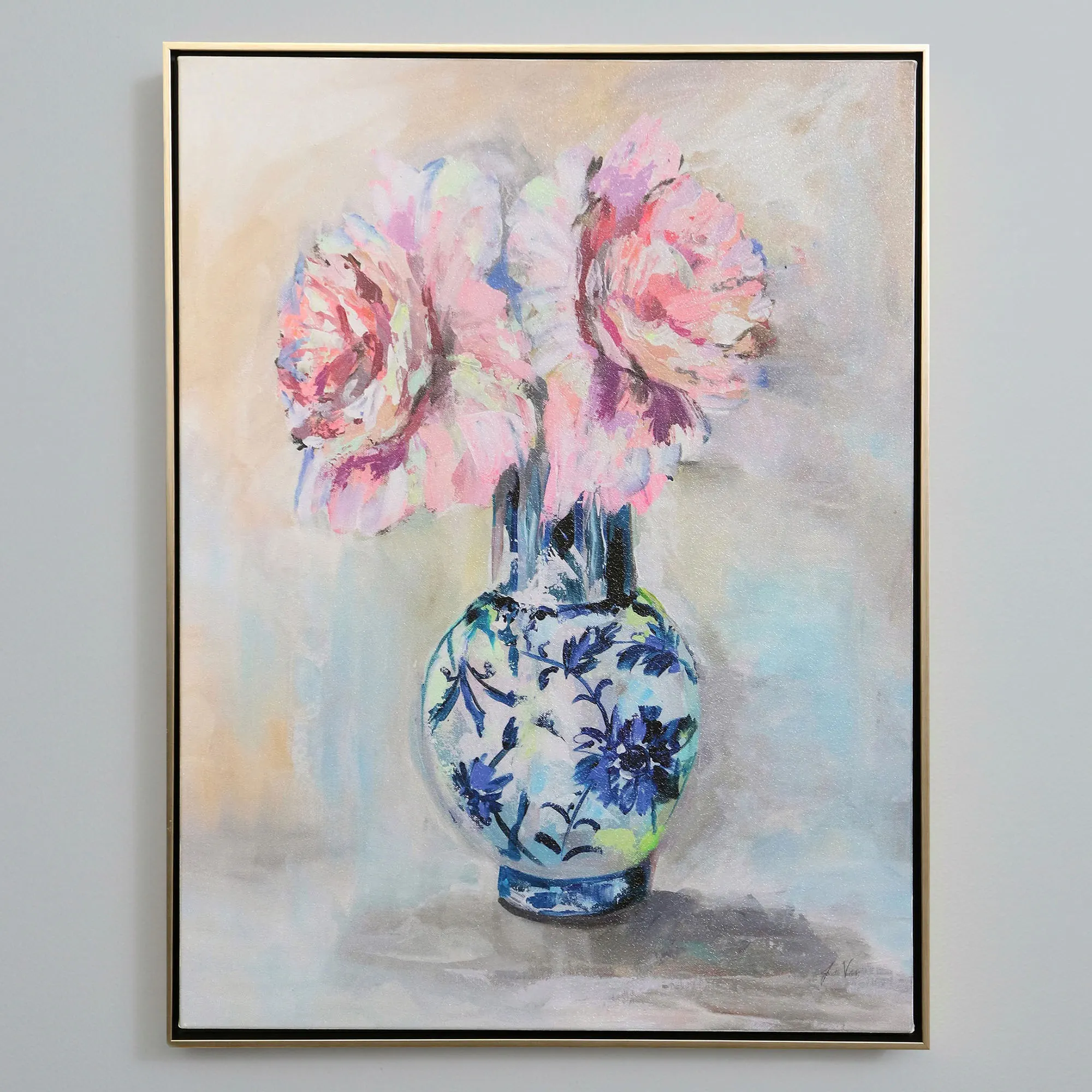 Peony Play Flowers in Ginger Jar Pink Floral Framed Canvas Wall Art