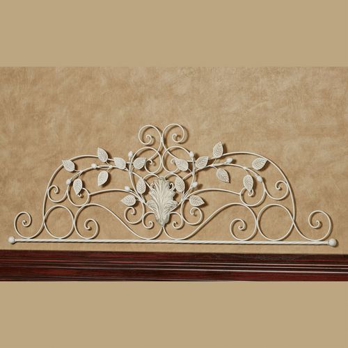 A central fleur, leaves, and scrolls beautifully form the Perry Door Topper. This openwork metal wall topper has an ivory finish with gold highlights. Measures 47"Wx1"Dx15"H.