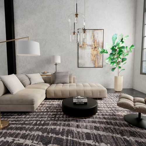 The Phineas Abstract Rug is polypropylene. Imported.