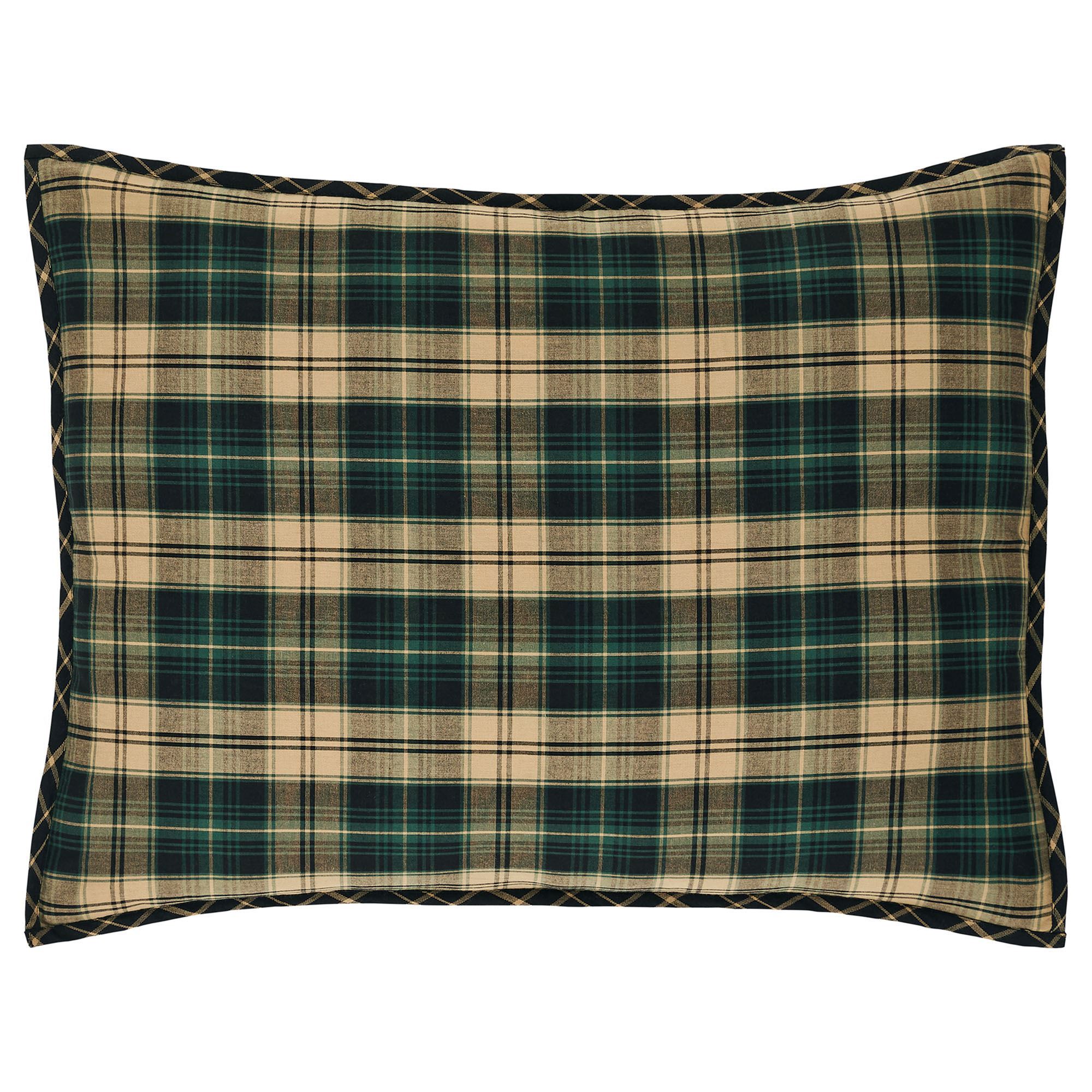 Sham is a green, tan, and black coordinating plaid with bound edges; button closure. Choose Standard/Queen or King.
