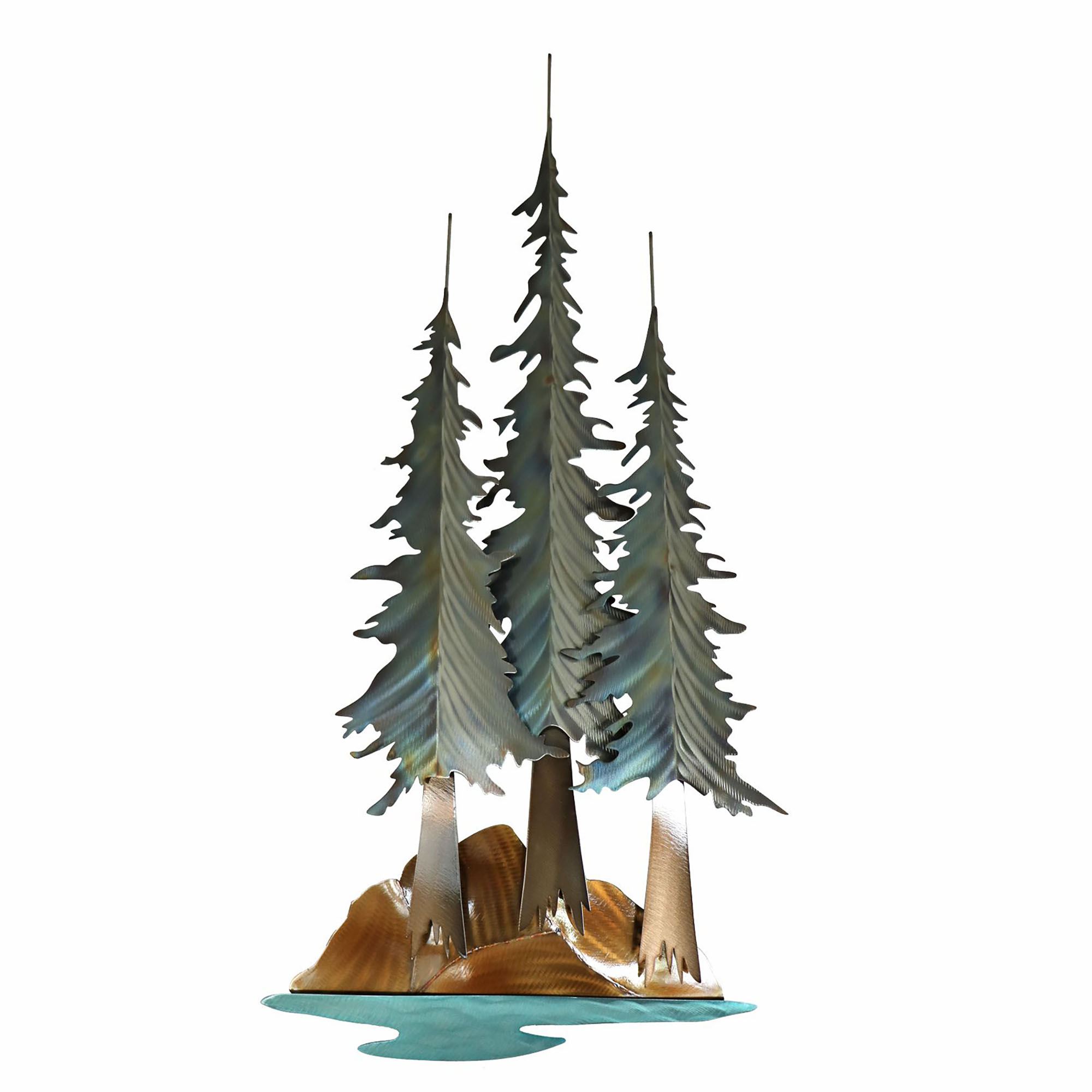 Pine Tree Grove Indoor Outdoor Handcrafted Metal Wall Art Sculpture