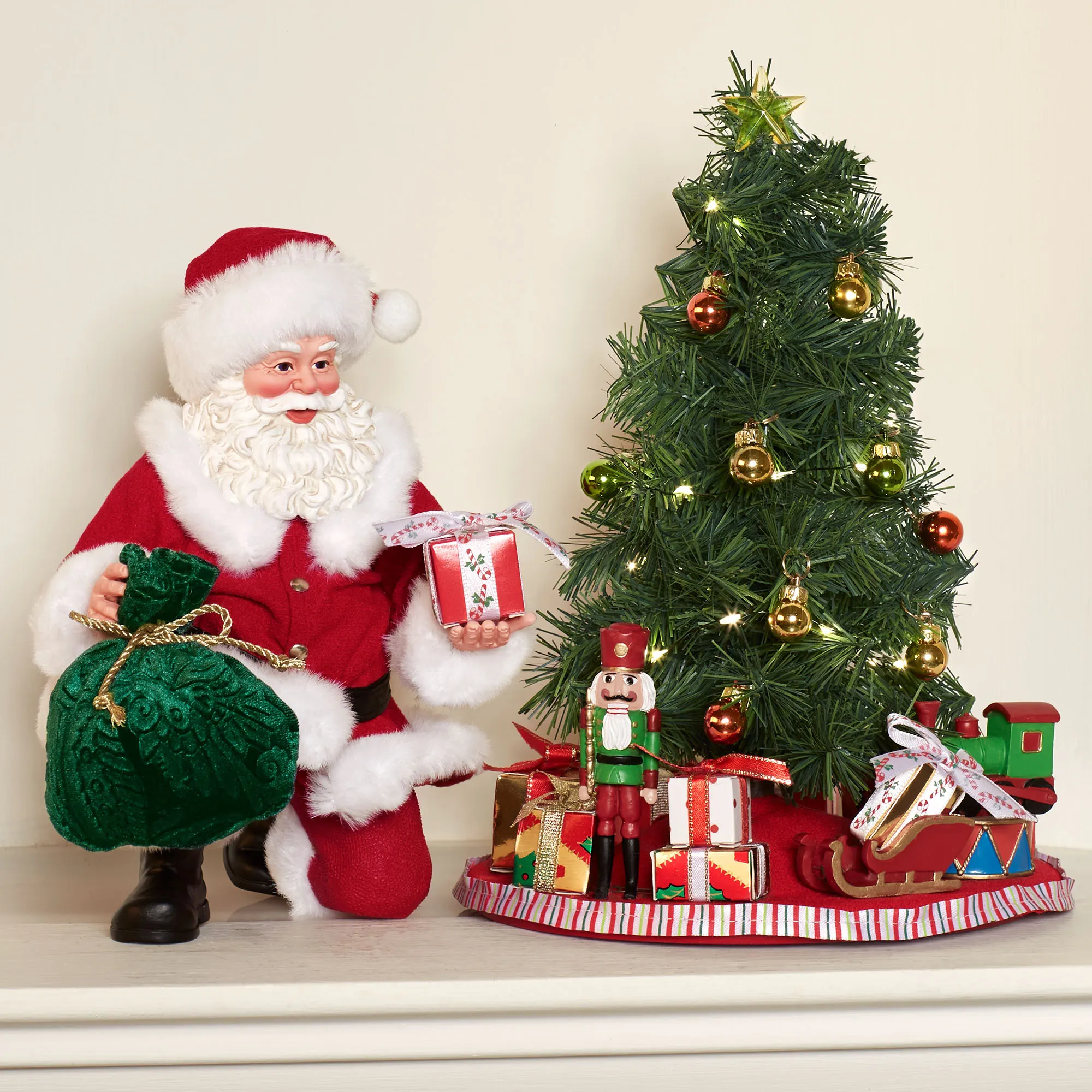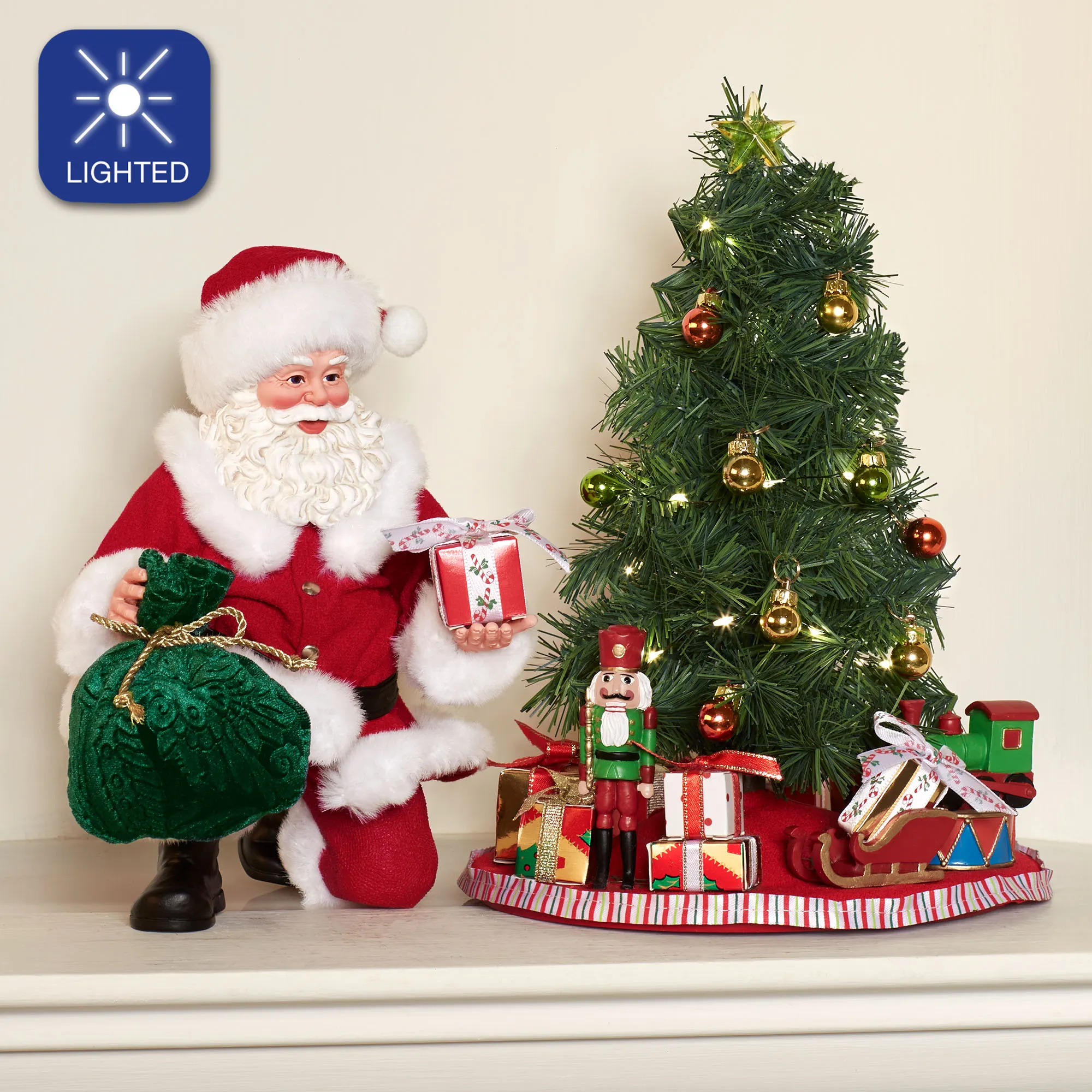 Placed with Care Clothtique Santa and Lighted Tree Figurine Set
