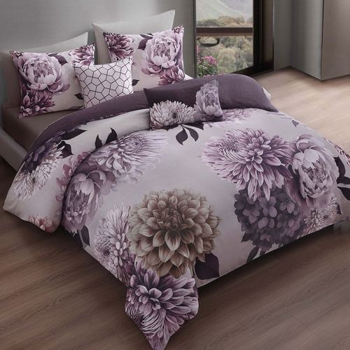 Plum Petal Reversible Lavender Flower Blossom 5 pc Comforter Bed Set