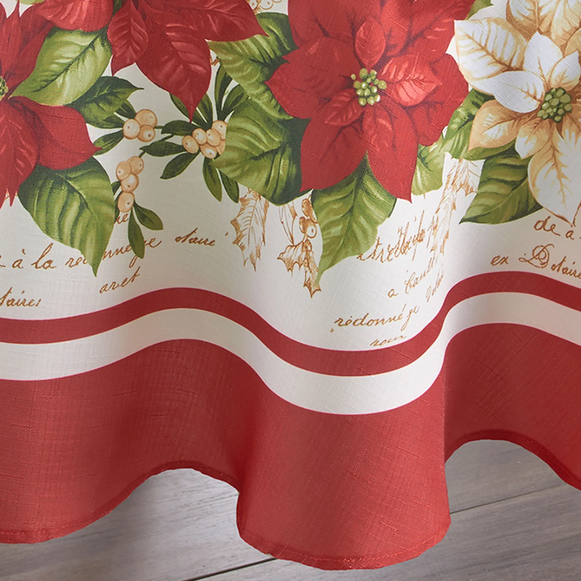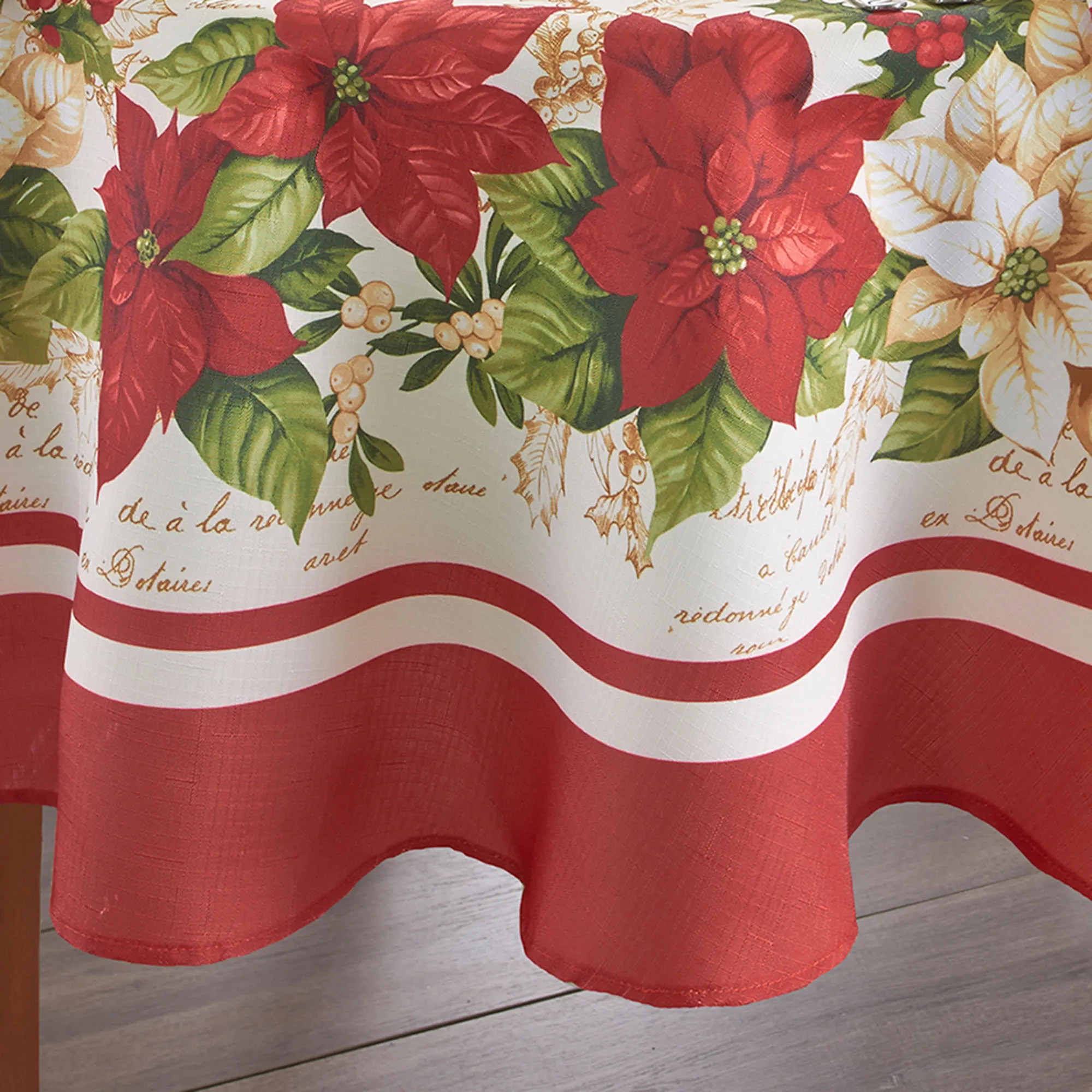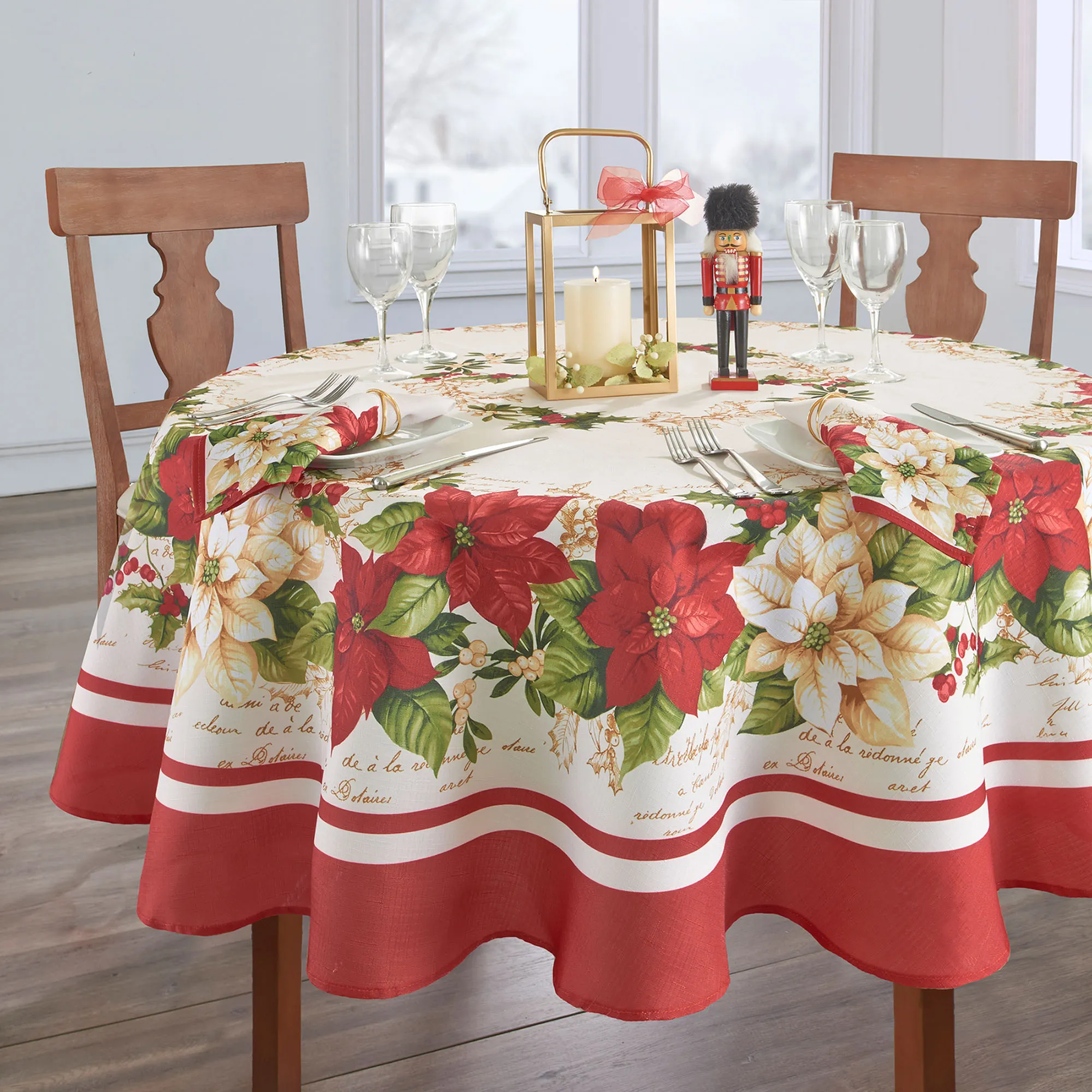Poinsettia Elegance Holiday Round Tablecloth and Table Linens