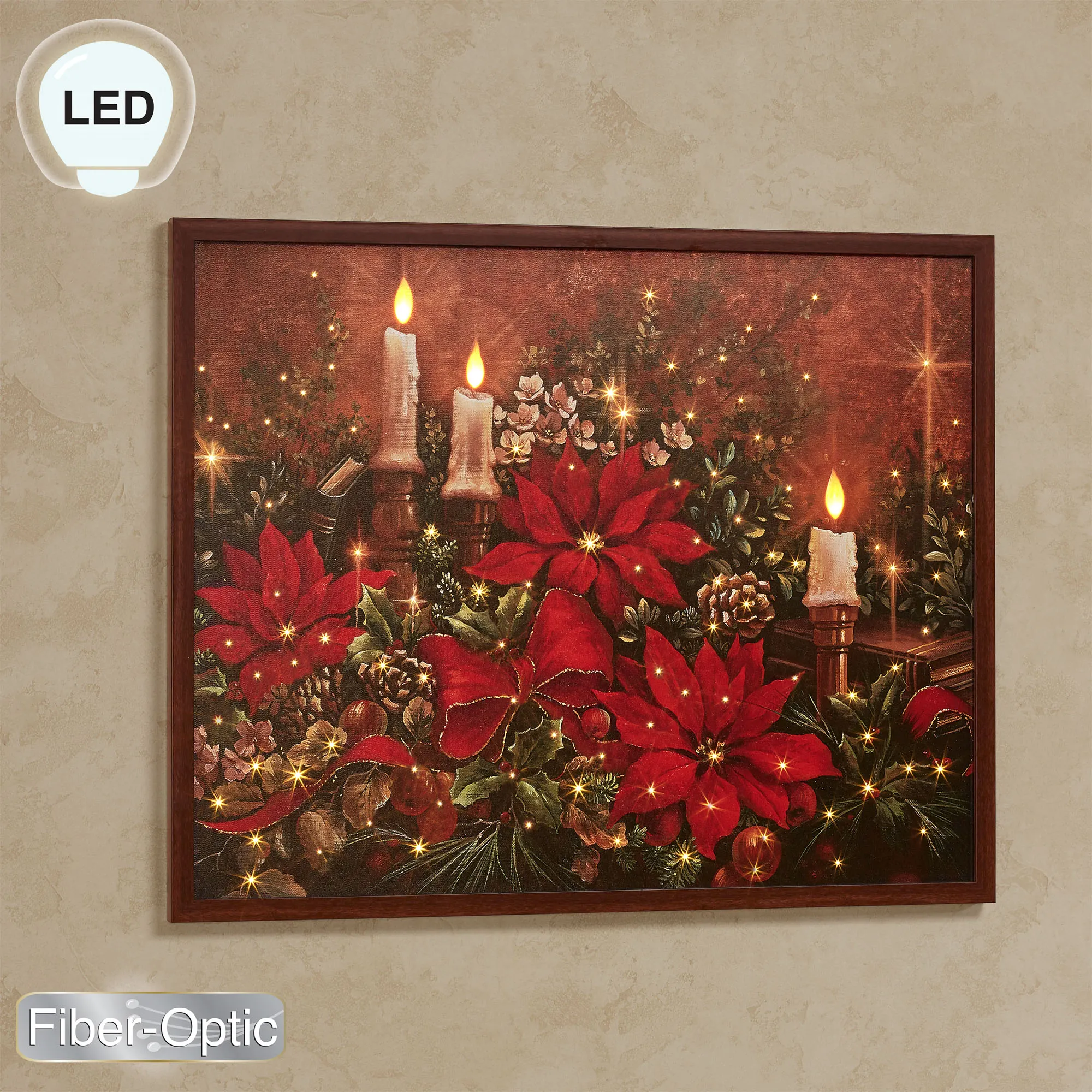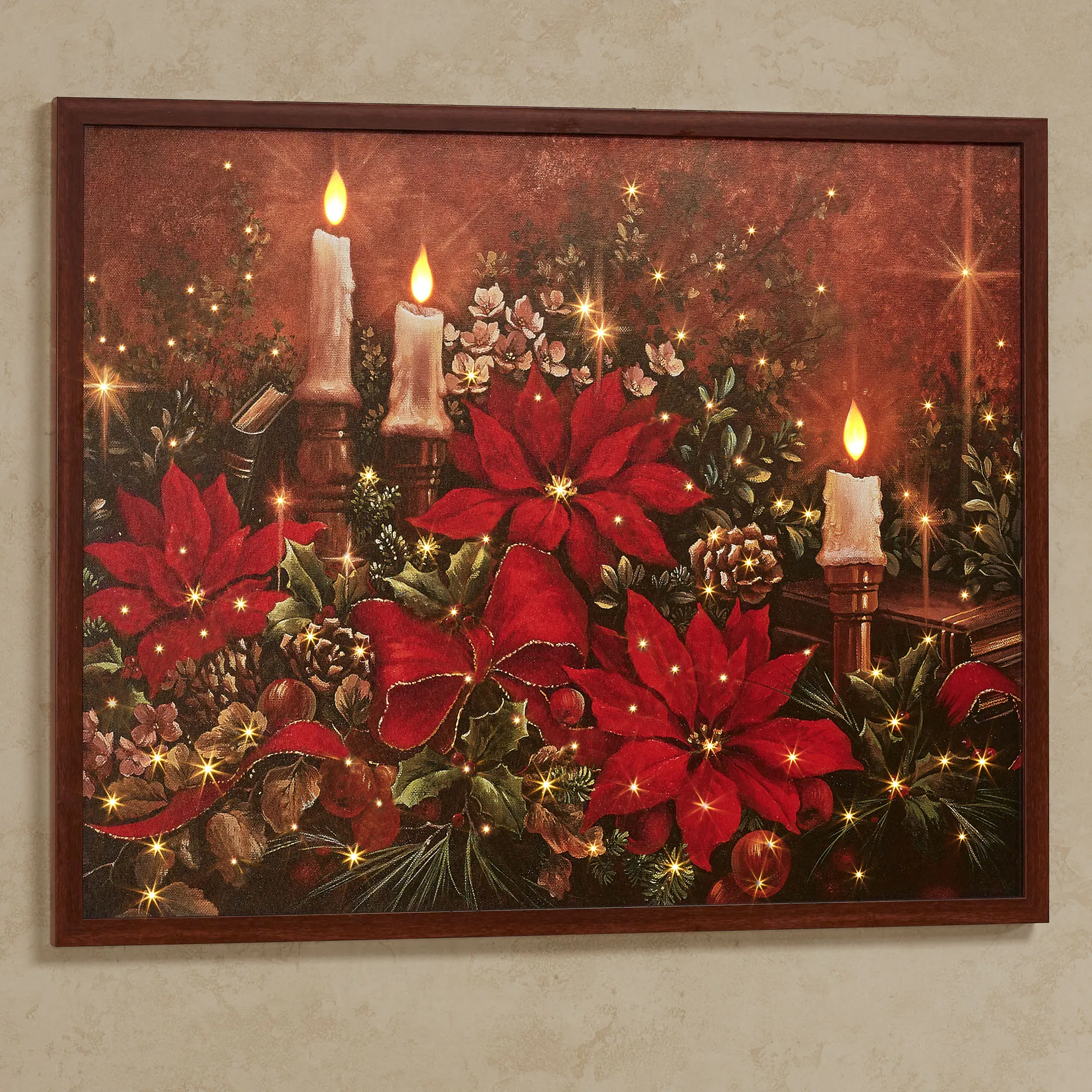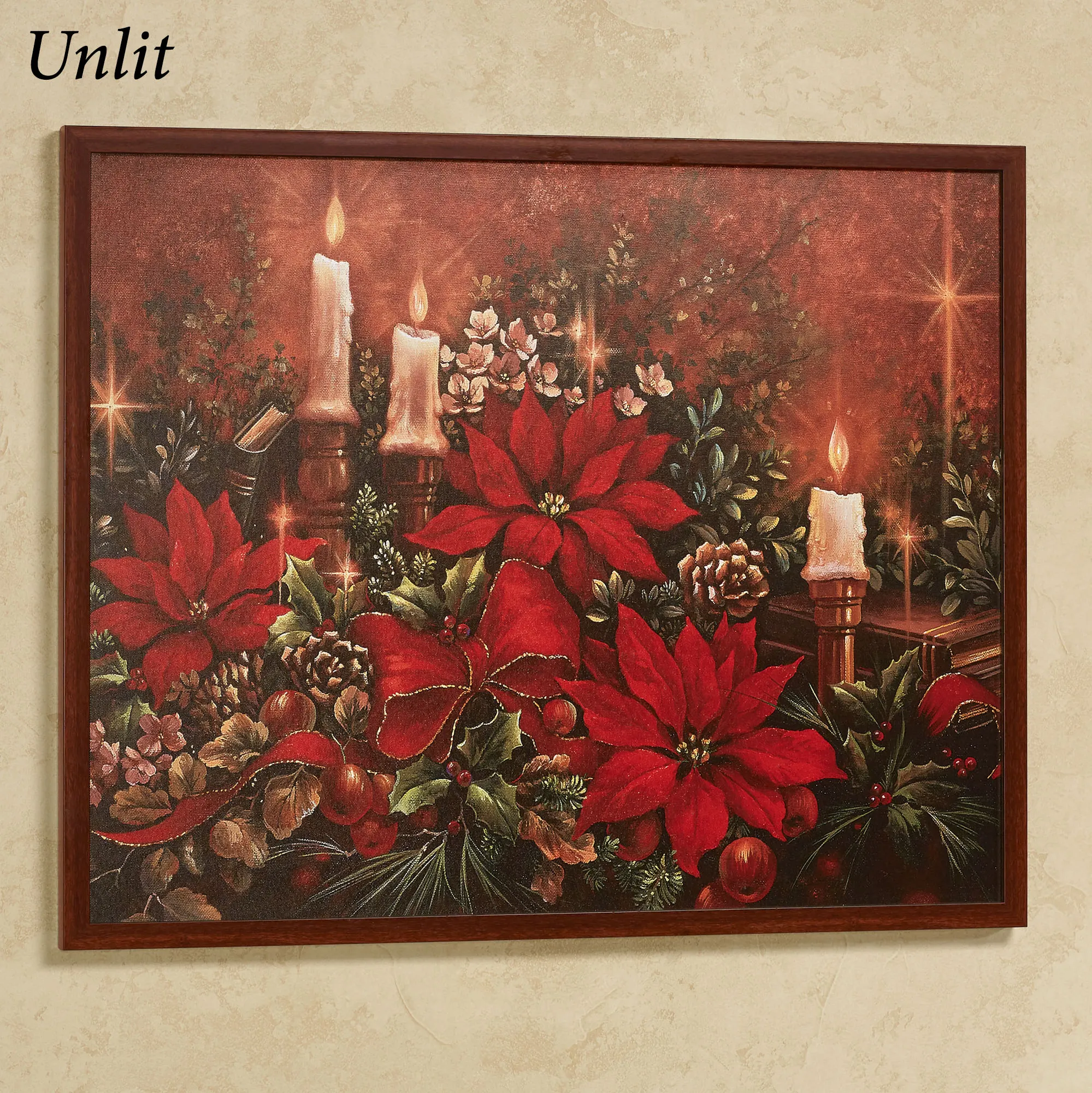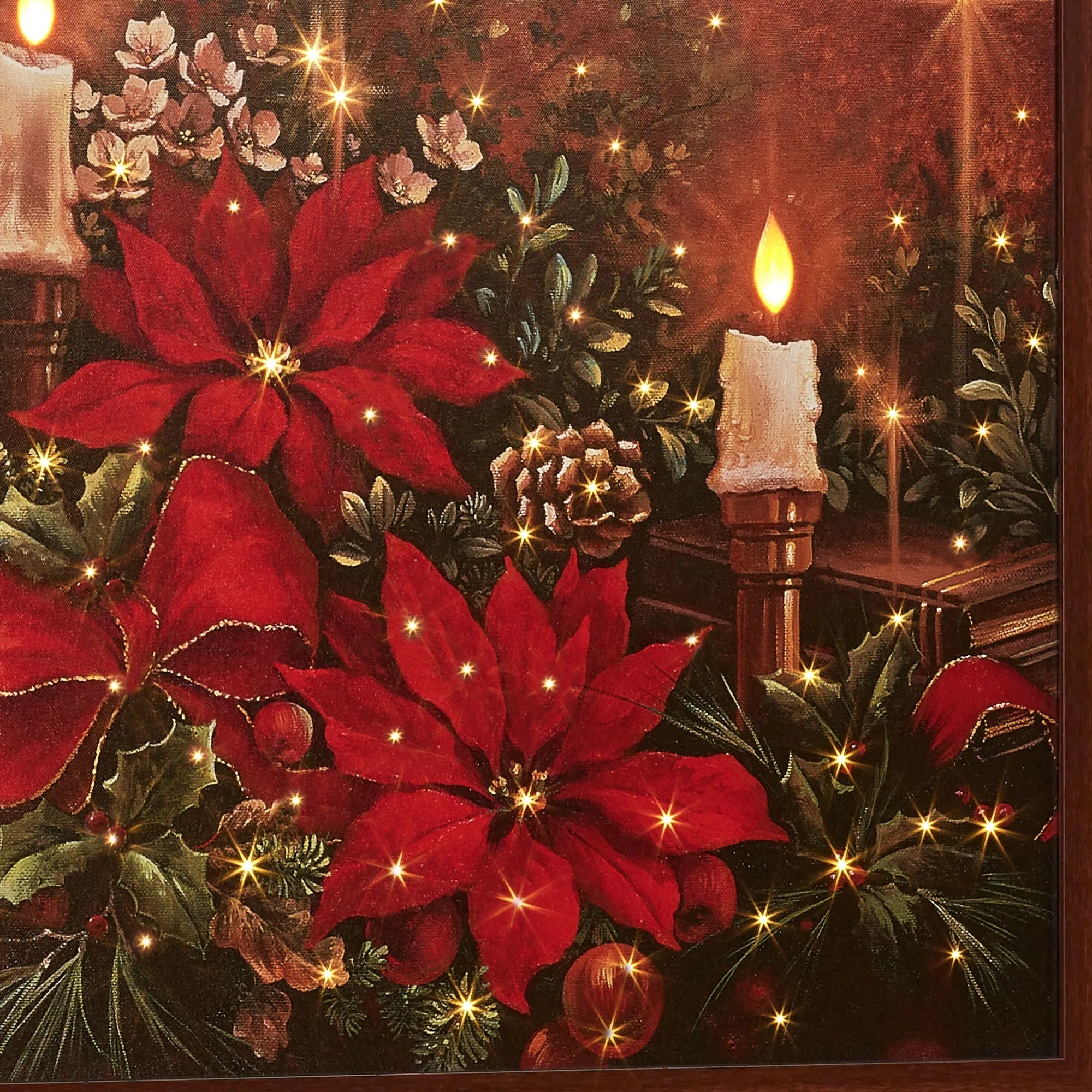 Poinsettia Lighted Framed Holiday Canvas Wall Art