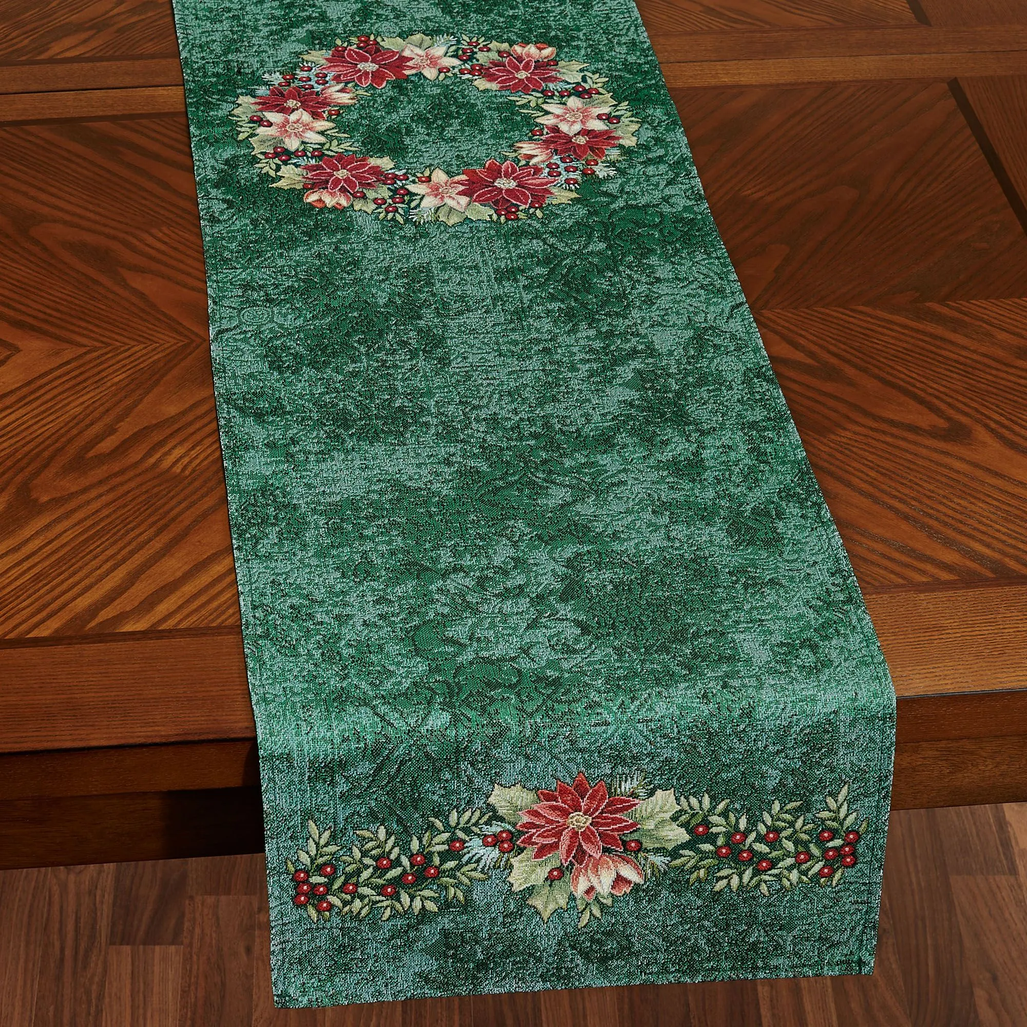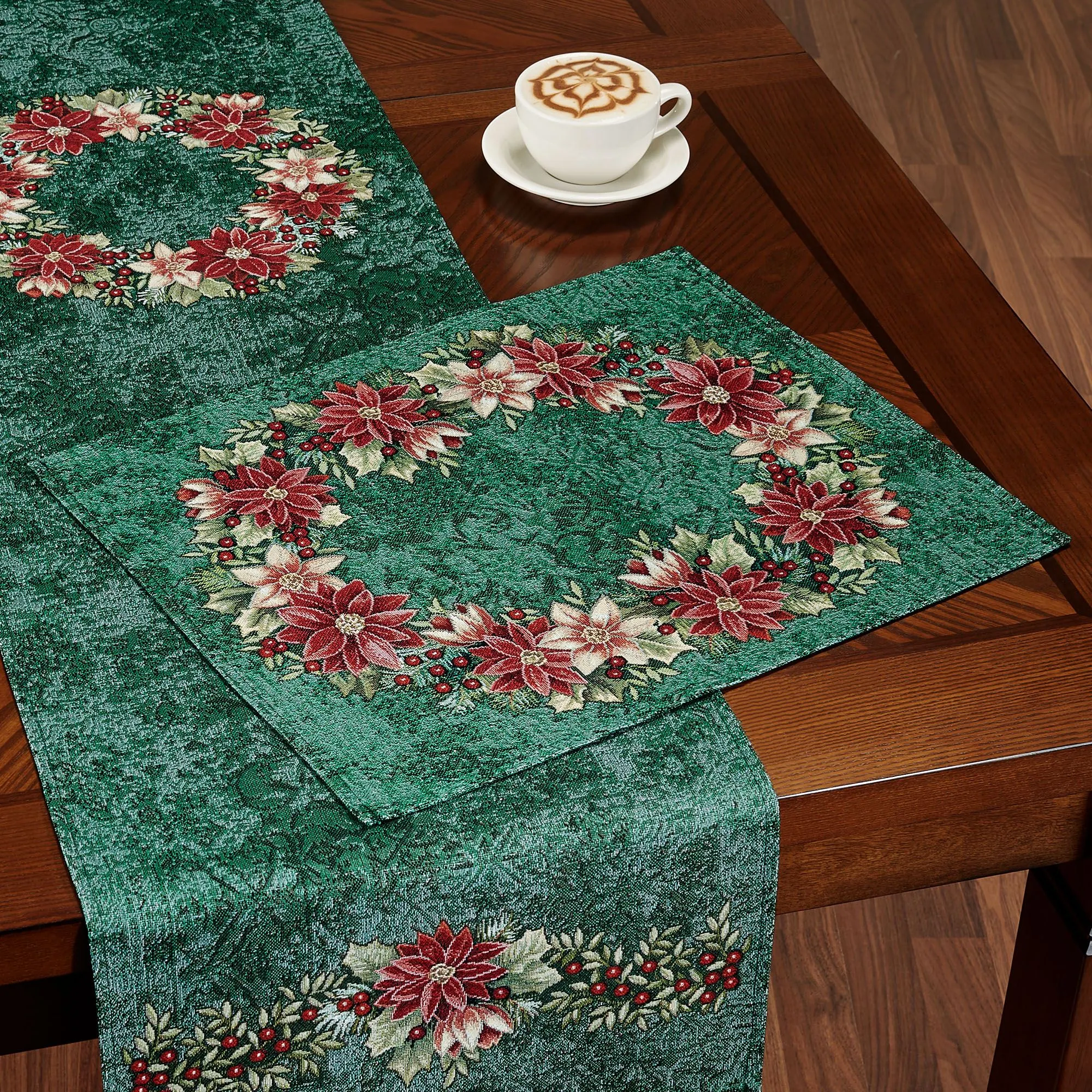 Poinsettia Wreath Red and Green Christmas Table Linens