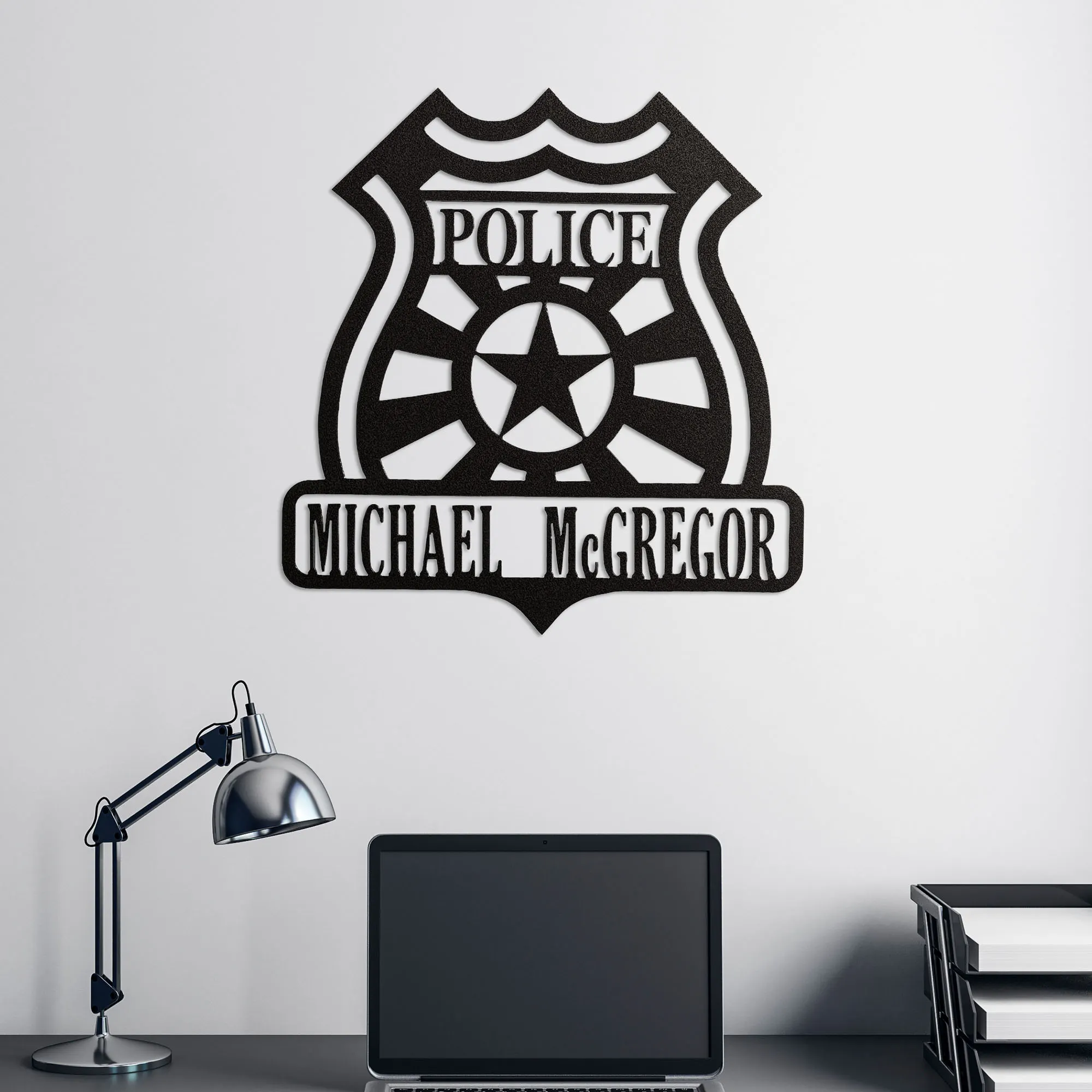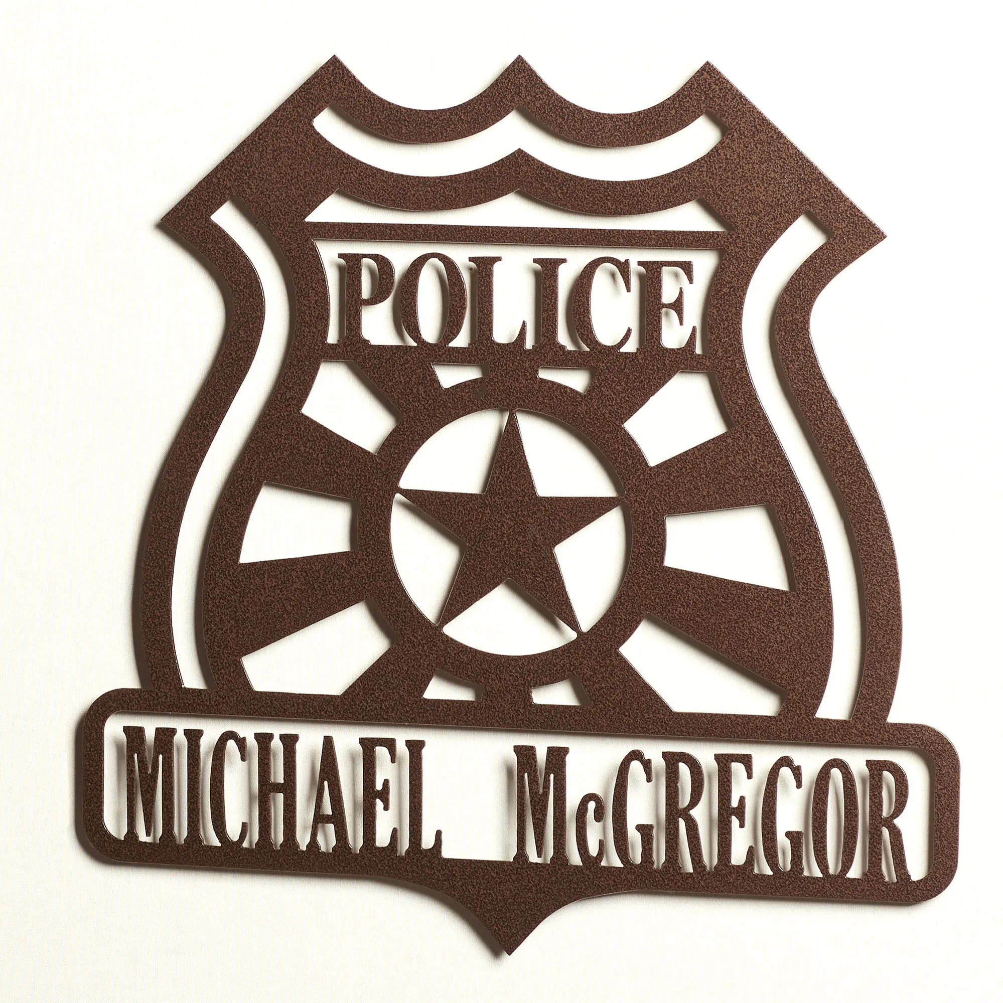 Police Officer Badge Law Enforcement Professional Personalized Metal Wall Art Sign by JasonW Studios