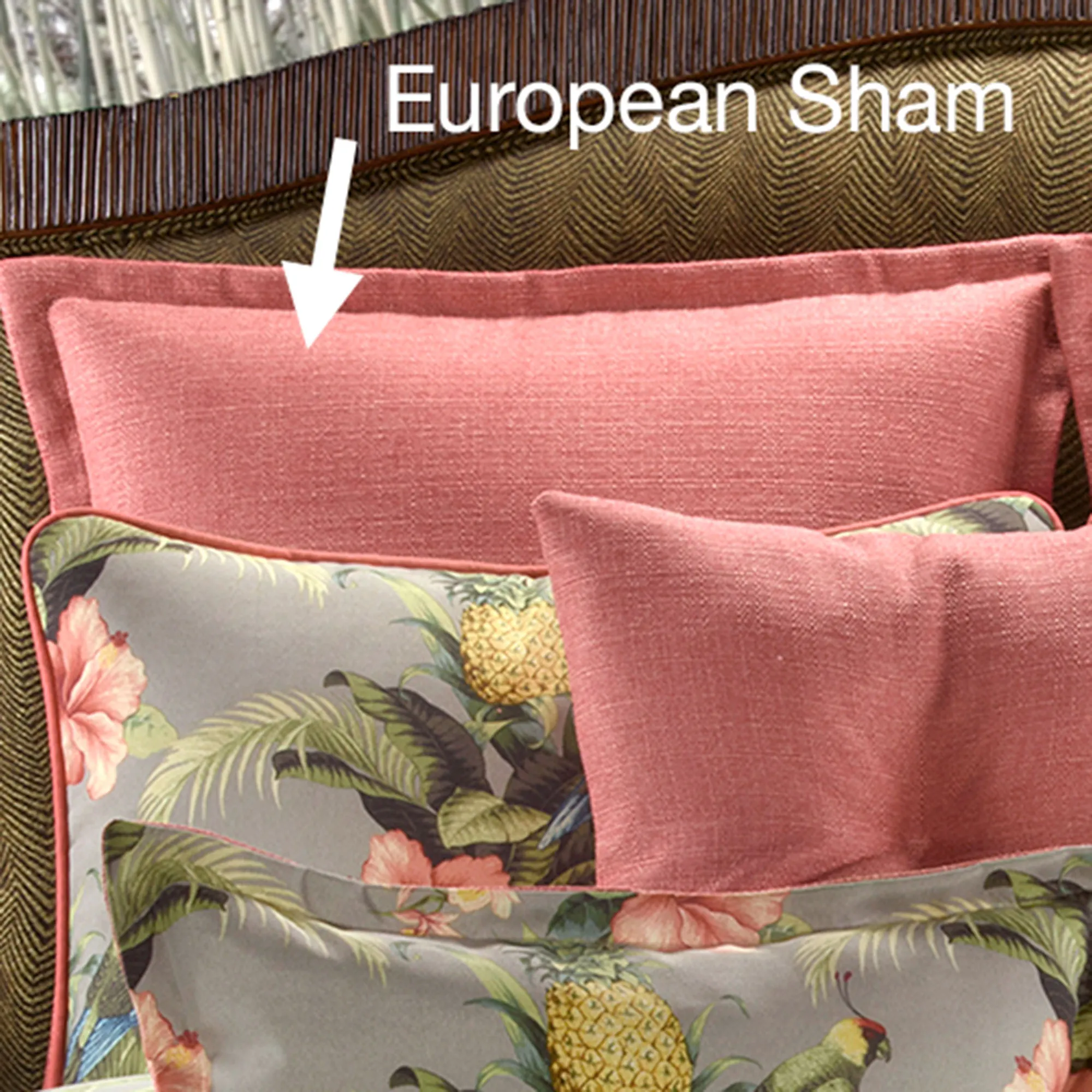 European Sham is woven solid dark coral with flanged edges; French back closure.