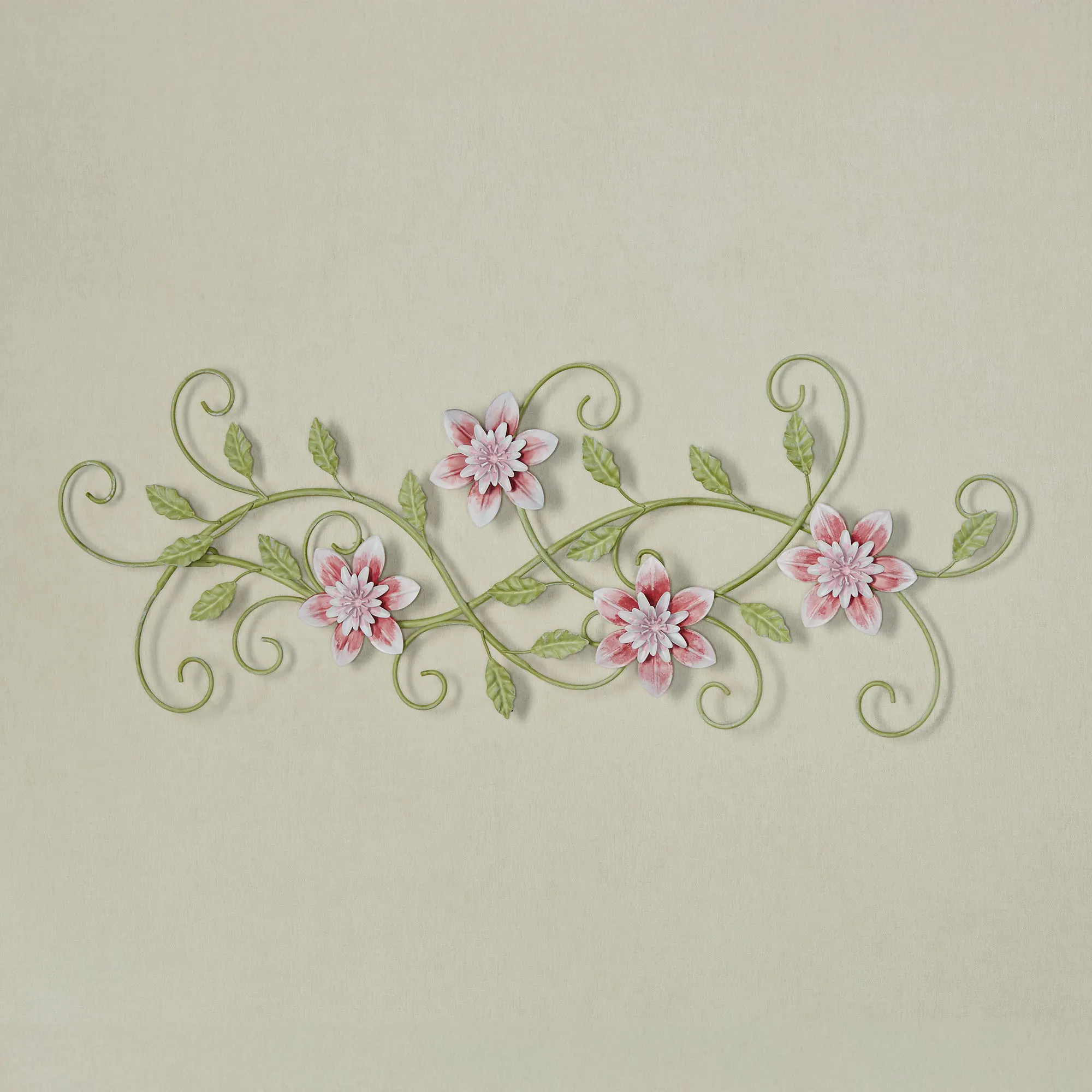 Posy Floral Vine Pink and Green Handpainted Metal Wall Art