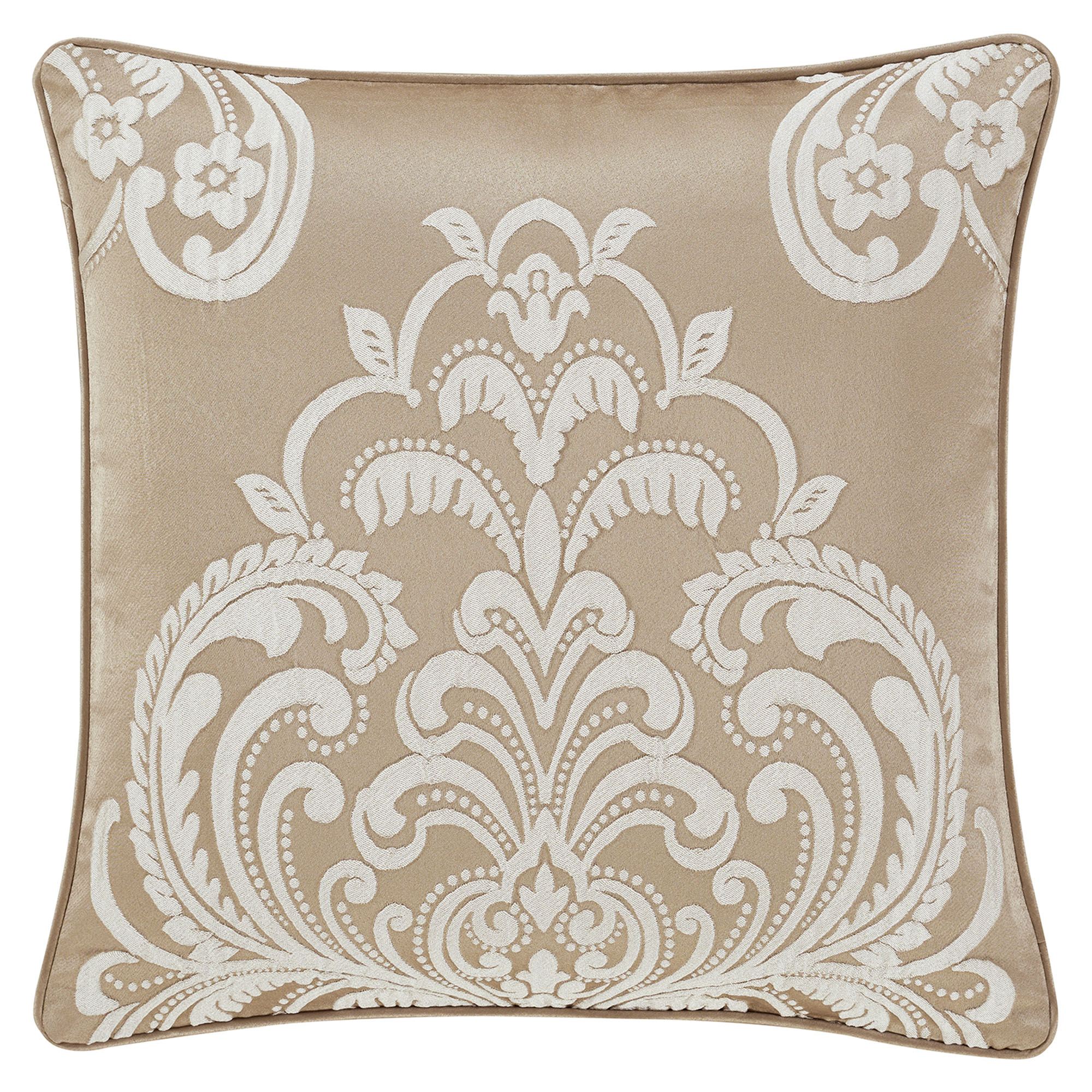 Piped European Sham has coordinating embroidered damask in each corner; zipper closure.