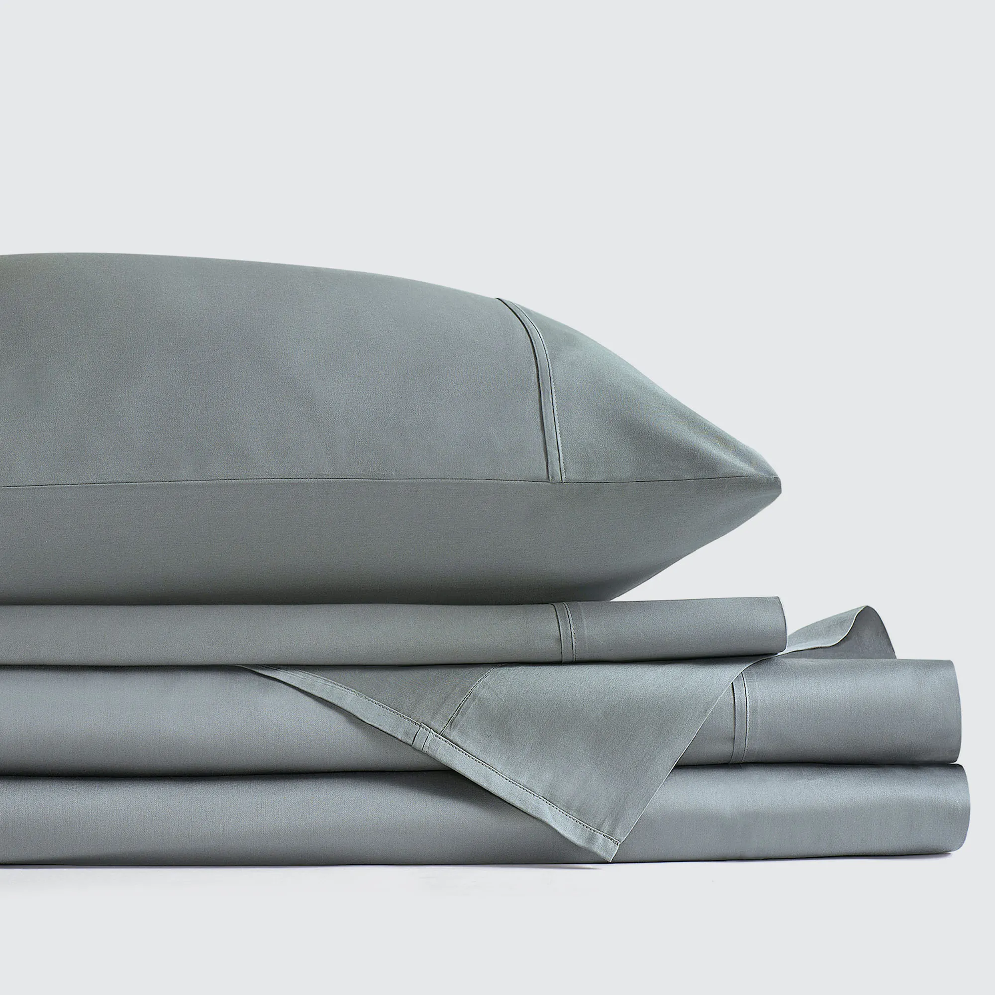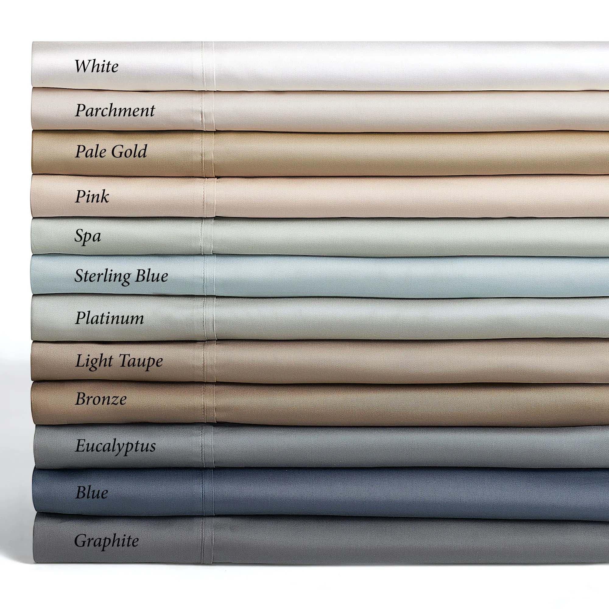 The luxurious Premier Sateen Sheet Set feels incredibly smooth. The durable, solid color, cotton sateen sheets, from J. Queen New York, are OEKO-TEX(R) certified and have a natural sheen for a touch of elegance. The flat sheet and pillowcases have a 5" pleated hem. The fitted sheet has elastic all around and 17" deep pockets that will fit up to a 19" deep mattress. The breathable, moisture-wicking sheets are soft and silky and ensure a cool and comfortable sleep. The sheet set includes a flat sheet, a fitted sheet, and two pillowcases. Specify Atlantic Blue, Bronze, Eucalyptus, Graphite, Light Taupe, Pale Gold, Parchment, Platinum, Shell Pink, Spa, Sterling Blue, or Crisp White. Machine washable. Imported.