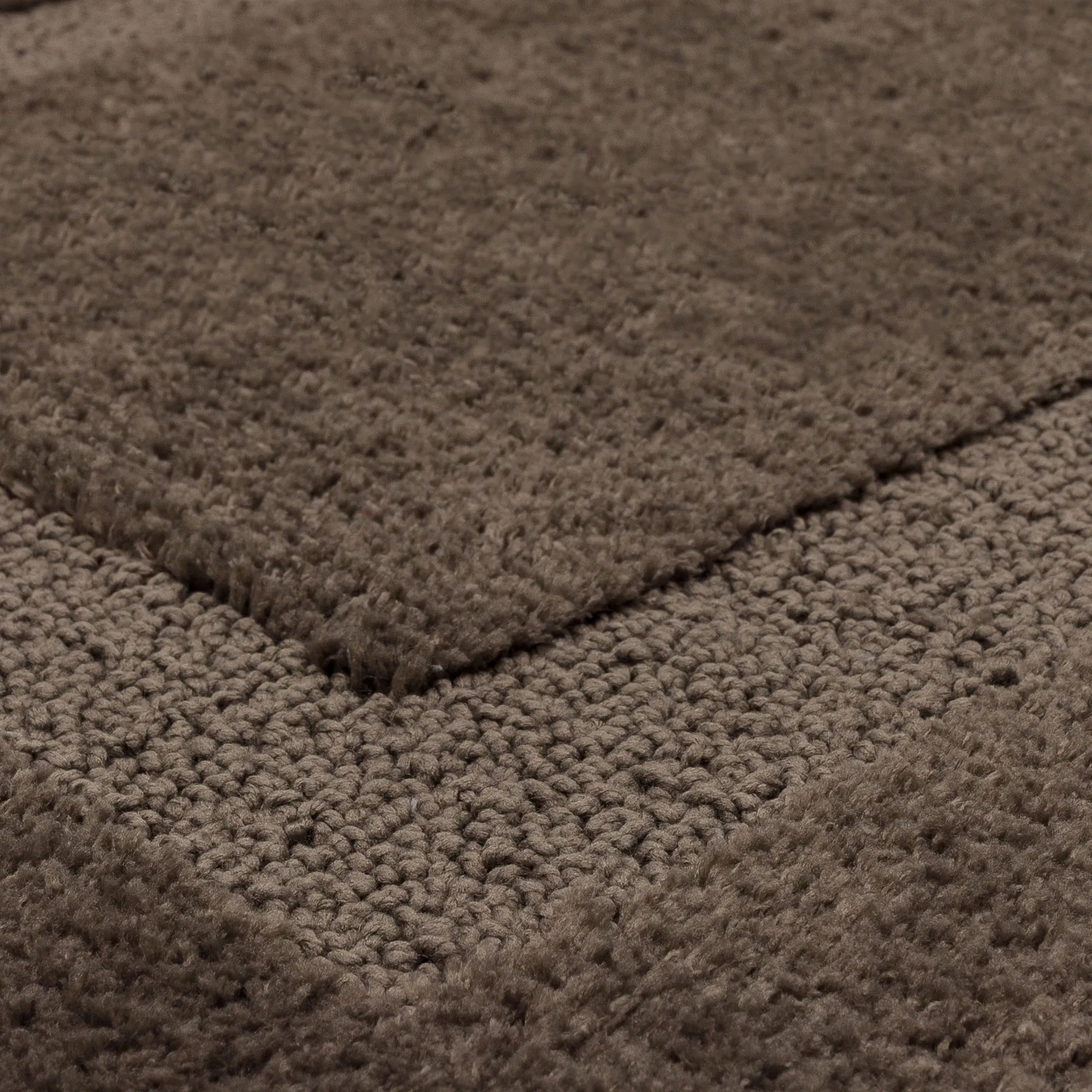 Refresh any space with the exquisite look of the Prestige Walnut Bath Rug. This sumptuously soft, polyester micro denier rug, .63" thick, has a knitted construction, a high-low pile, and bound ends. The bath rug is a solid color with a frame design. Durable rug is perfect in everyday areas and offers advanced soil, stain, fade, and skid protection. Back is nonskid latex. One-year manufacturing defects warranty. Machine washable. Imported.