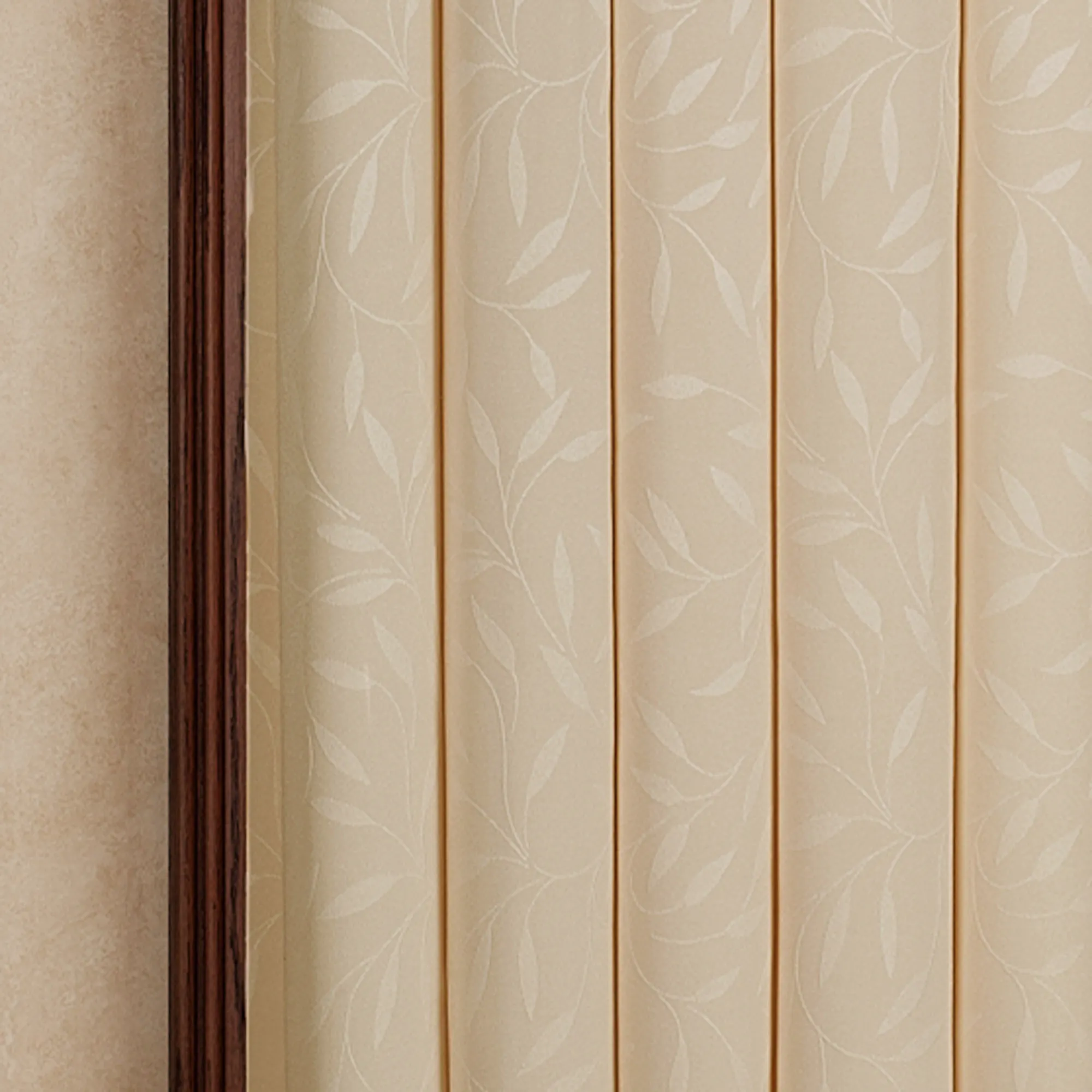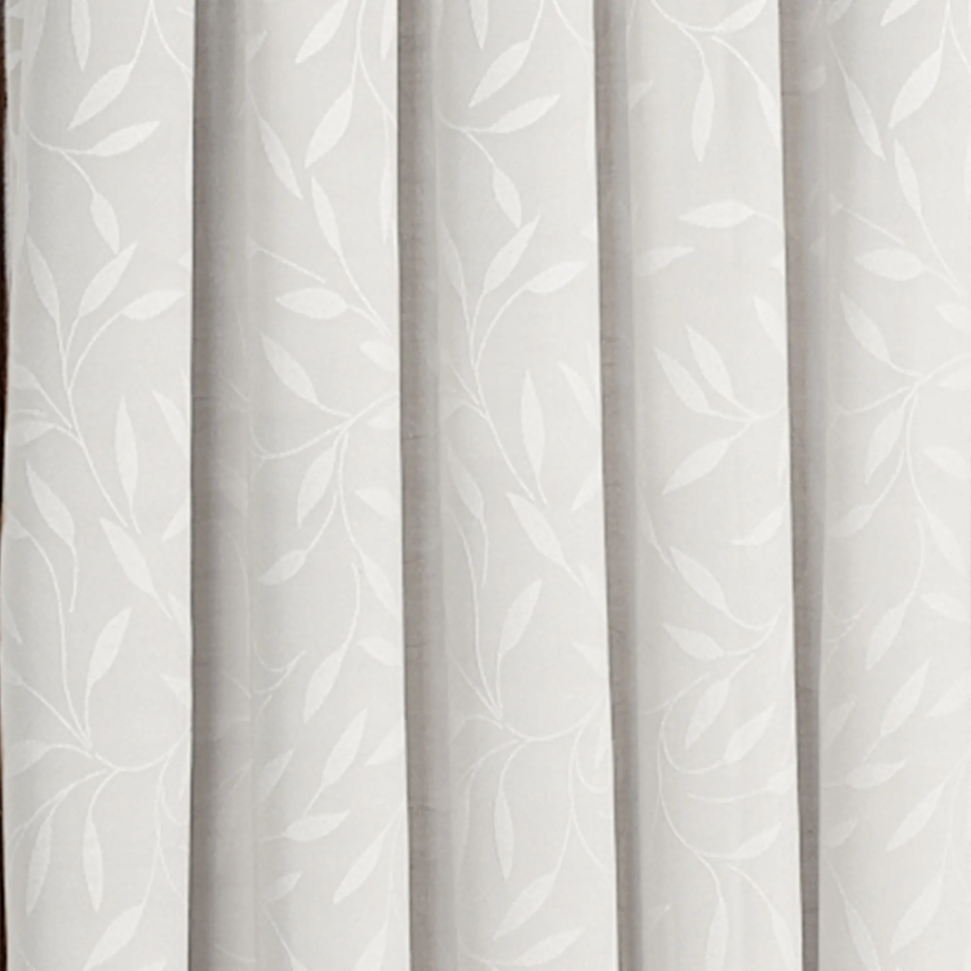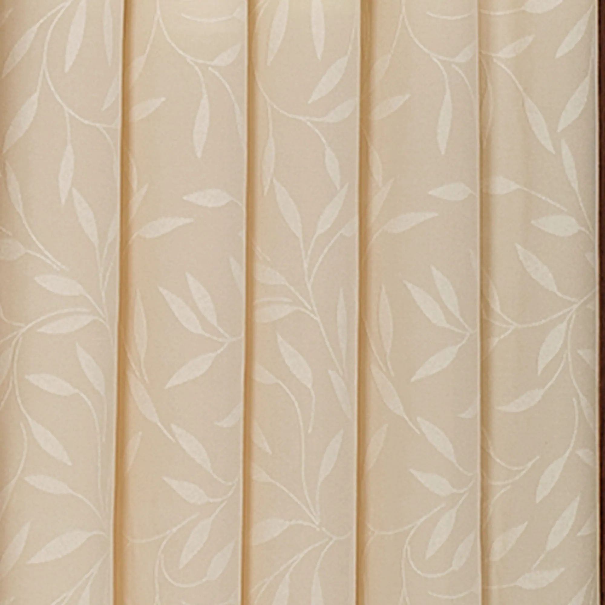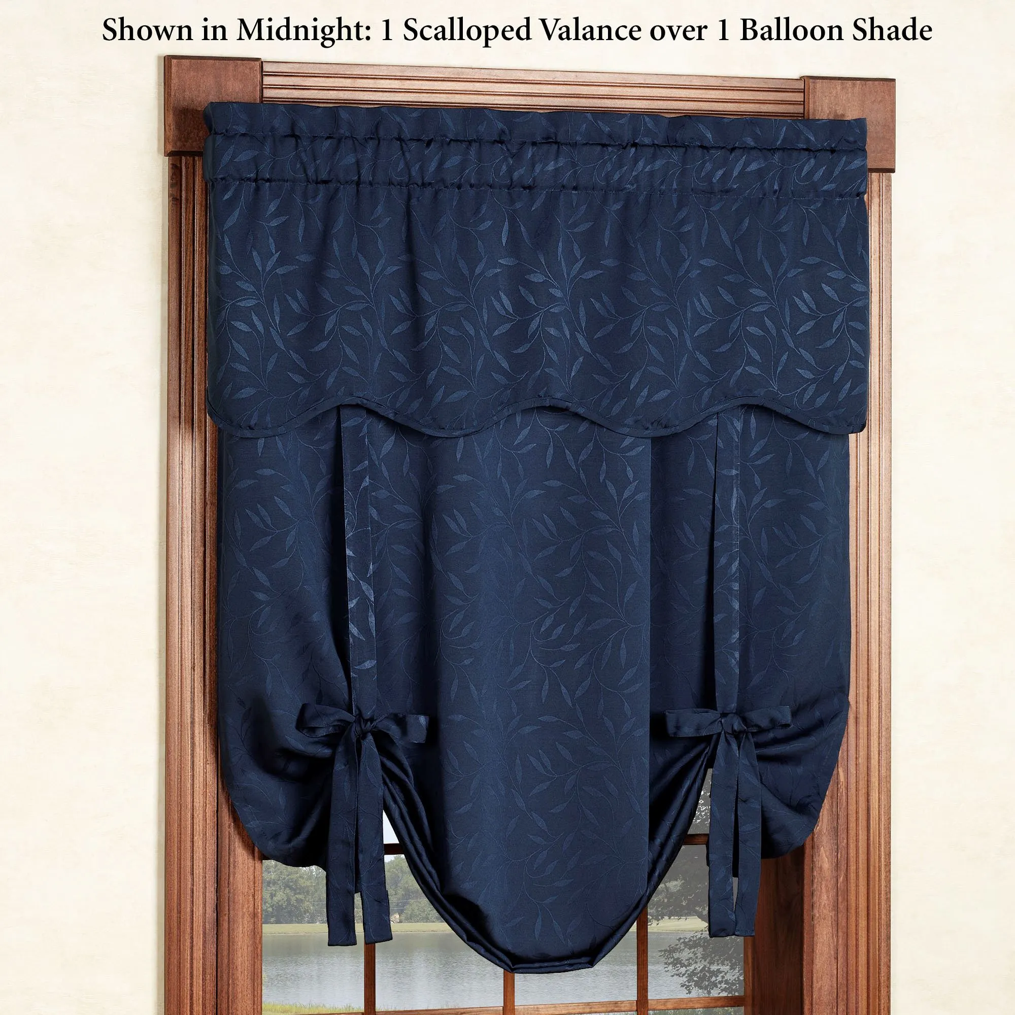 The Princeton Window Treatment is made of heavyweight tone-on-tone, jacquard-woven 100% polyester in an allover leaf motif using dull and shiny yarns. Tailored Curtain Panel has a 3" rod pocket. Scalloped Valance has scalloped bottom edges and a 3" rod pocket. Tie-Up Shade has a 1.5" rod pocket. Washable. Imported.