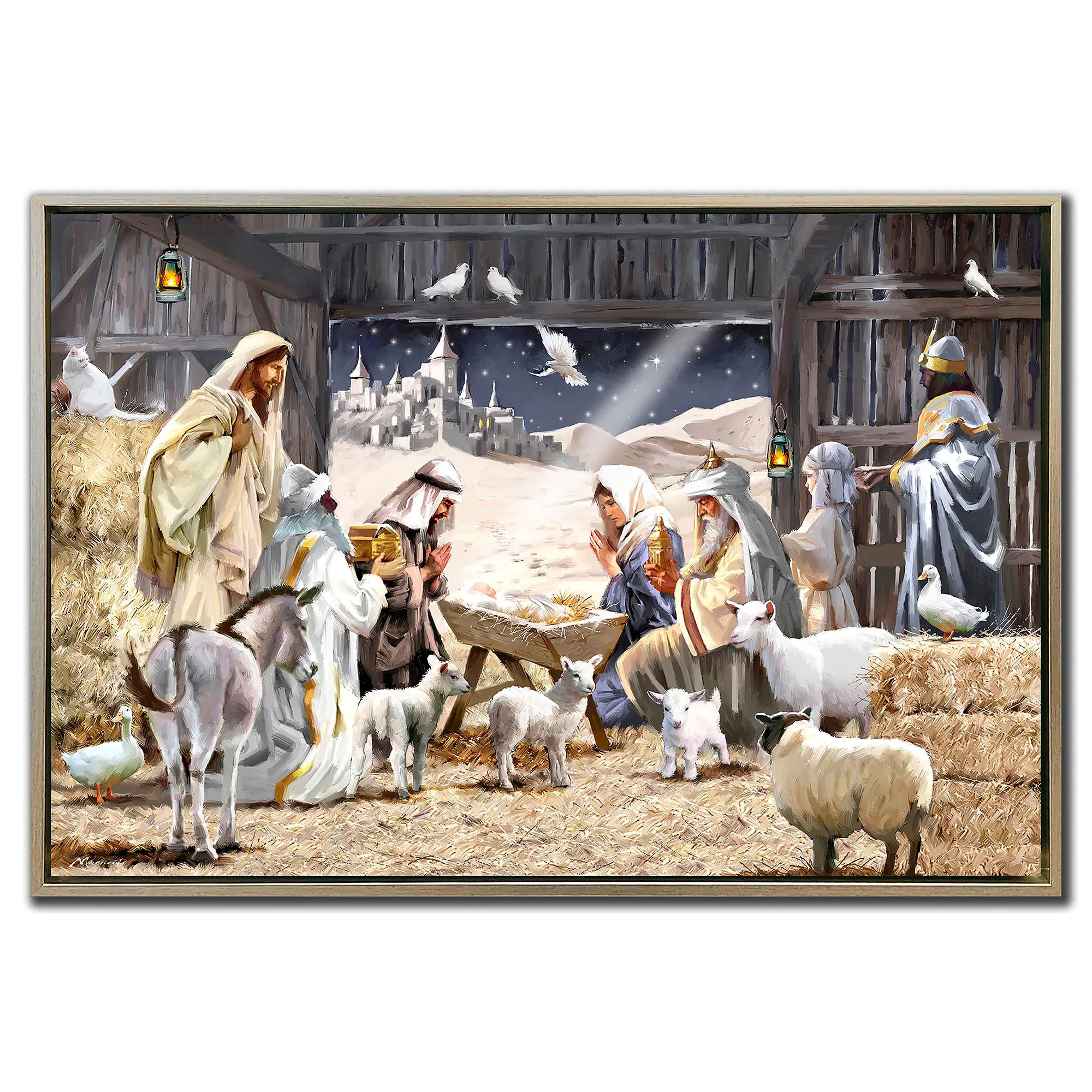 The Macneil Studio Pristine Nativity Religious Christmas Framed Canvas Wall Art